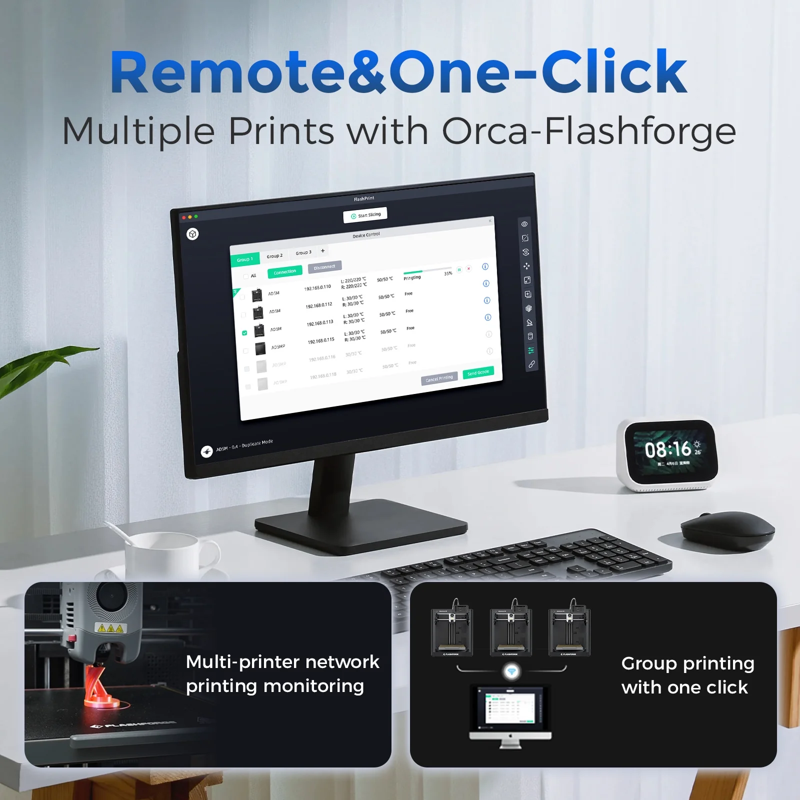 Full-Auto One-click Leveling. Flashforge Adventurer 5M features an advanced auto-leveling system that measures the nozzle height relative to the build plate, automatically compensating for any discrepancies without effort.