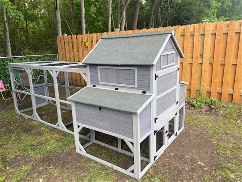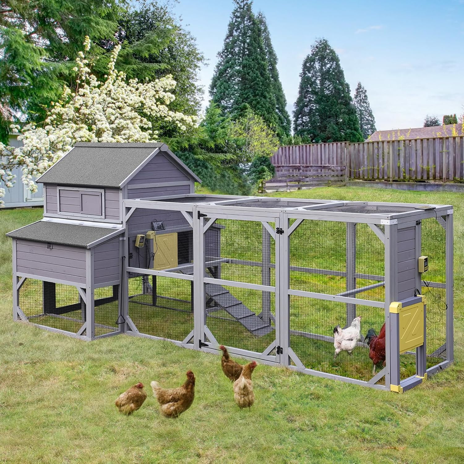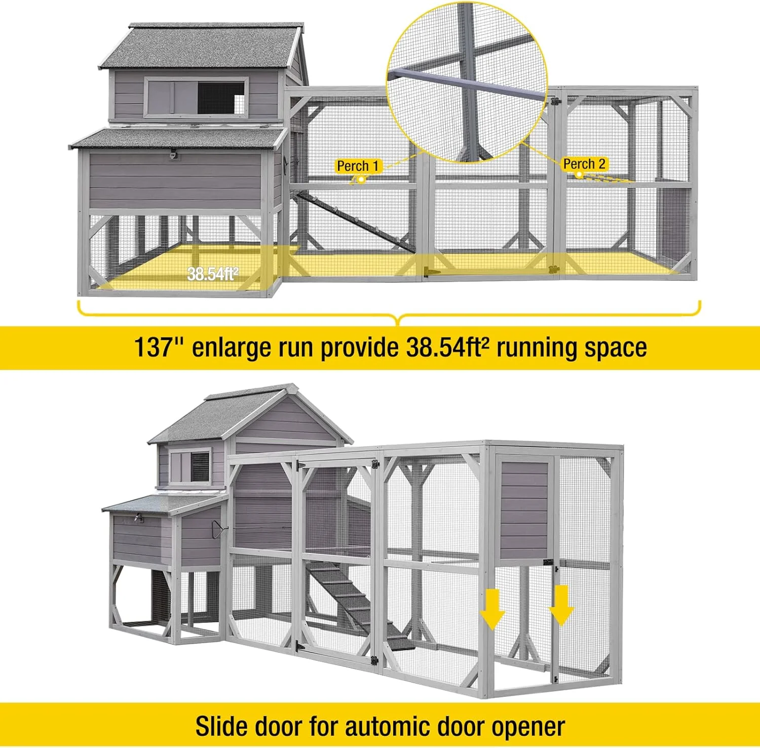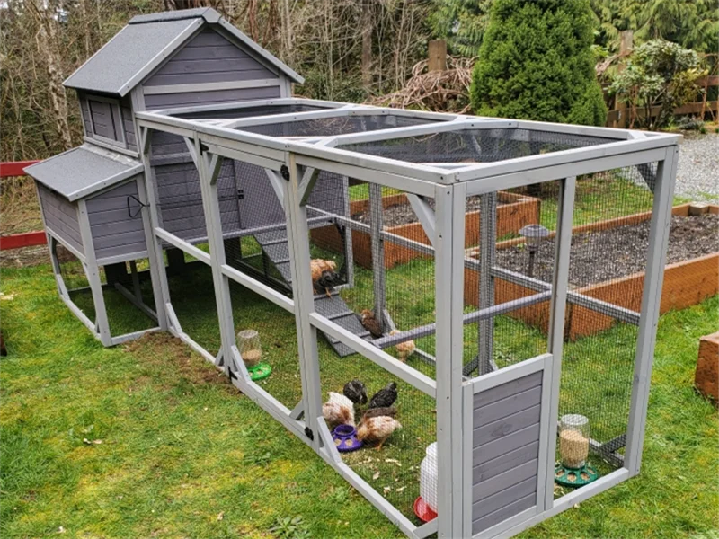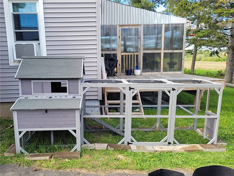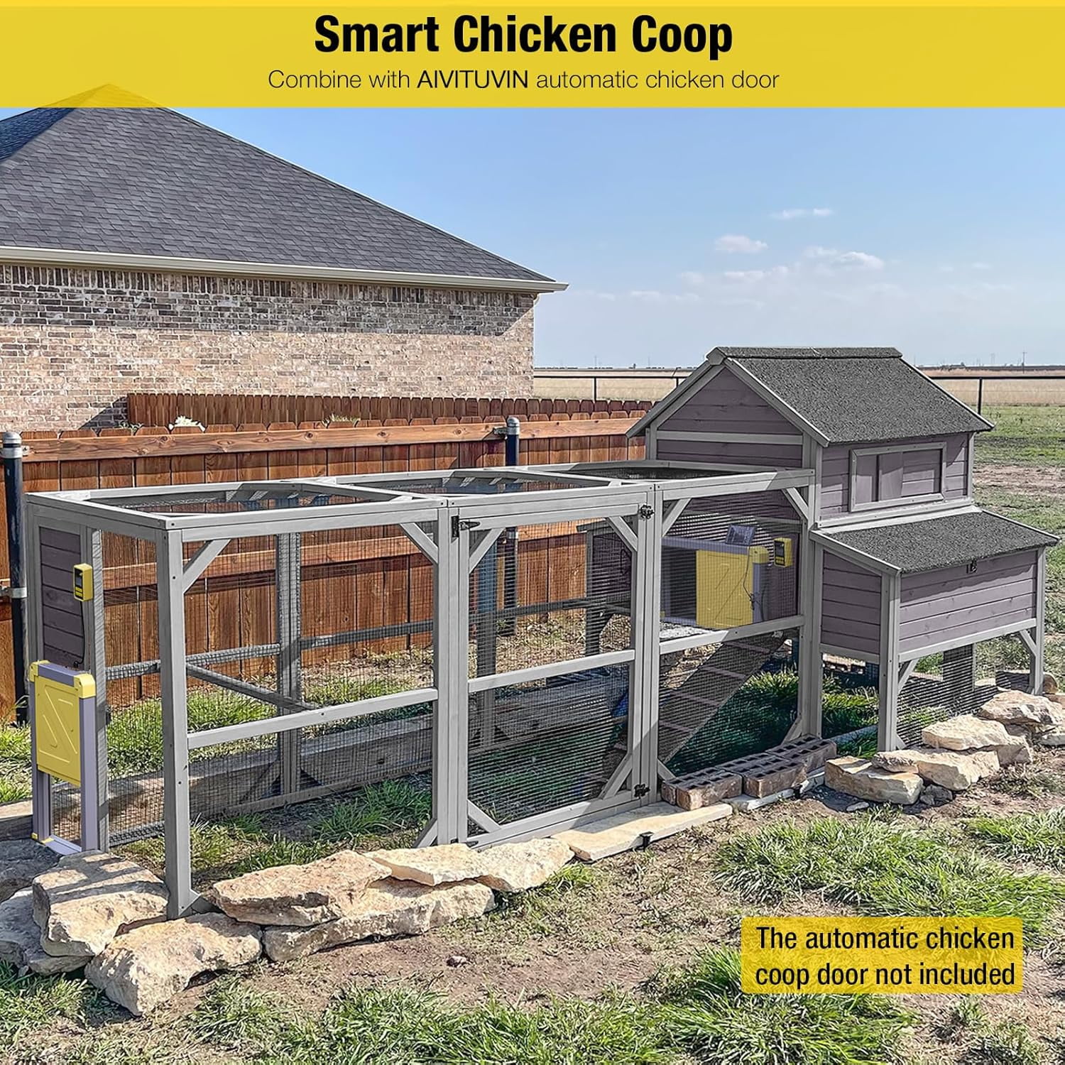 - Upgraded New Version: Waterproof PVC curtain above nesting boxes to avoid leakage .The run with a chicken access door supports the automatic door opener.Special custom locks prevent predators from opening egg nests