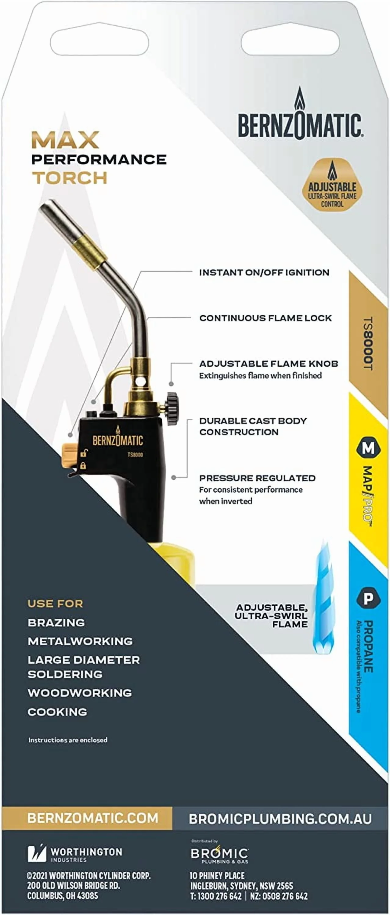 - CONVENIENT: The Bernzomatic? Max Performance Torch is built with instant on/off ignition, an adjustable ultra-swirl flame and flame lock option for continuous use.
