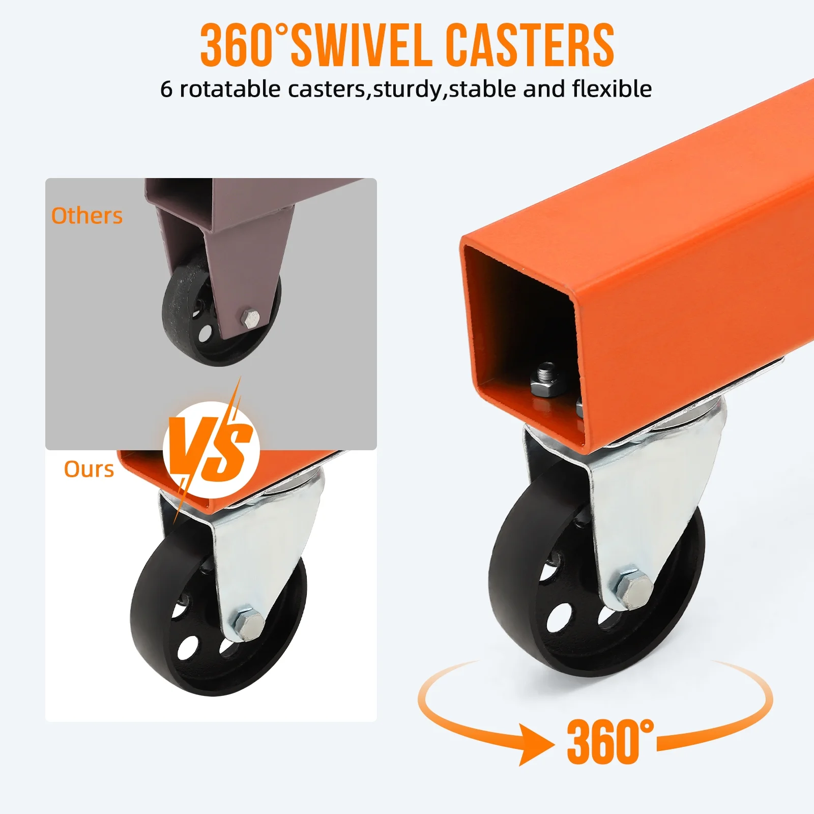 Folds for compact storage. Six 360�� swivel wheels for easy movement in tight spaces.