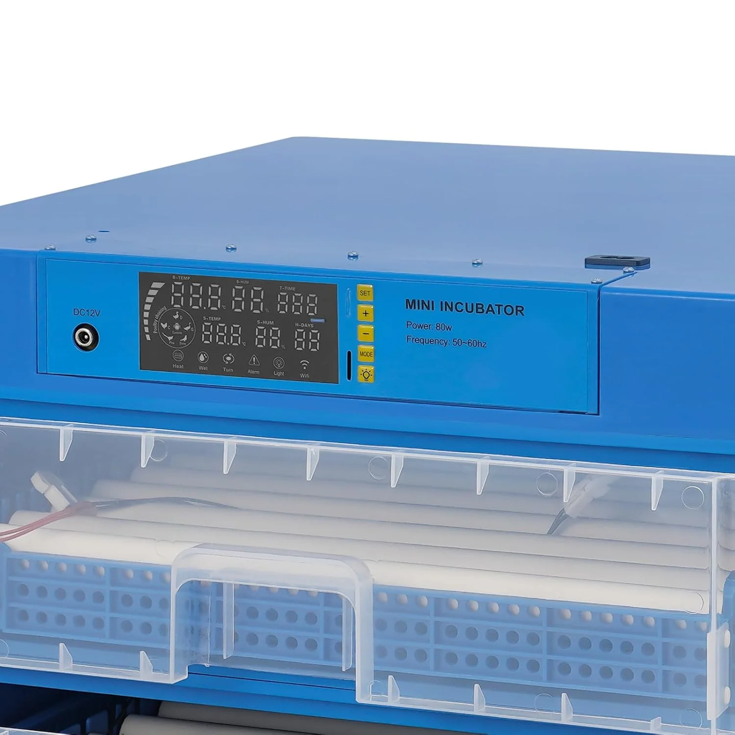LED Display: It displays information such as humidity, temperature, days of incubation, etc. to help you check the incubation status at any time.