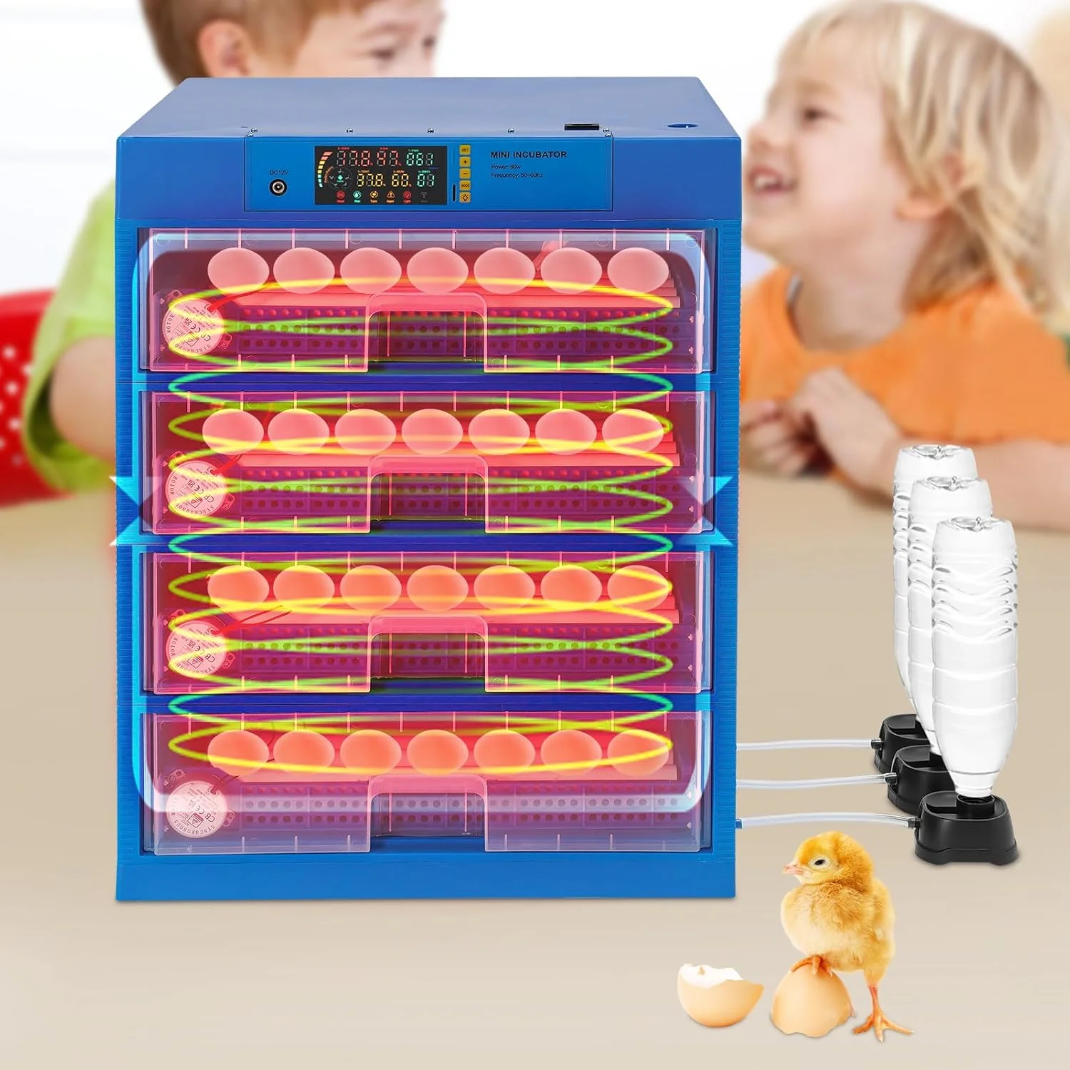 - HIGH EFFICIENCY INCUBATOR FOR HATCHING EGGS: This 192 Egg Incubator with Automatic Egg Turning is perfect for large-scale poultry farming. Capable of hatching 150-180 eggs at once, it features integrated air ducts that circulate warm air to maintain a stable internal temperature, boosting your hatching success rate