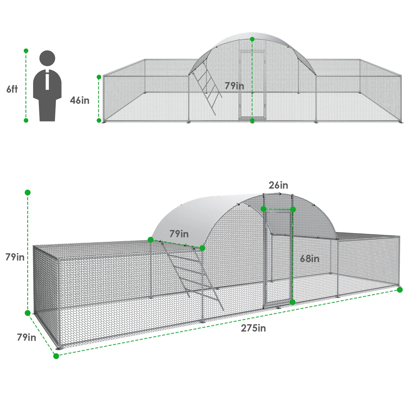 - Spacious Activity Area: Arlopu Metal Chicken Coop, sized 276 x 79 x 79 in with three rooms, offers vast space. Ideal for chickens, it��s also perfect for ducks, rabbits, sheep, and pets like dogs and cats. This Hen House Rabbits Habitat Cage meets diverse needs for animal housing.