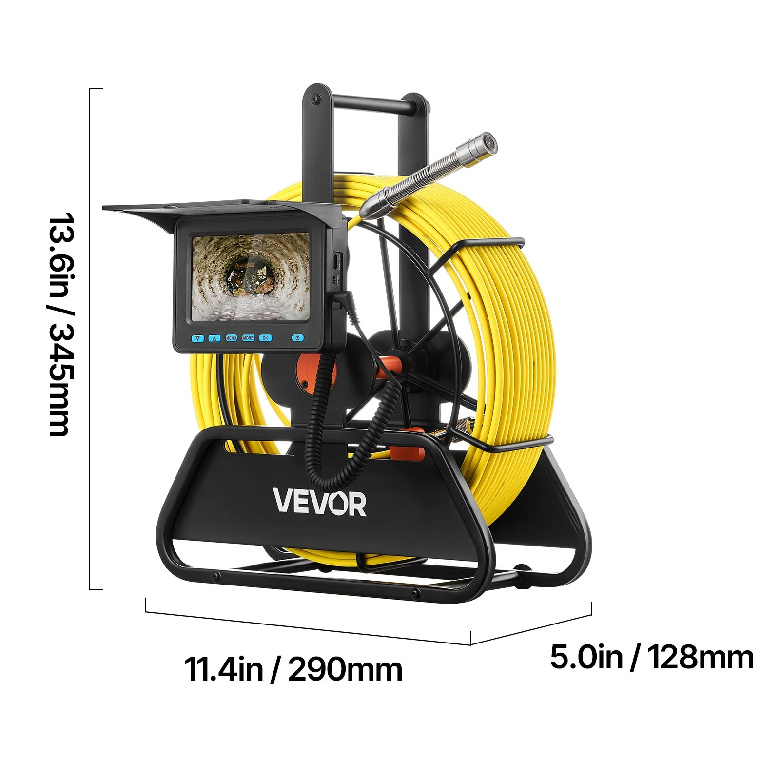 VEVOR Sewer Camera, 164 Ft/50m, 4.3" Drain Inspection Camera, IP68 Waterproof Snake Plumbing Camera with Lights - 6 Adjustable Leds, 4500mah Battery & 16GB Card for Sewer Line Duct Pipes