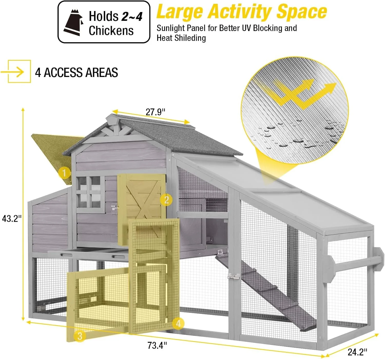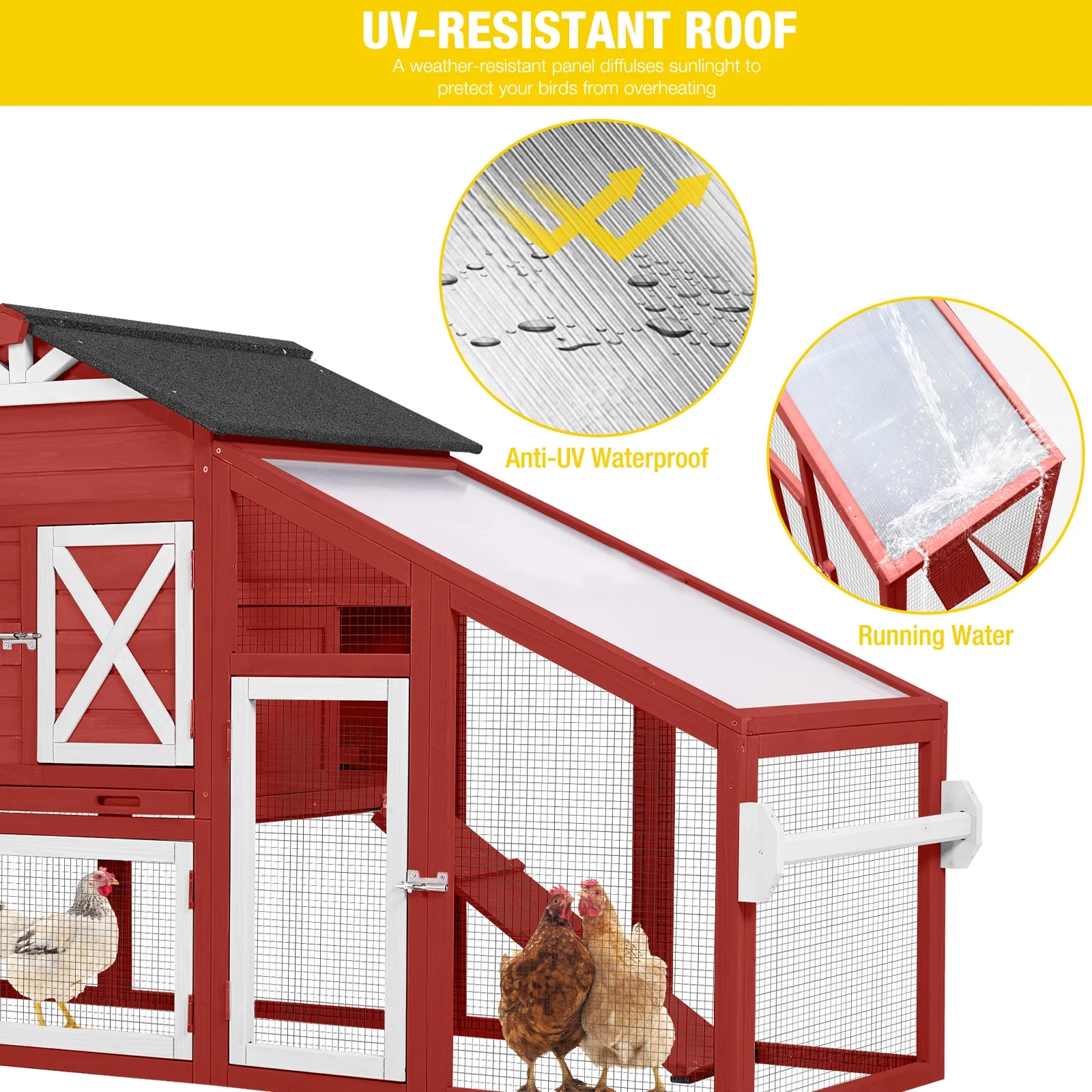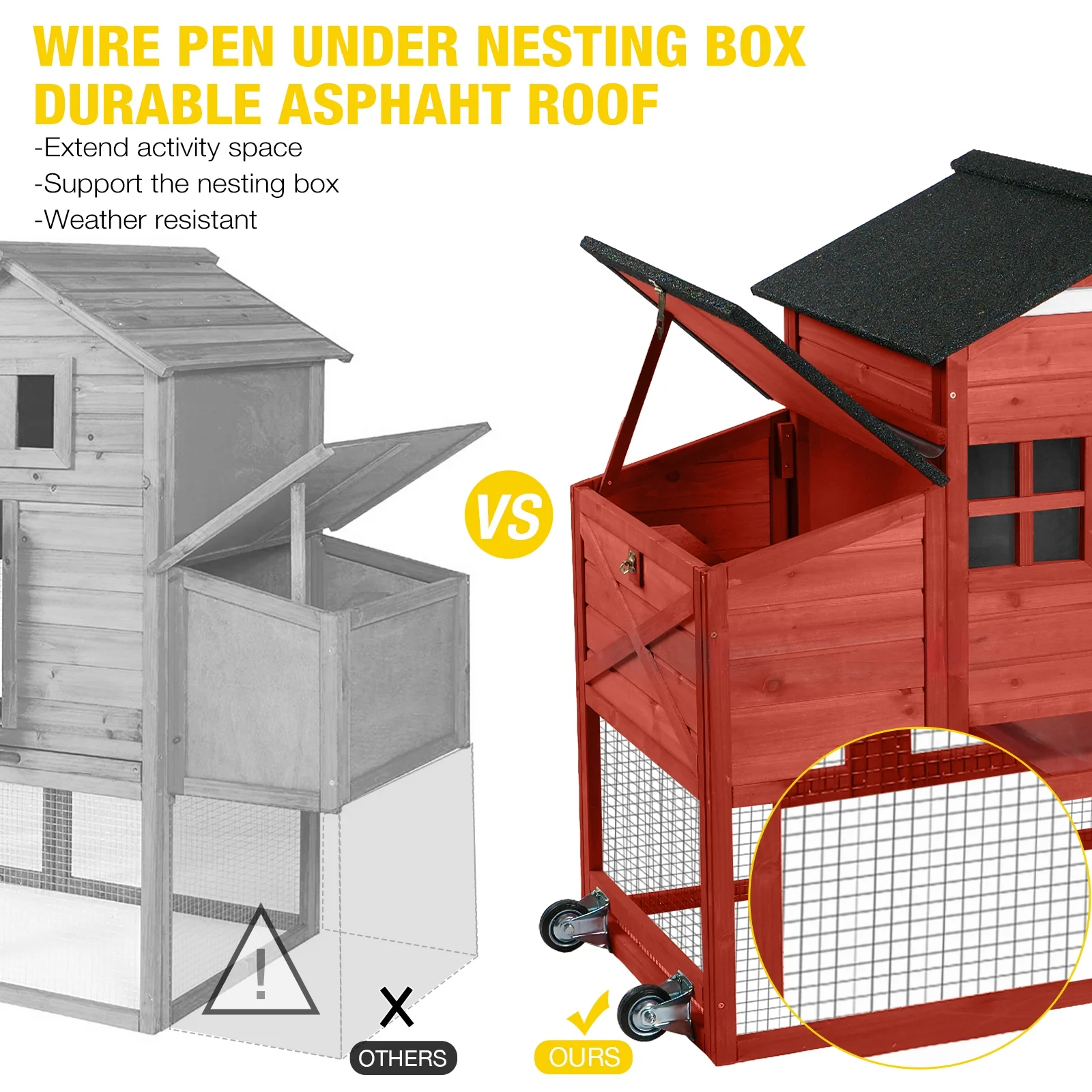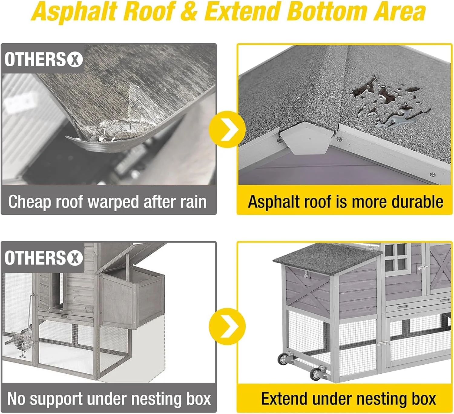 - asphalt roof has well performance on rain resistant, anti-UV panel prevent hens been expose to the heavy sunlight