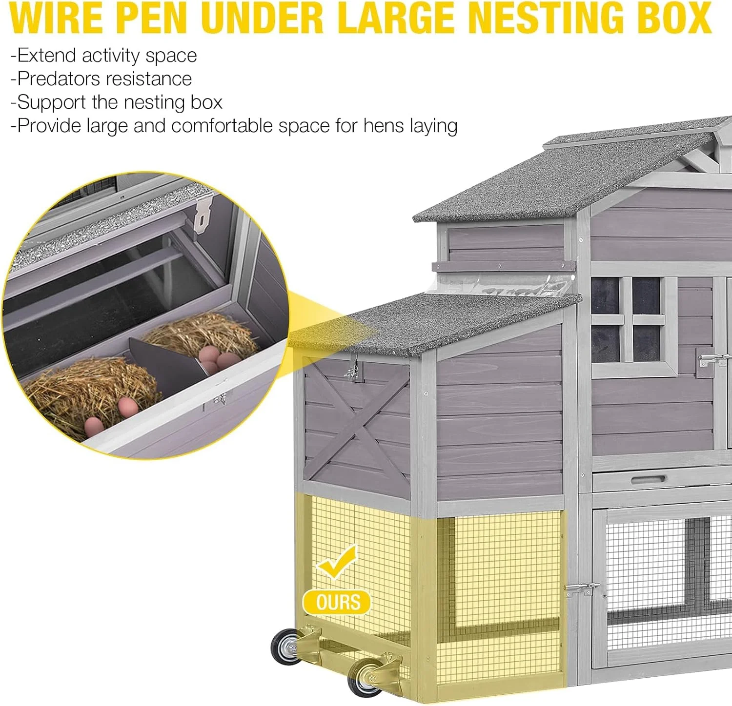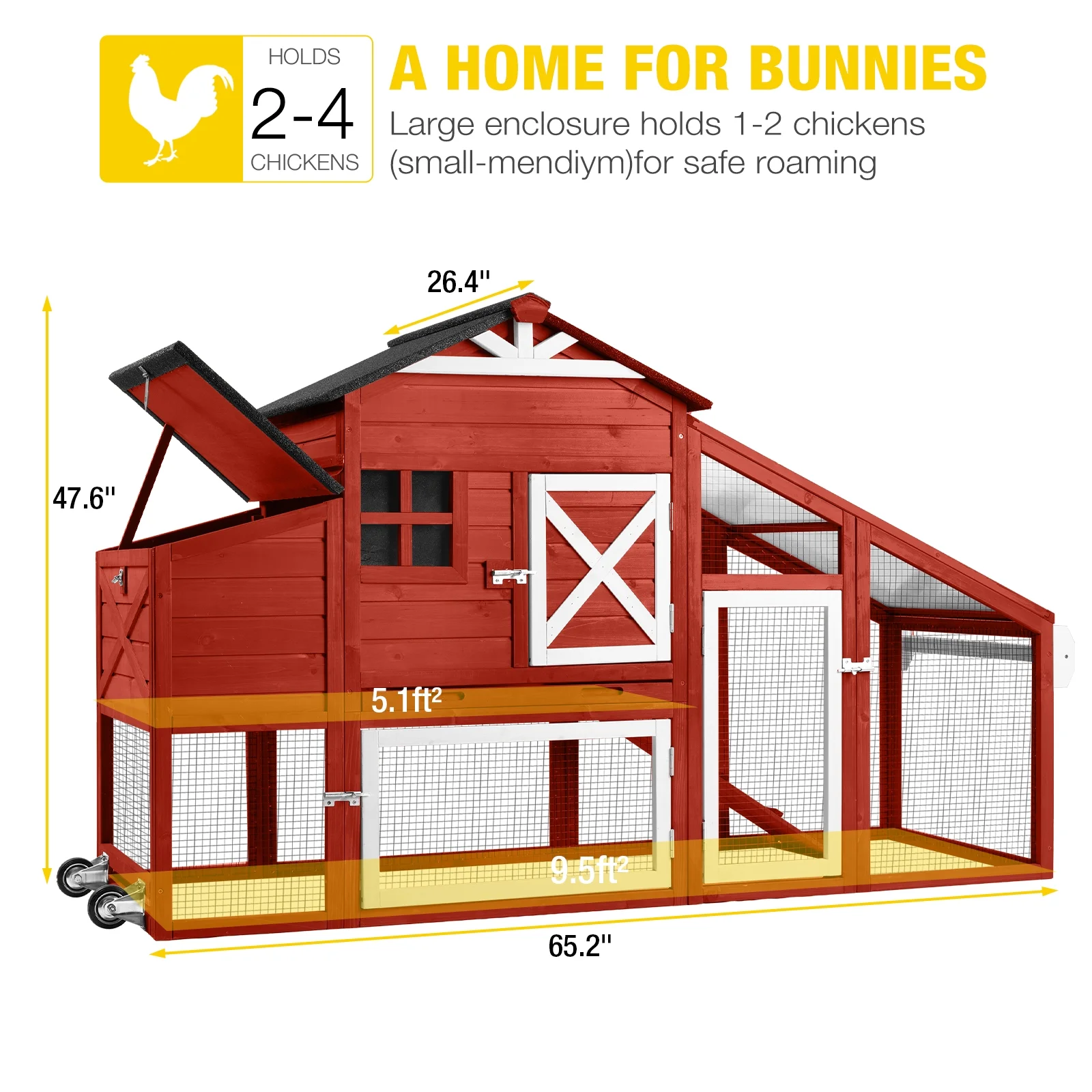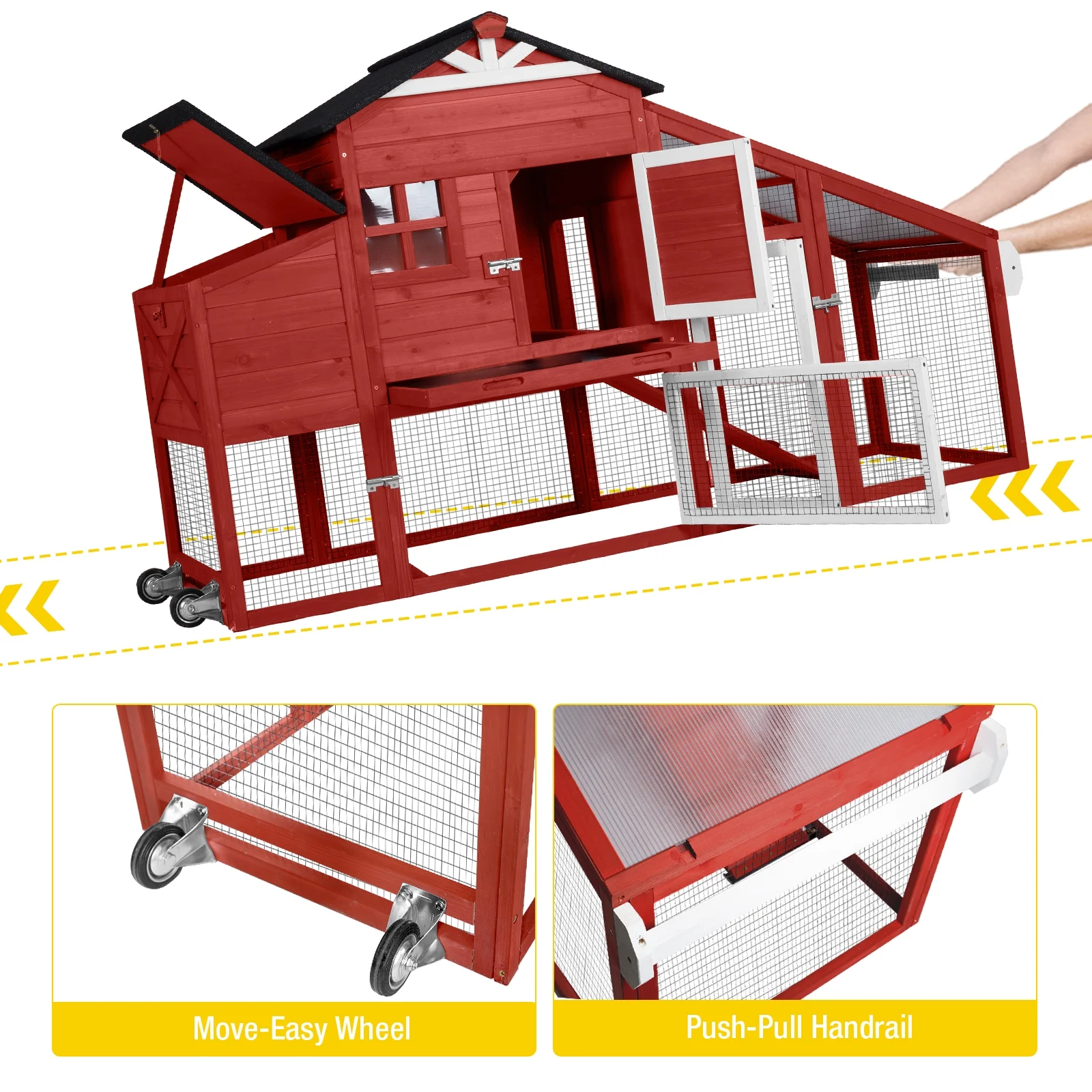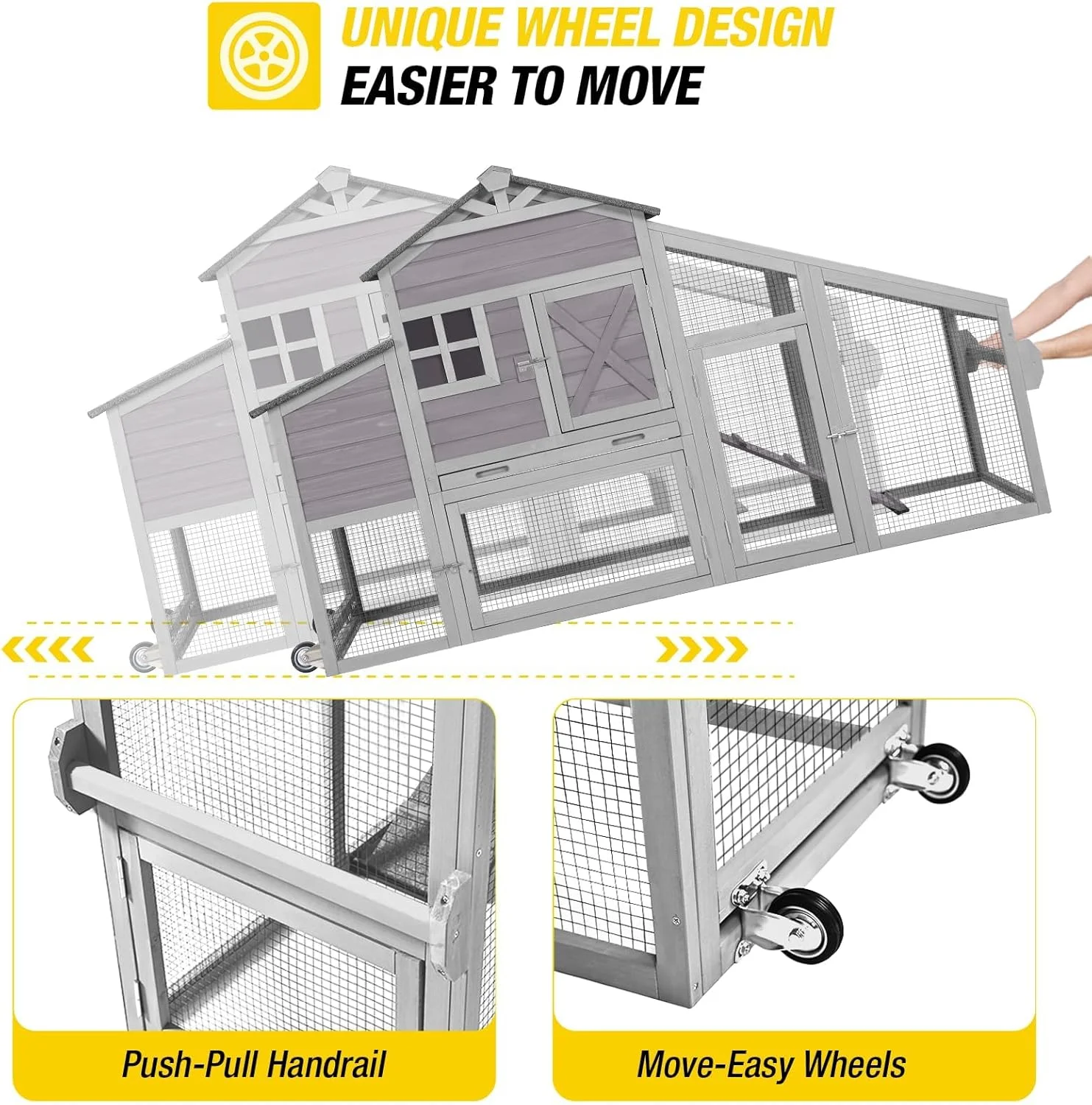 - this chicken coop with wheels & pull-push handrail to move easily