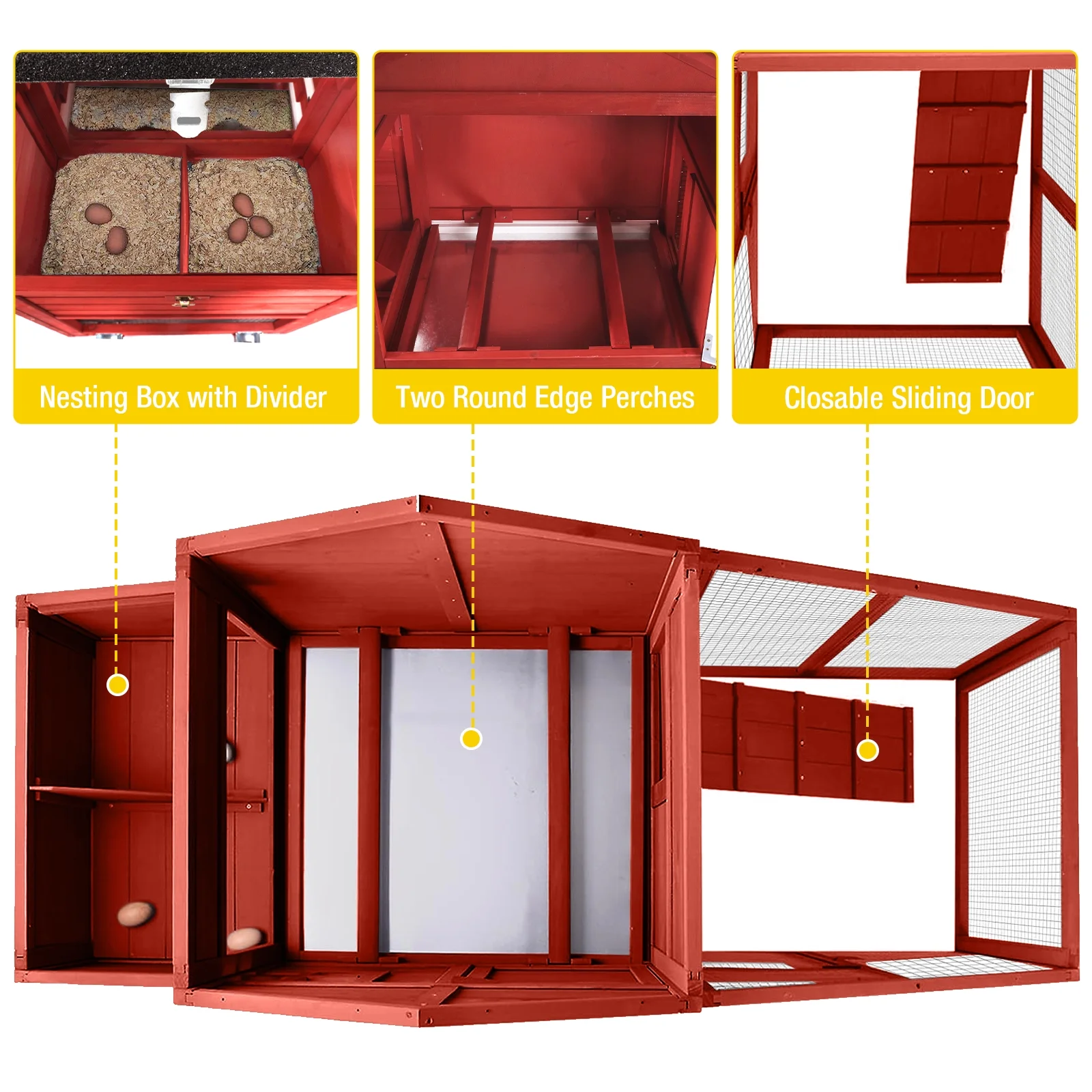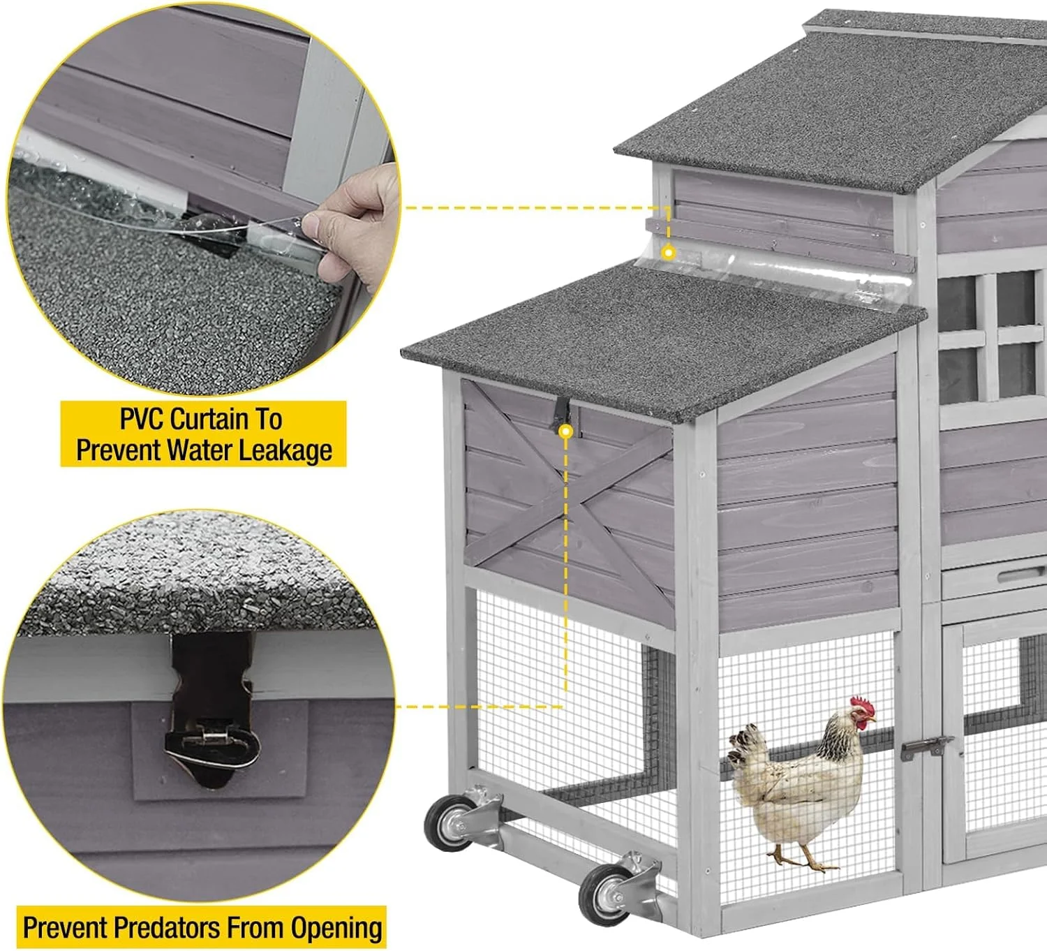 - POULTRY SAFE GUARANTEE: heavy-duty galvanized wire mesh and metal spring latch can great protect your poultry, the steel pole of sliding doors keeps roosters and ducks locked up safely at coop