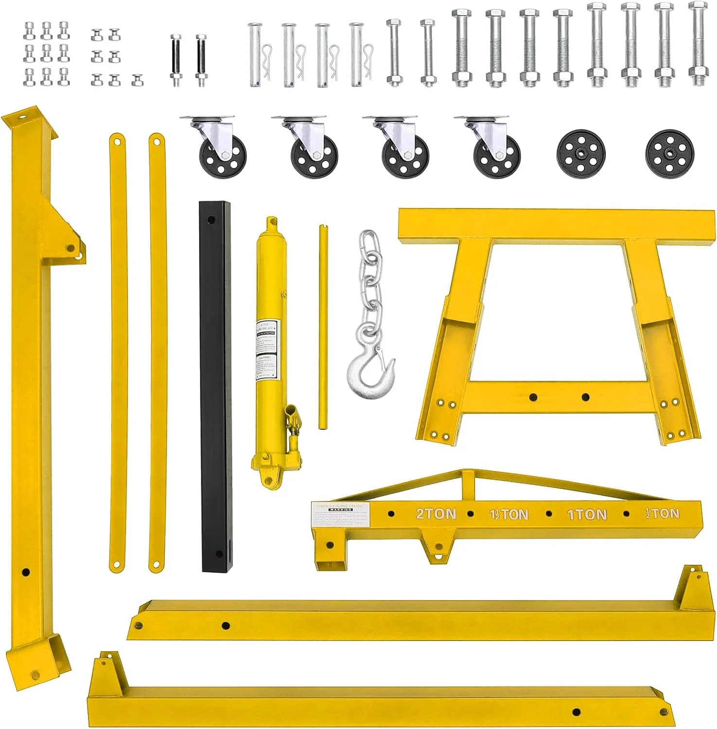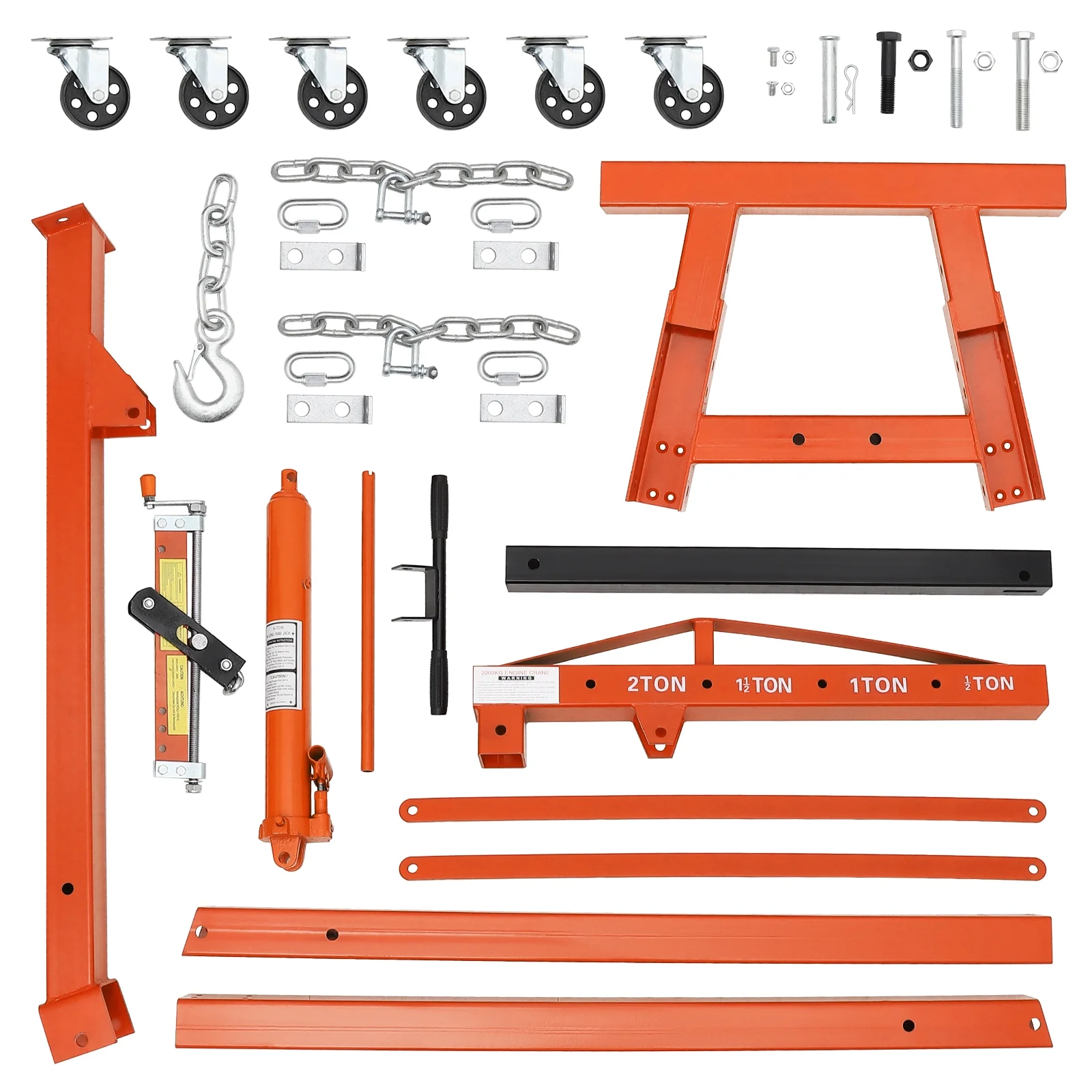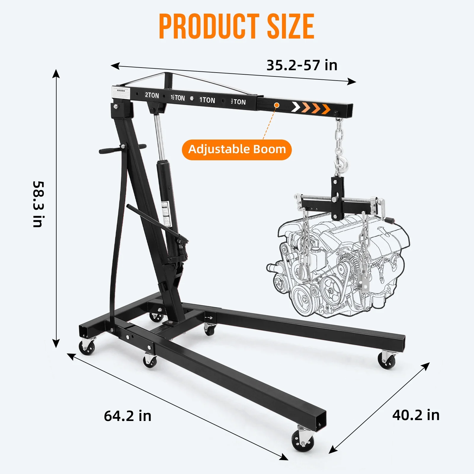 - High-Quality Material: our engine hoists are Crafted from high-strength, heavy-duty steel materials, and equipped with an 8-ton hydraulic pump, our engine lift boasts an extraordinary lifting capacity of up to 4400 lbs/2 T, making it the perfect solution for handling heavy engines.