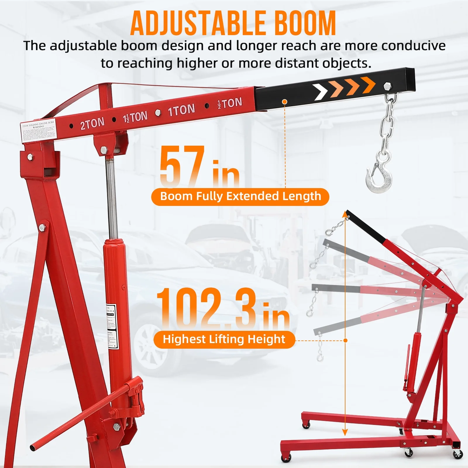 - Precision And Control: The boom offers four adjustable positions (1/2 ton, 1 ton, 3/2 ton, and 2 ton) to cater to your specific needs, allowing for precise handling of various motor sizes. The retractable outriggers and versatile folding design provide adaptability and flexibility, making it suitable for various work environments.