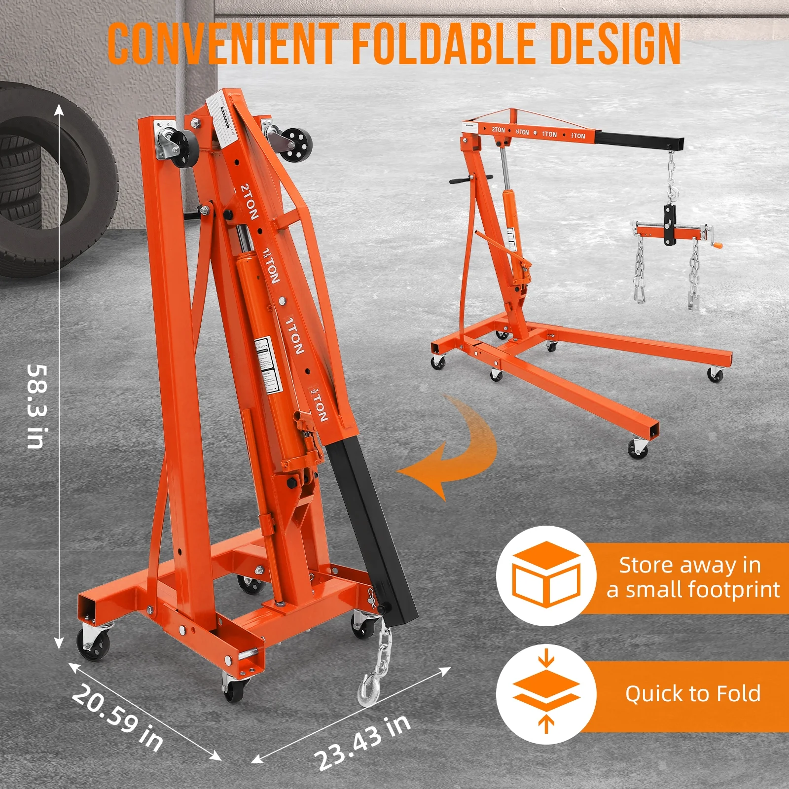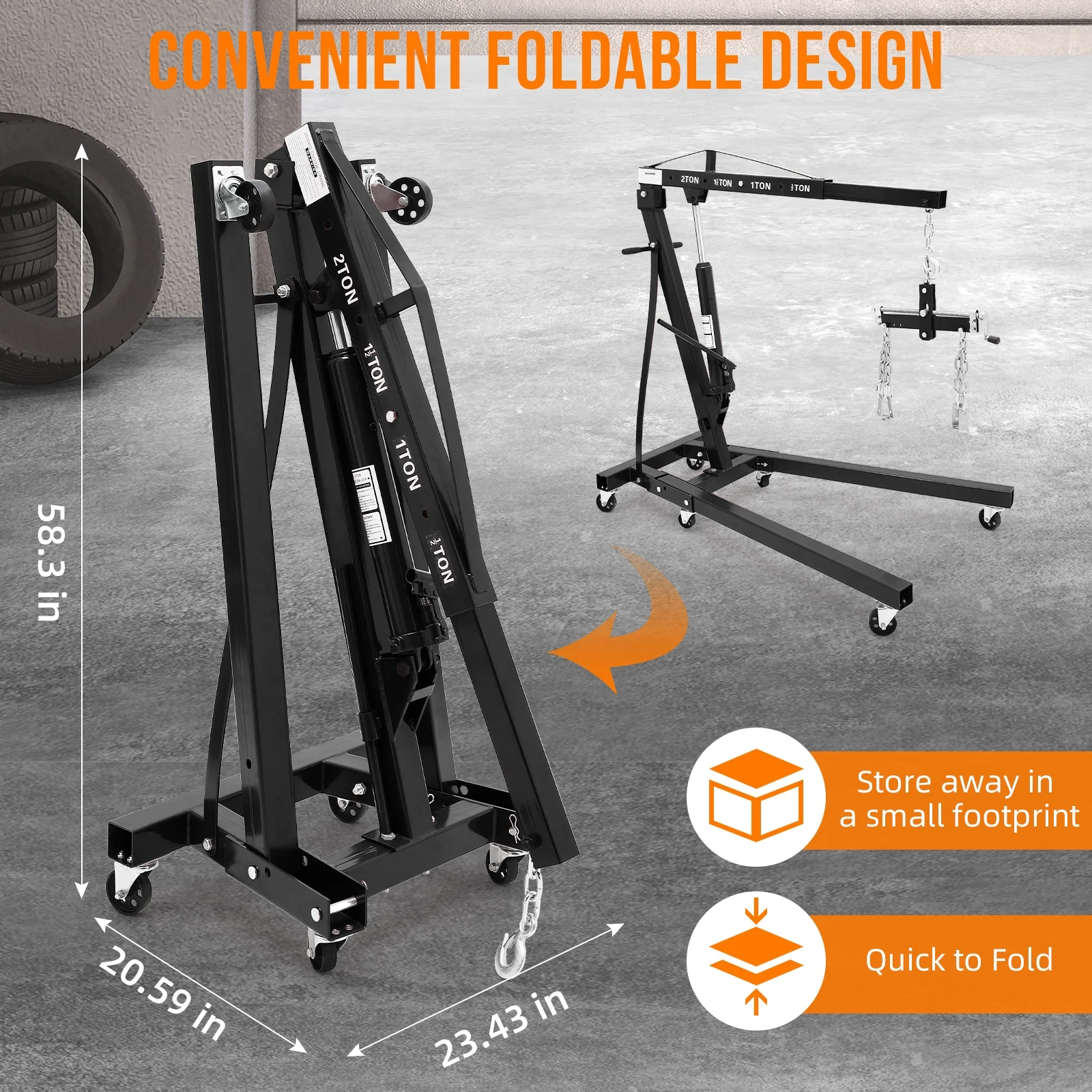 - Foldable Engine Hoist: When your work is done, easily fold the engine hoist for convenient storage. Its compact design minimizes space usage, keeping your garage or workshop tidy. Elevate your repair efficiency with our innovative 2-in-1 engine hoist!