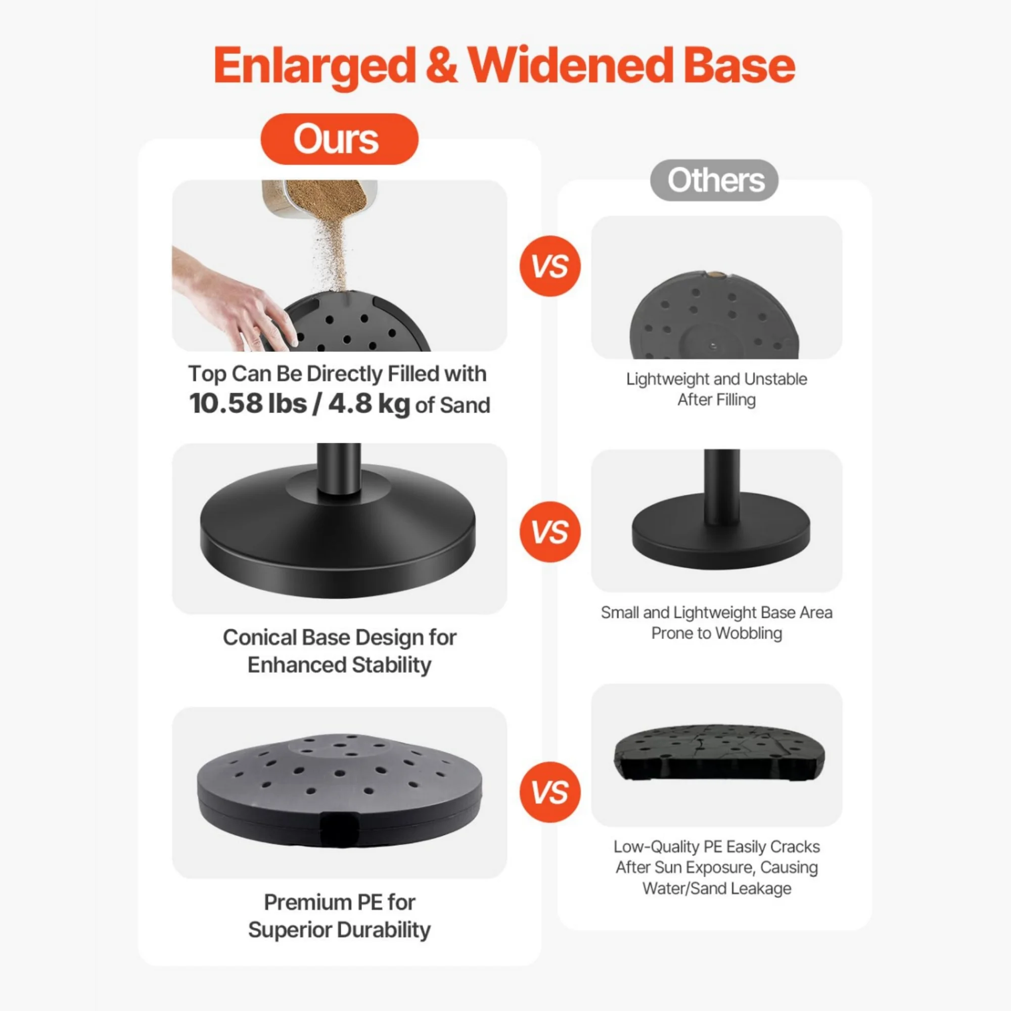 - ?Stable Conical Base: Featuring a trapezoidal base design with a non-slip, PE fillable bottom, our stantions is easy to stabilize��just fill it with sand to enhance its stability. With a weight of 10.58 lbs / 4.8 kg when filled, it provides strong support, capable of withstanding direct sunlight or unexpected impacts.