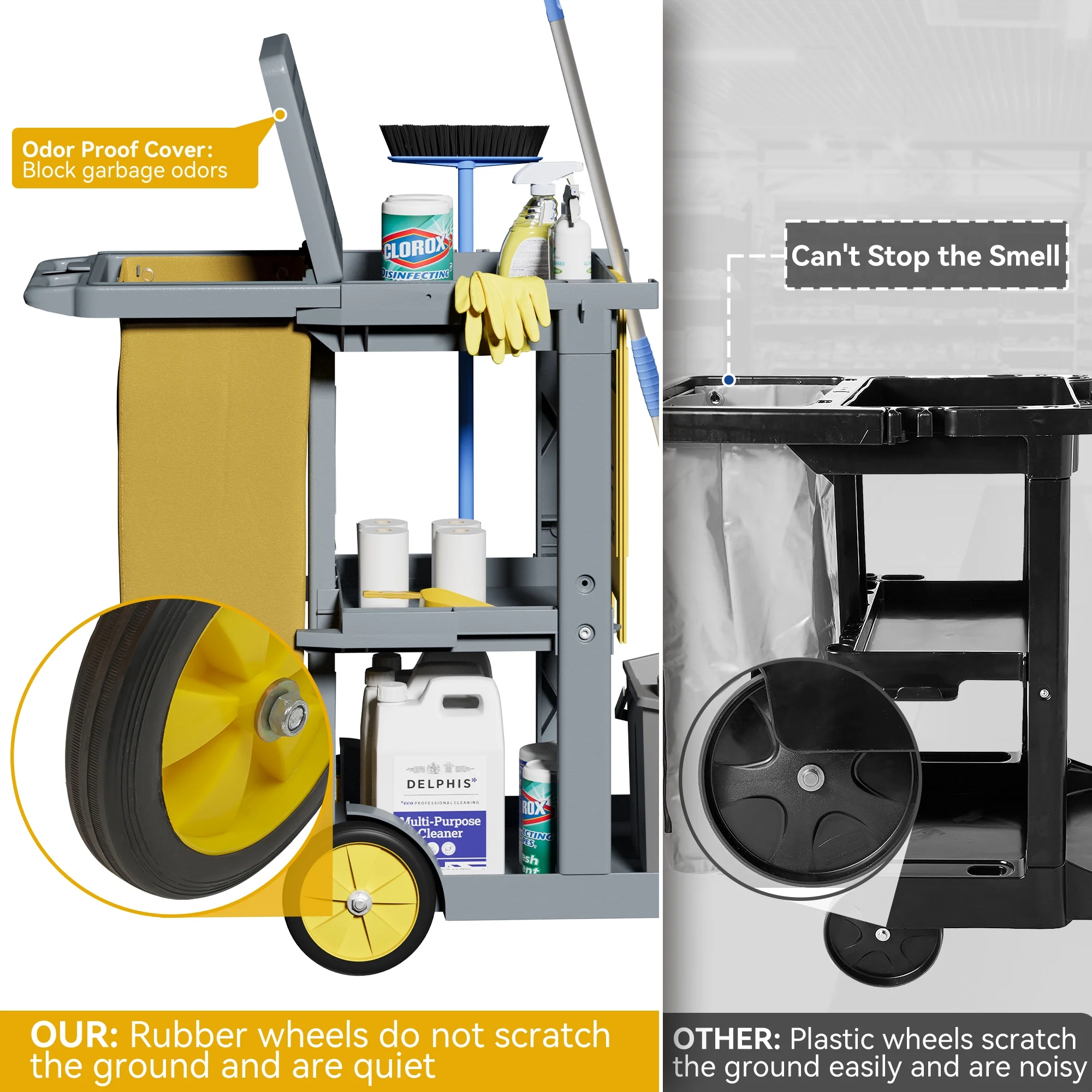 - Premium Quality Construction : Made from high-grade polypropylene (PP) material, this cleaning cart is designed for exceptional durability, ensuring it withstands daily wear and tear for long-lasting performance.