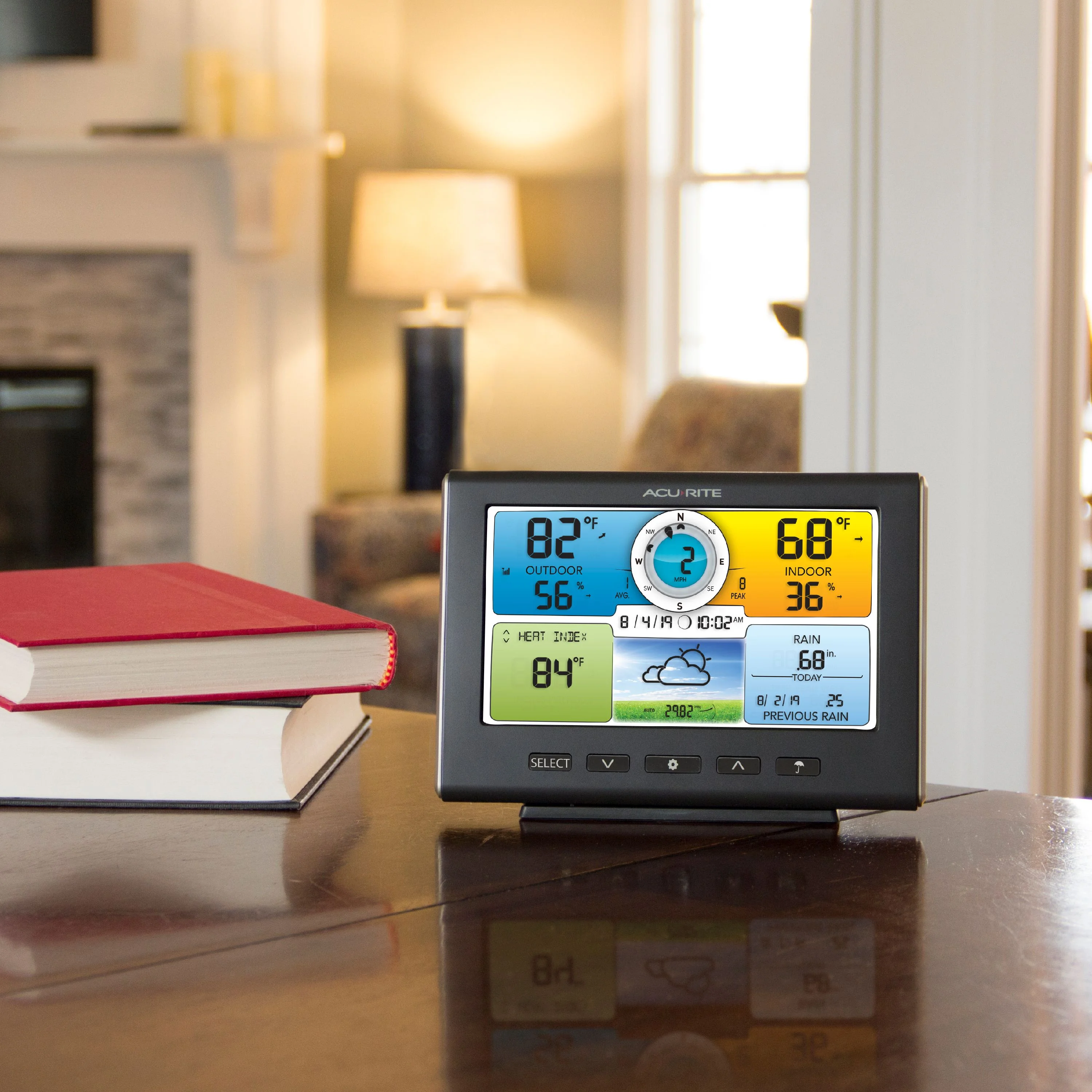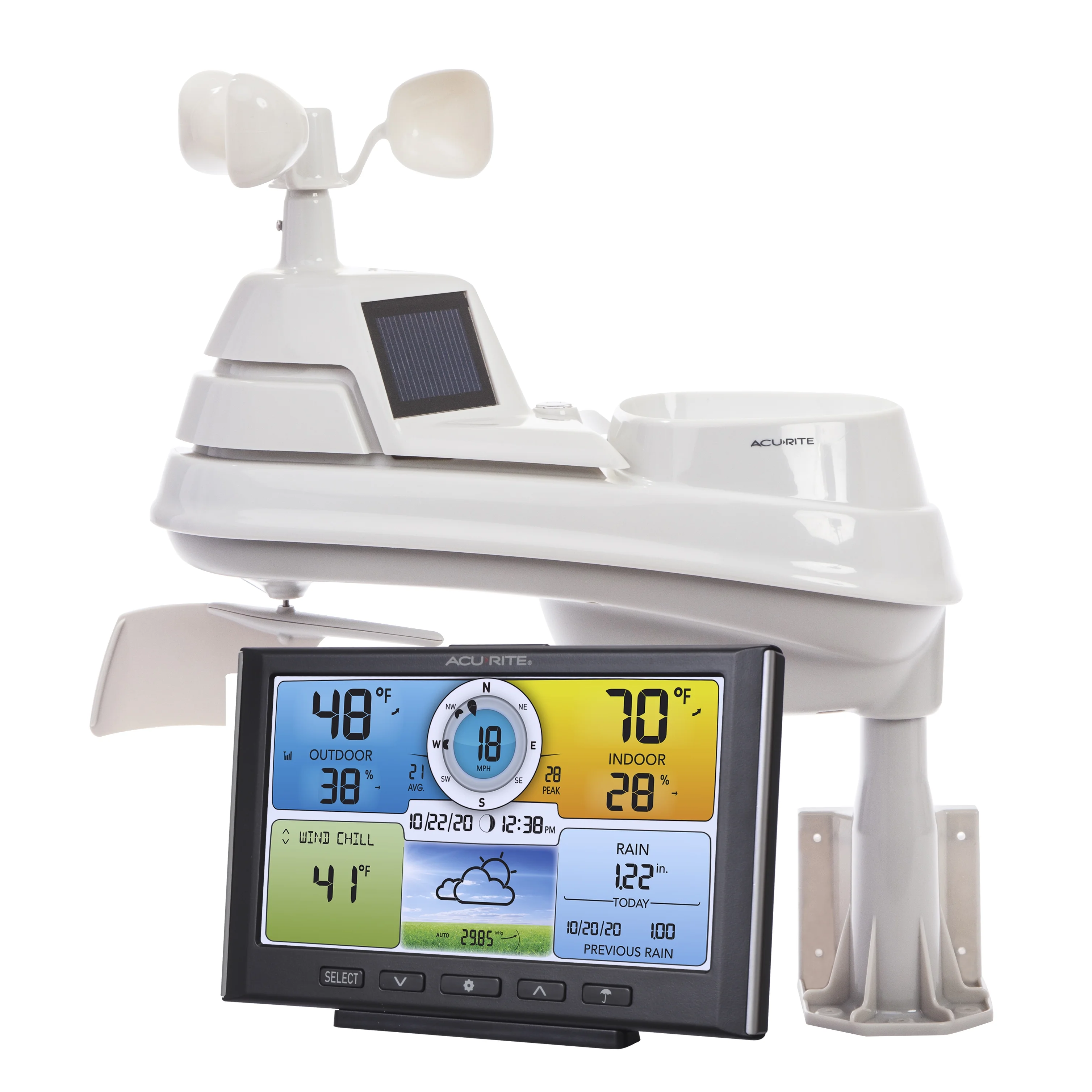 Say goodbye to your old-school storm glass, wind vanes, and anemometers, and say hello to the AcuRite Iris (5-in-1) Wireless Home Weather Station (01529M)! More advanced than a basic indoor/outdoor thermometer, the indoor weather gauge display provides you with the indoor and outdoor temperature and humidity, wind speed, wind direction, and rainfall. It also acts as the perfect weather clock, as it provides the time, date, and moon phase. In addition, the indoor weather gauge display provides a hyperlocal forecast 12 hours from your current conditions, which is calculated by using the display��s built-in barometer and the data collected by the wireless outdoor sensor in your yard. The outdoor weather station with rain gauge measures conditions and relays the data to the display, so you��ll know what it is like out in your backyard without even having to go outside! With all your hyperlocal weather data on an easy-to-read display, you��ll be able to boast to your neighbors that you have the best weather station!