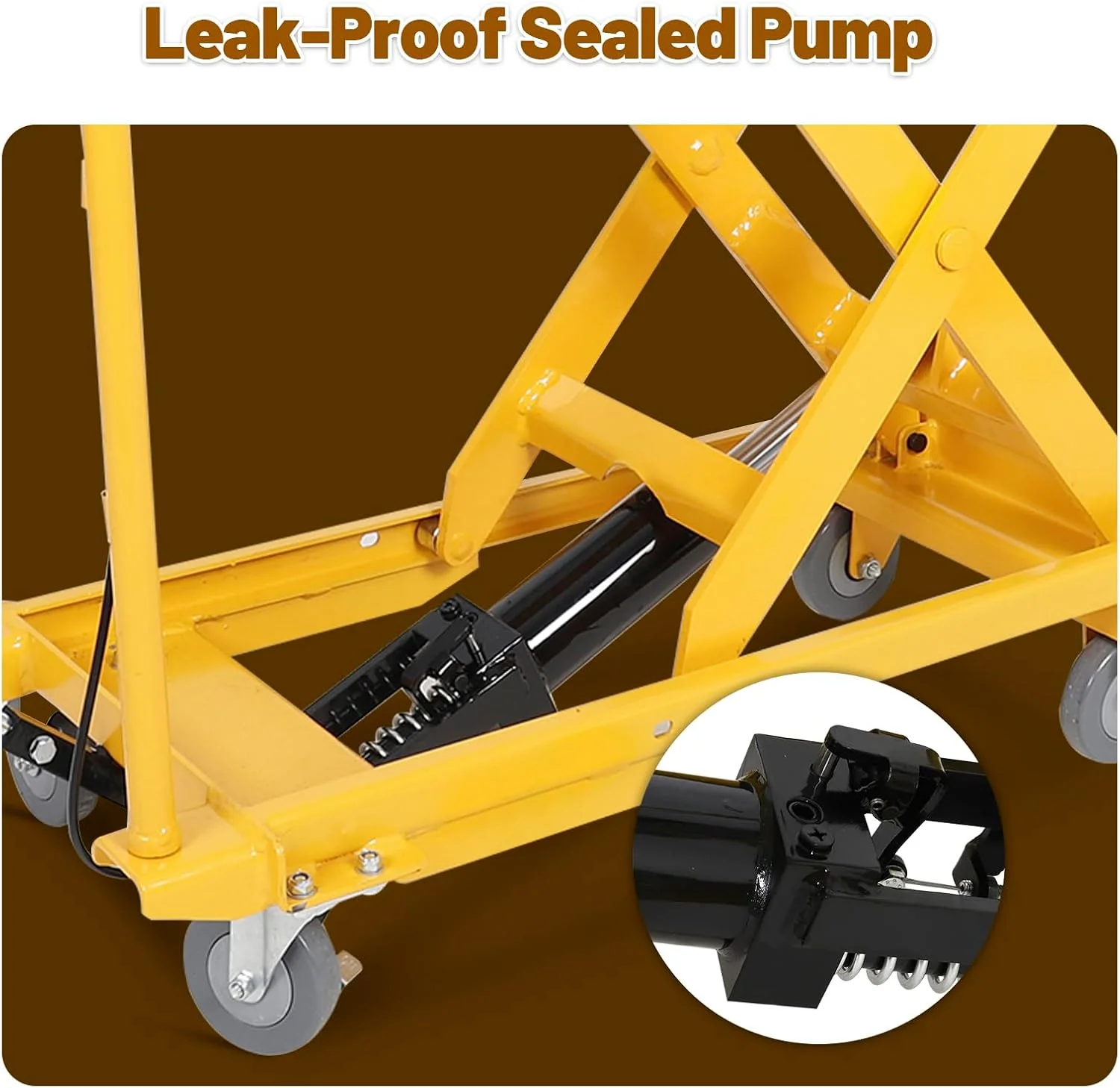 - Our lift table cart features reliable power performance with a leak-proof sealed hydraulic pump for controlled, high-capacity lifting without oil leaks