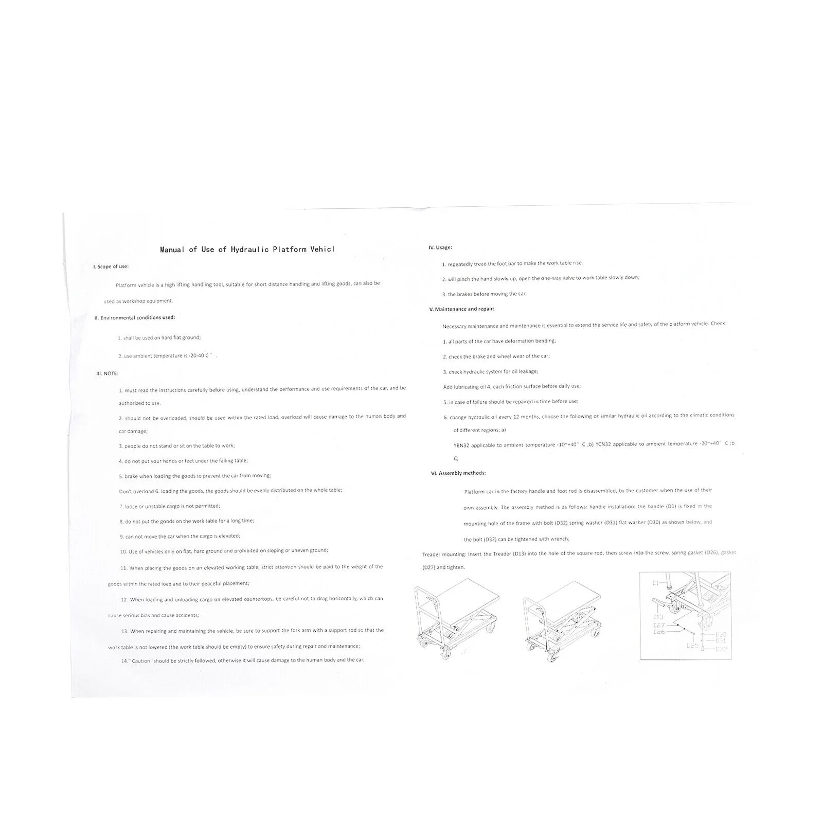 Secure Design: Our hydraulic table cart incorporates thoughtful security features, including limiter protection to prevent over-lifting. It also features a maintenance/overload protection bar for easy maintenance. For added stability during transport, we provide a rubber non-slip pad that prevents movement and enhances overall stability.