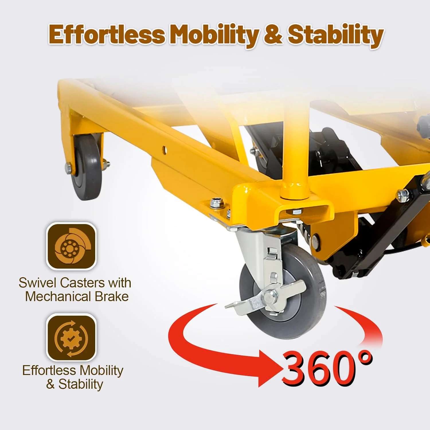 - This hydraulic lift table cart can effortless mobility with 4" 360�� swivel casters and brake locks for smooth transport and stable stops
