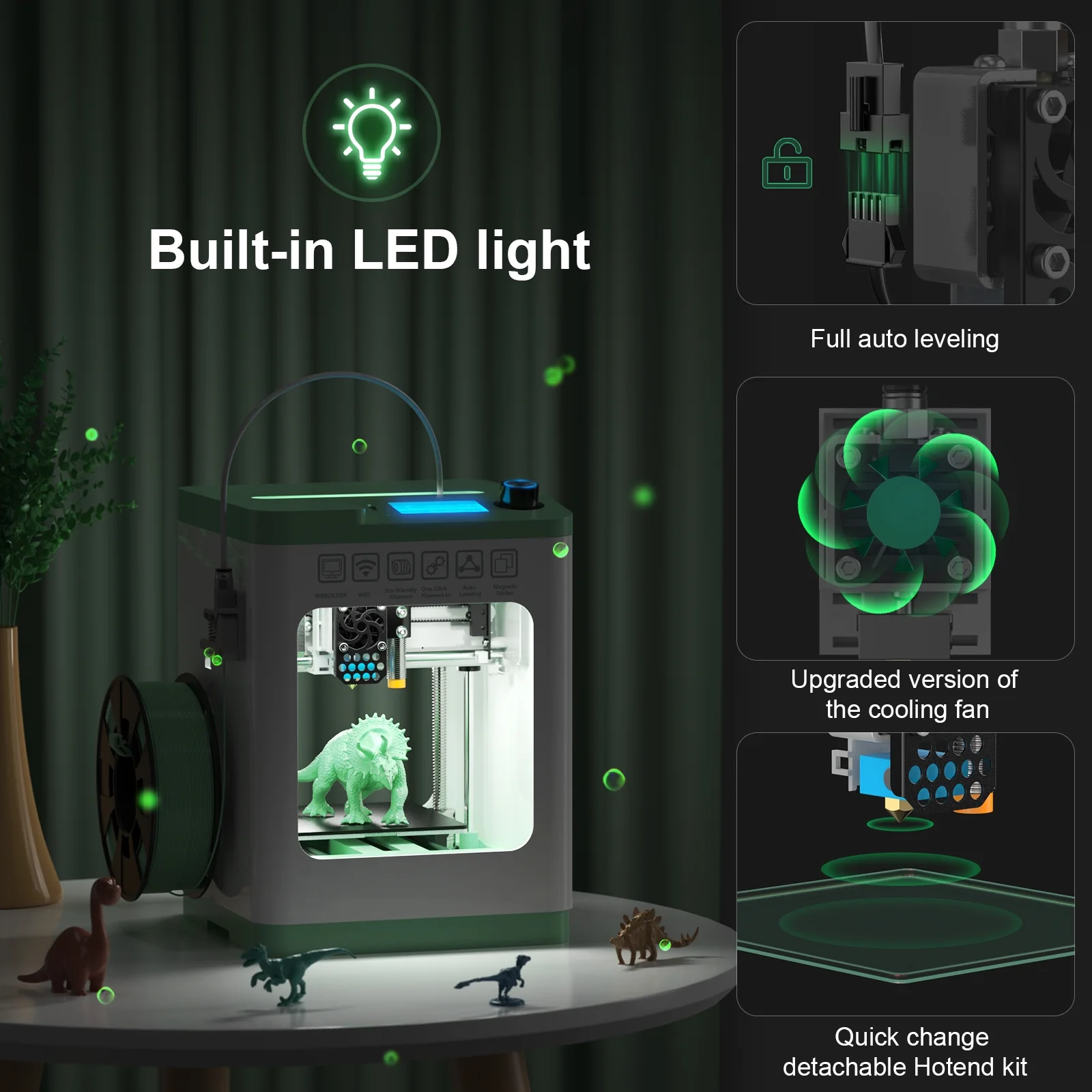 - Humanized Design: Built-in led light, at any time and anywhere to observe the printing process of the printer, more clearly show the working status of the printer. Quick-change test nozzle to reduce the printer clogging problem, greatly reducing the difficulty of replacing accessories, making the printer easier to operate, dual Z-axis guide design, to ensure stable movement!