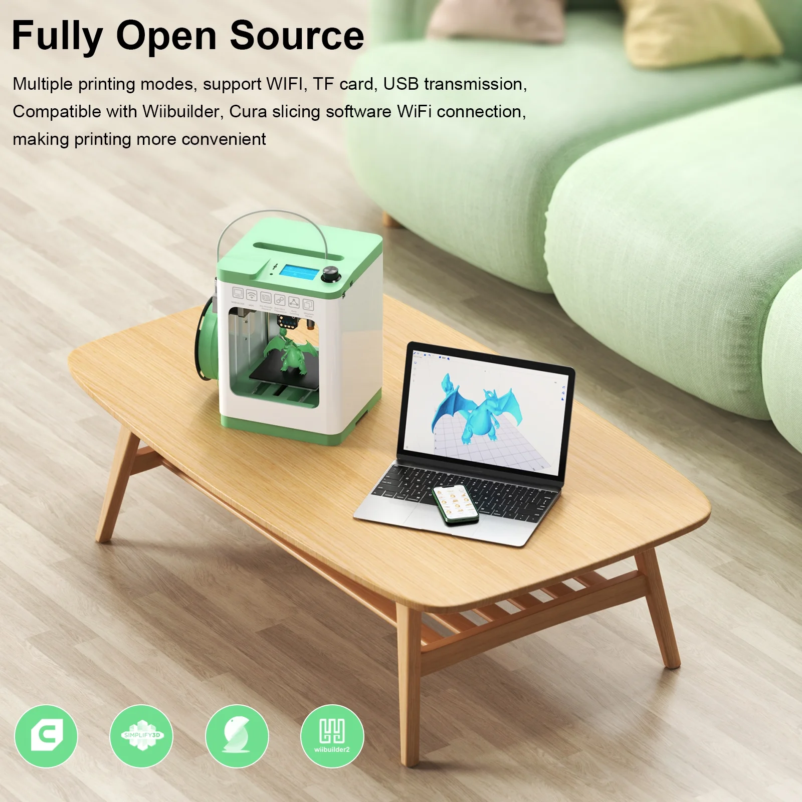 - Completely Intelligent: Equipped with the new self-developed APP, massive model library, to achieve one-click control of the printer. Print at your own pace, you can choose to print in multiple ways via APP/USB/Wiibuilder slicing software, fully open source and compatible with Cura, Simplify3d and Slicr3r slicing software.
