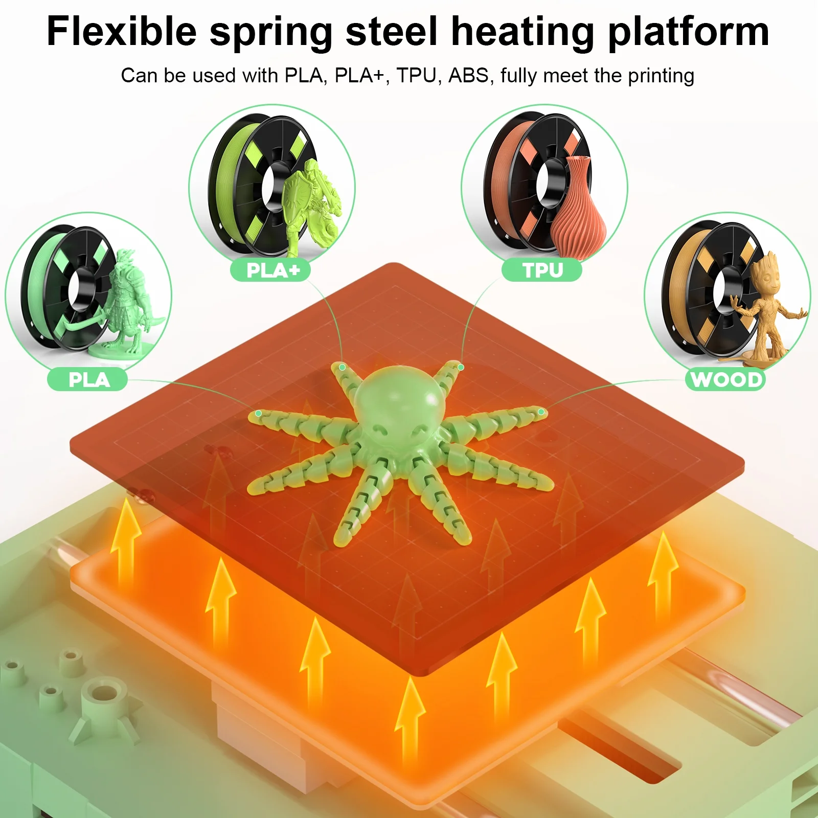 - Automatic Leveling & Heated Platform: The small 3D printer has a built-in automatic leveling system that eliminates the need for manual adjustments for successful printing. Features a flexible and removable spring steel build plate to reduce model warpage issues, easy removal of prints, and easy cleaning of the platform.