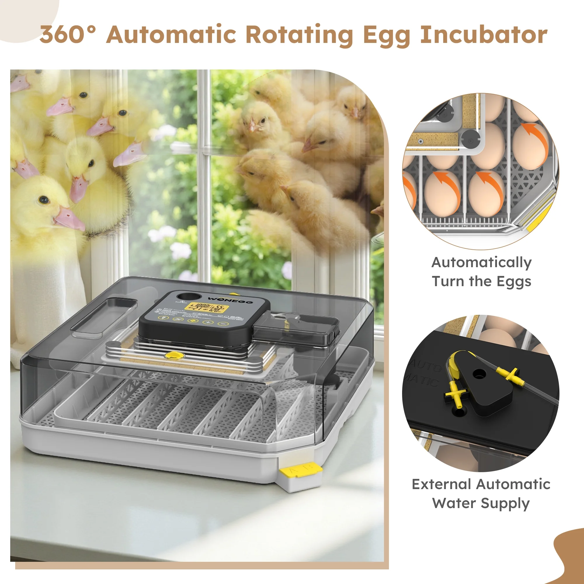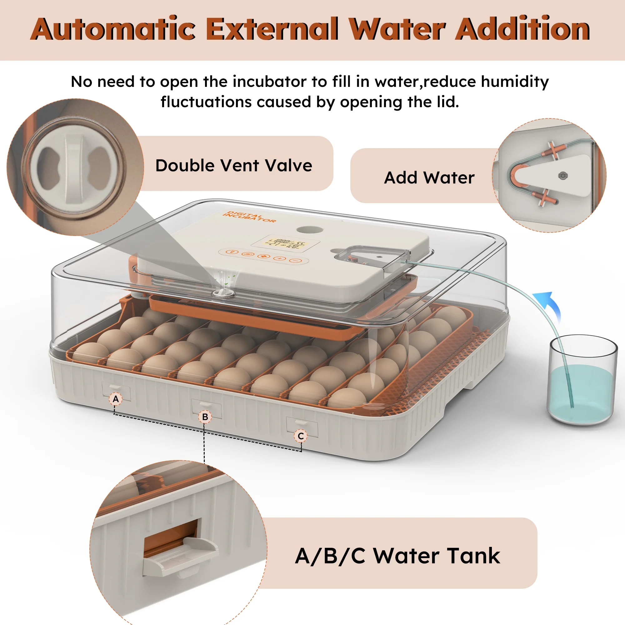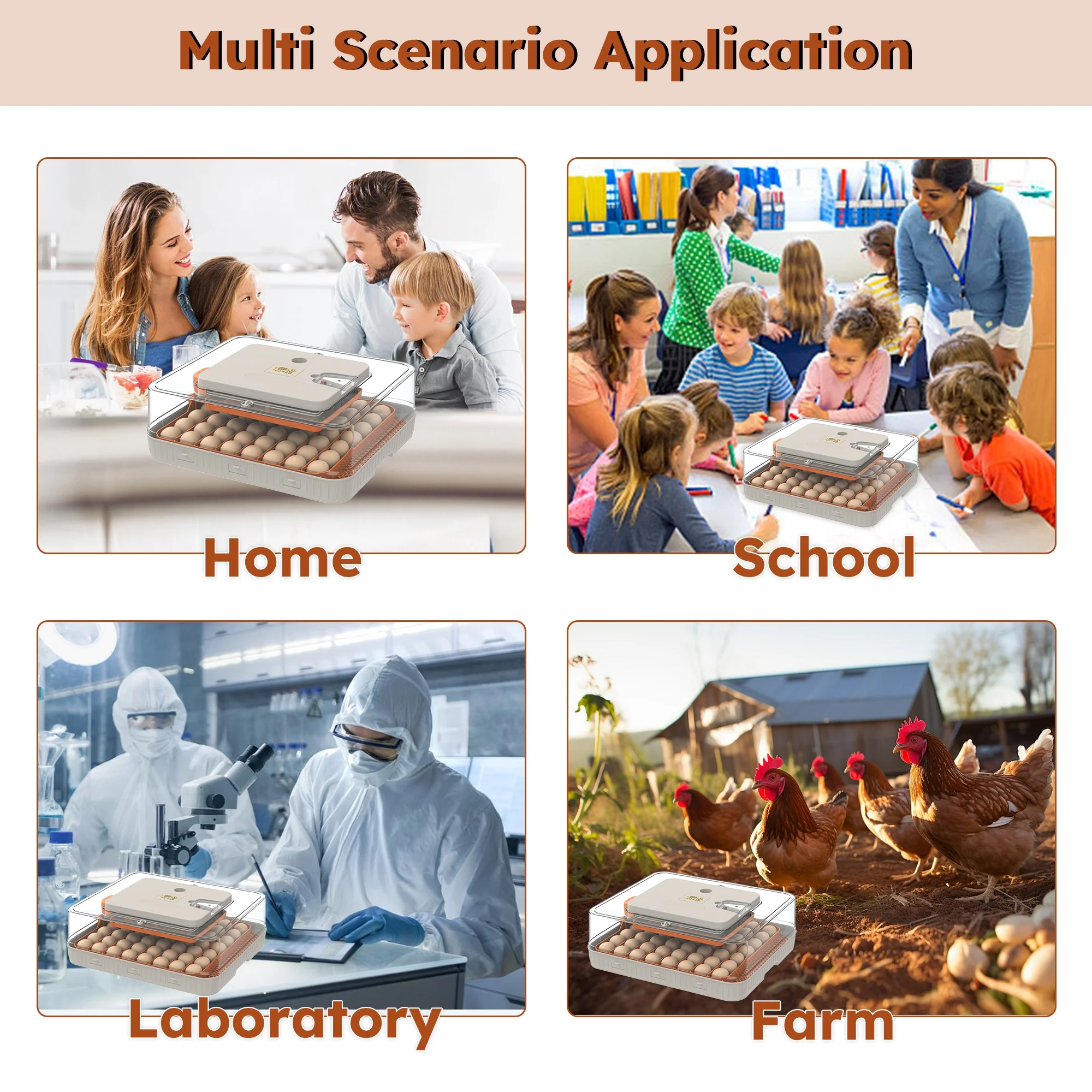 Begin your home hatching journey! This 56-egg capacity smart automatic incubator is the ideal choice for effortlessly hatching chicken, duck, goose, quail, and various other poultry eggs!