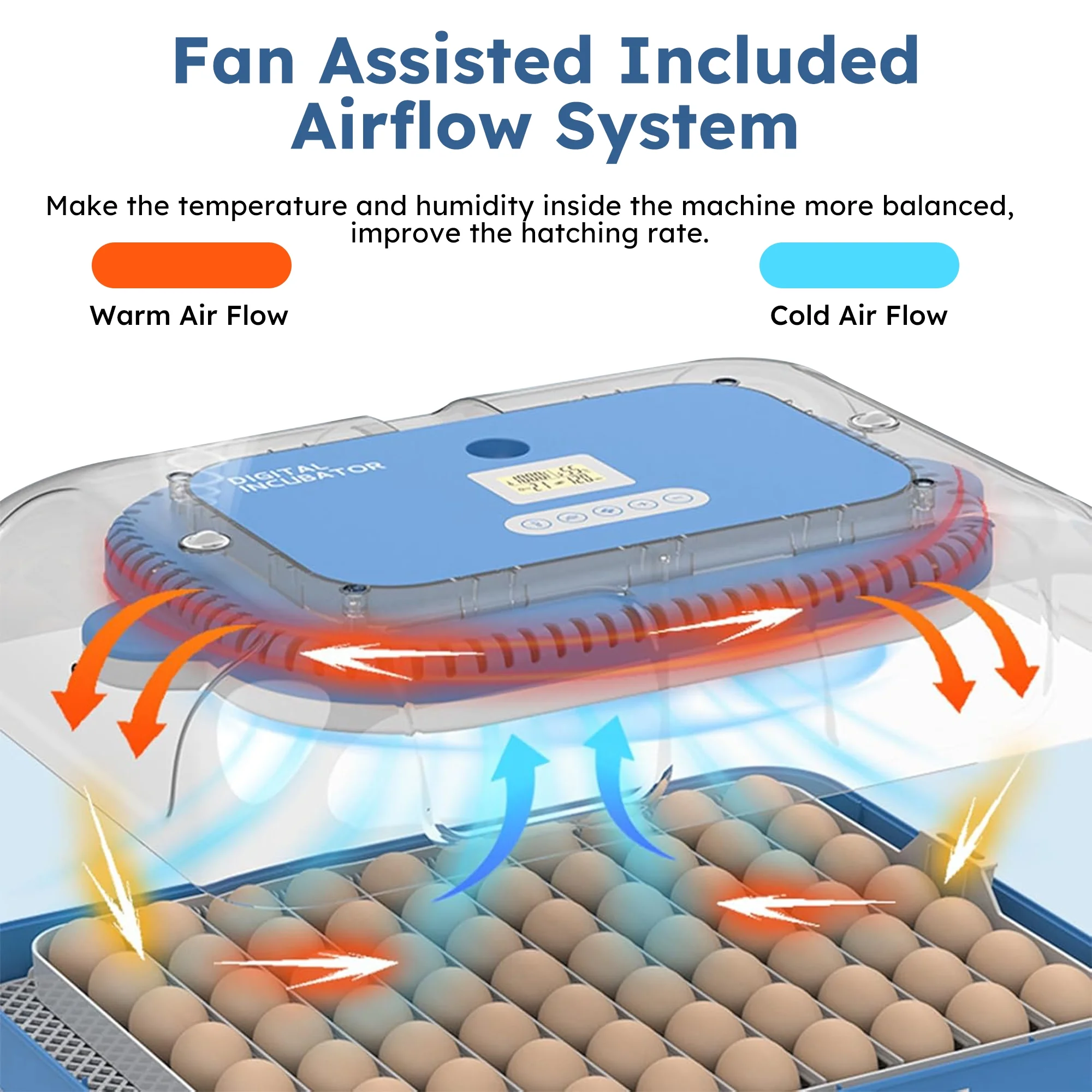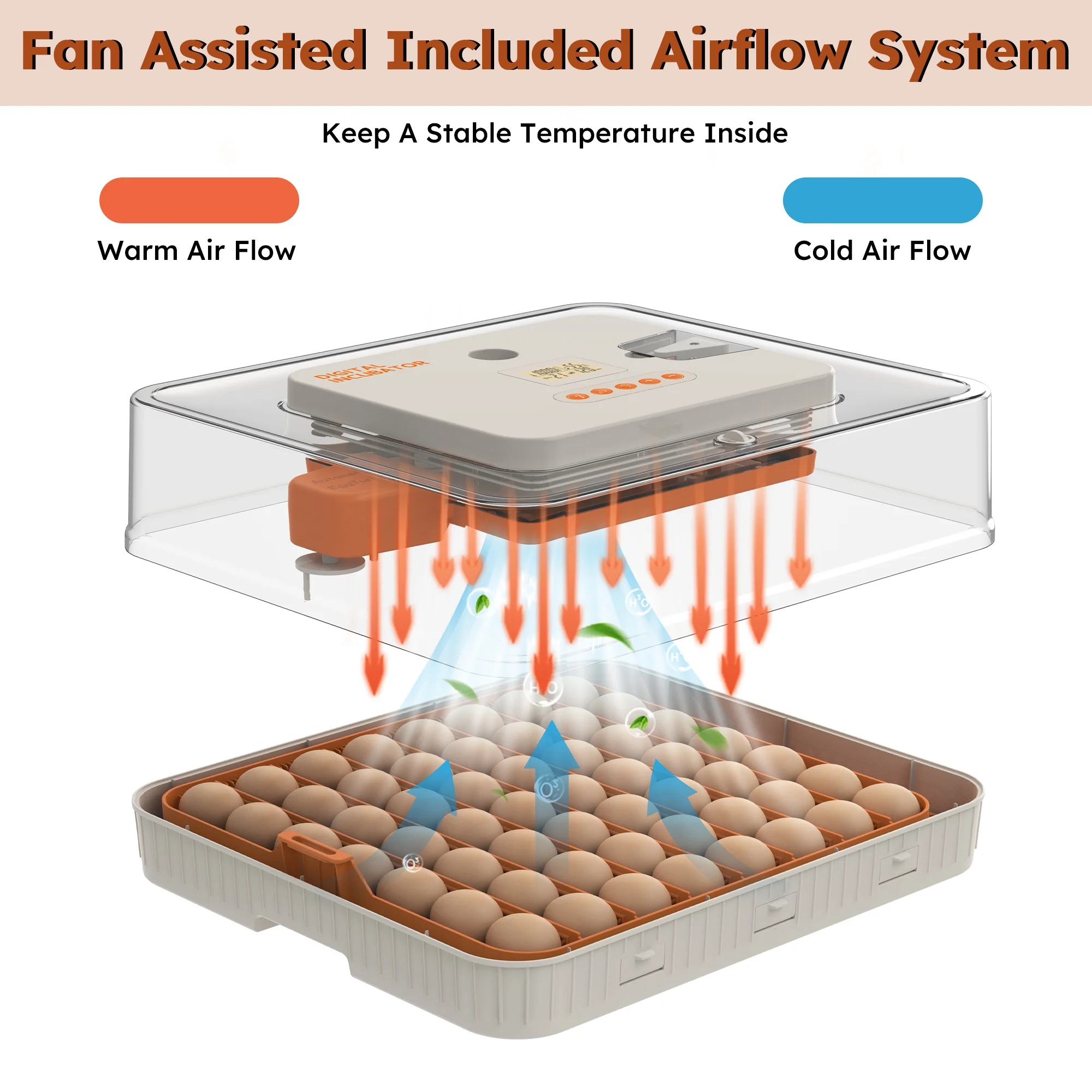 Large Capacity & Efficient: Holds up to 56 chicken eggs (or equivalent duck/goose/quail eggs), perfect for productive hatching.
