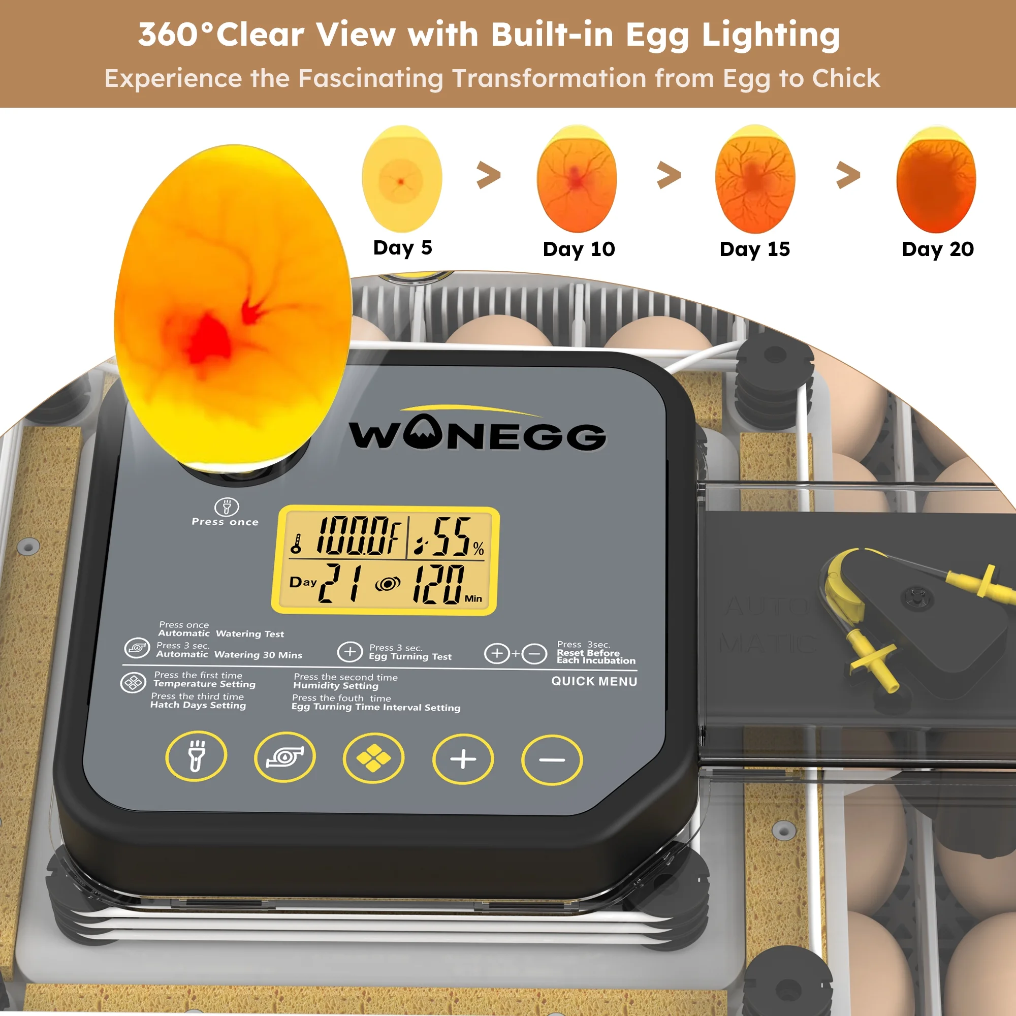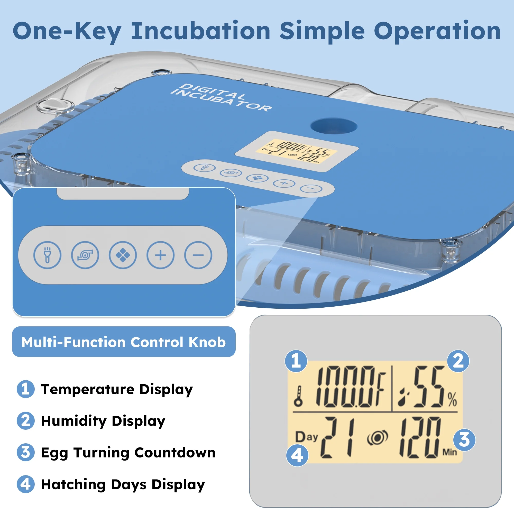 Built-in LED Light: Allows convenient visual checks on egg development.
