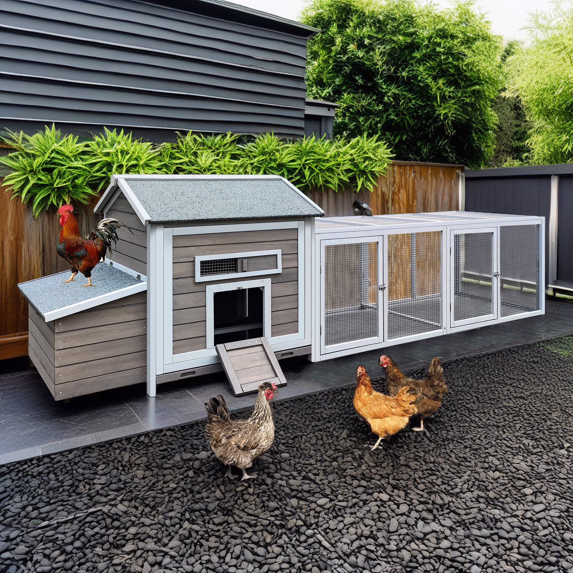 - Chicken coop removable bottom sliding tray and multidoor for easy cleaning. Great for rabbits, chickens, ducks, or other poultry. Waterproof roof, can protect animals.