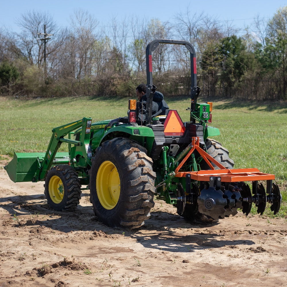 - A MUST HAVE FOR YOUR FIELD: The 42" Disc Harrow with notched blades is a must-have for anyone looking for an affordable way to turn the soil in your field. Break up unwanted weeds and debris to prepare the ground for planting.