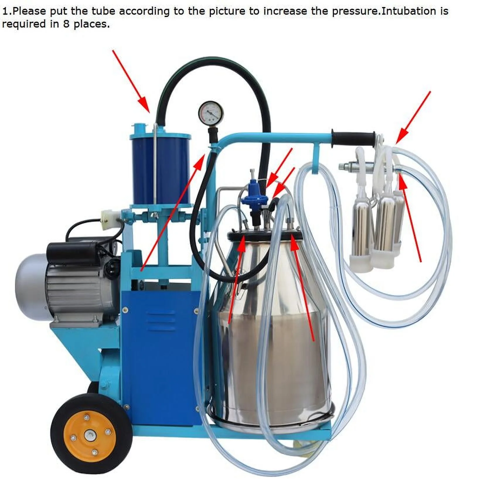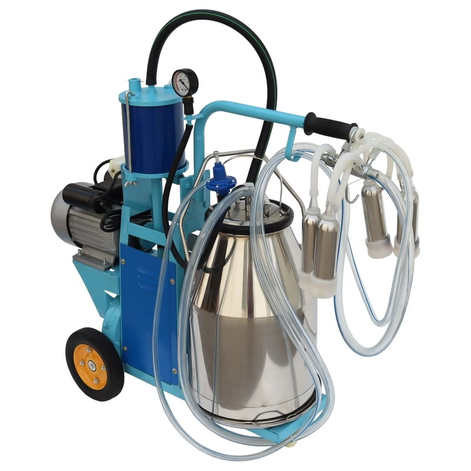 - This electric milking machineadots high-quality rubber wheel, which has good quality, and it is more durable. Also it is easy to move, saving time and effort.