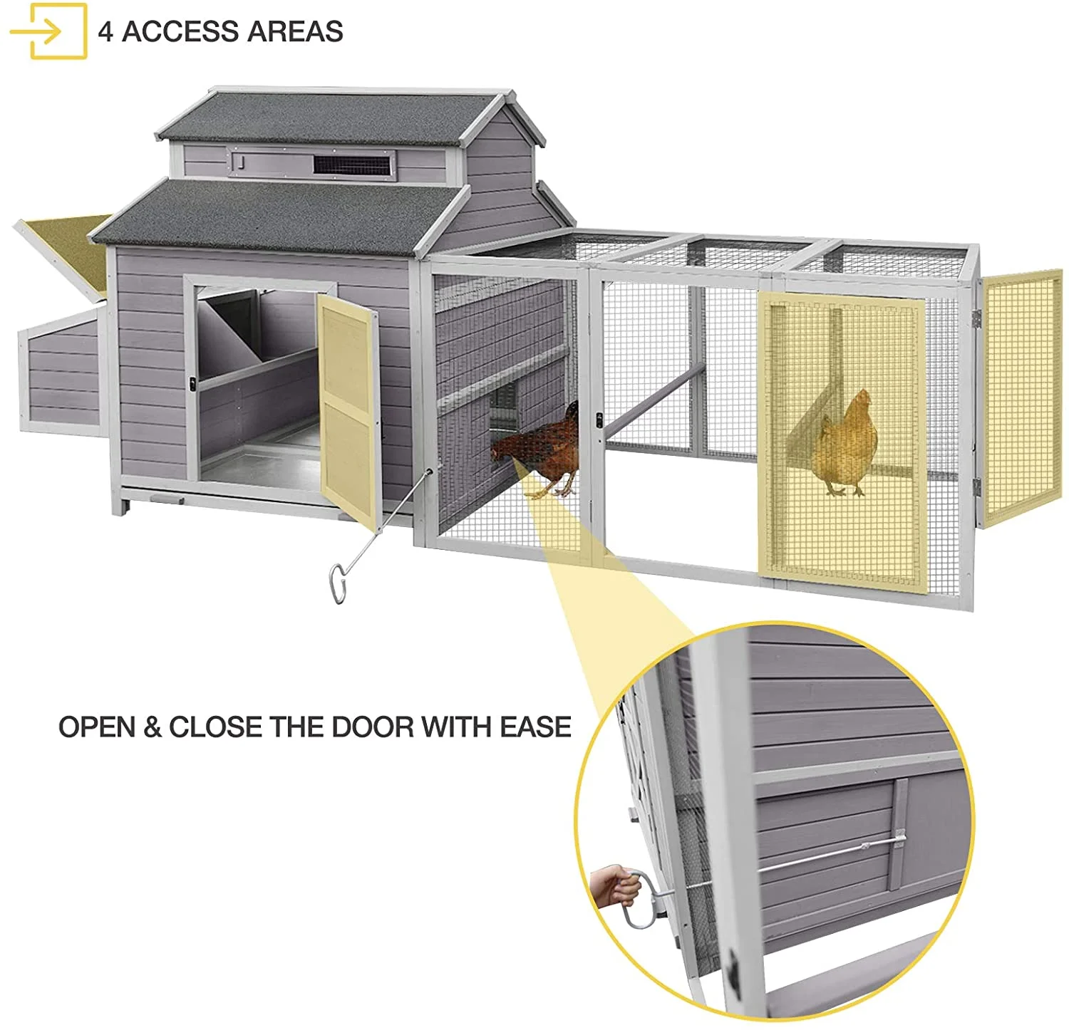 - Safe Guarantee: heavy galvanized netting and upgraded latches efficacious protect poultry from predator.