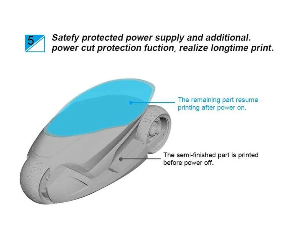 - Creality Ender-3 3d printer equipped with super quiet printing designing, with smooth adjustable pulley, and if power is accidentally cut off during printing, accurate printing can be continued after power is switched on.With the power supply protection device and resume printing function, no need to worry about the accidental outage, avoiding the waste of filaments.