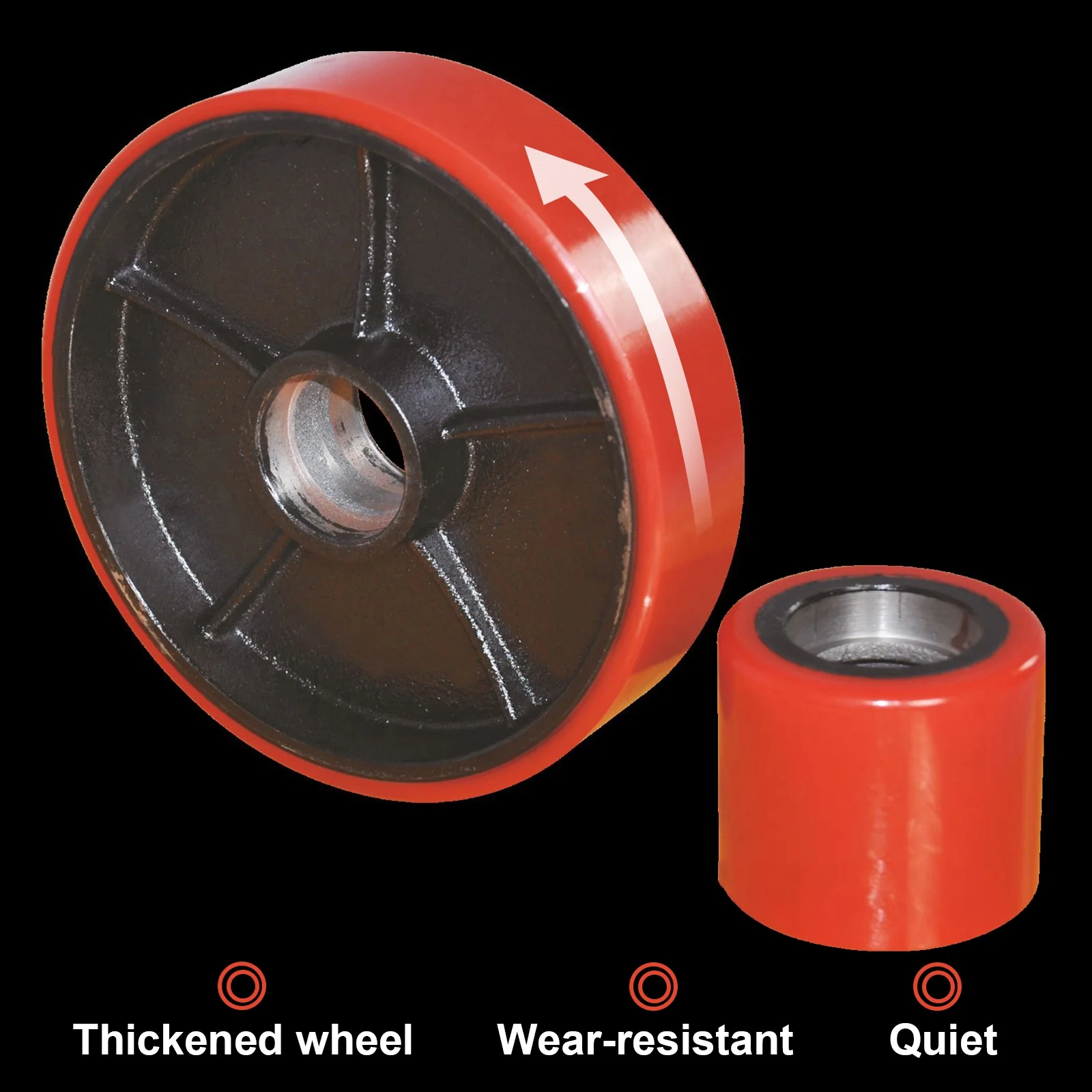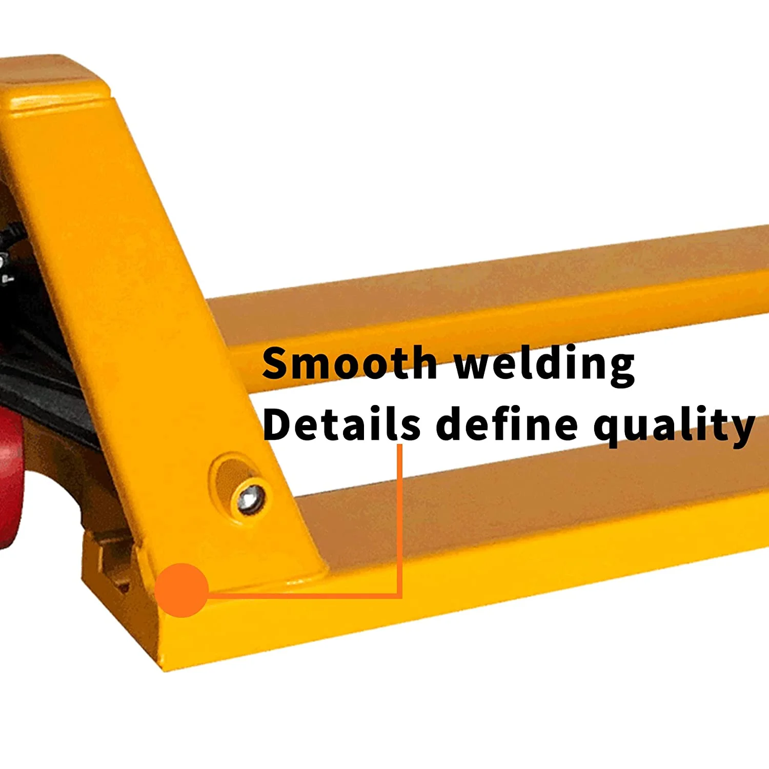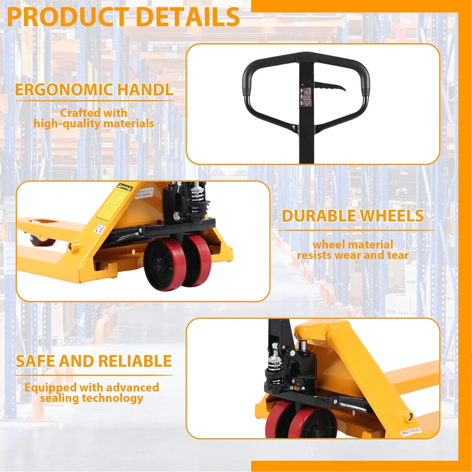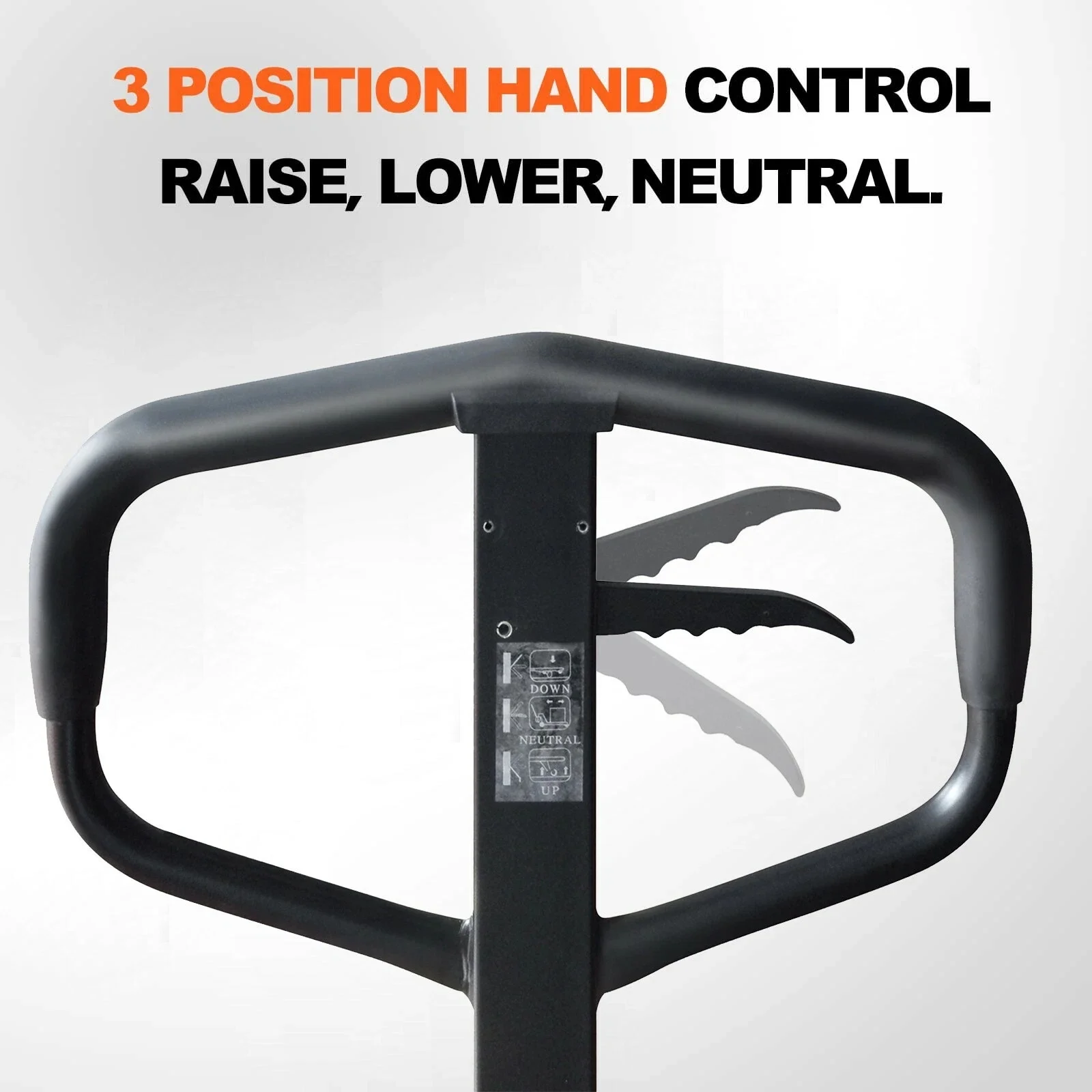 - The hydraulic pallet jack with 3 position hand control-Raise, Lower, Neutral. Rubber handle.