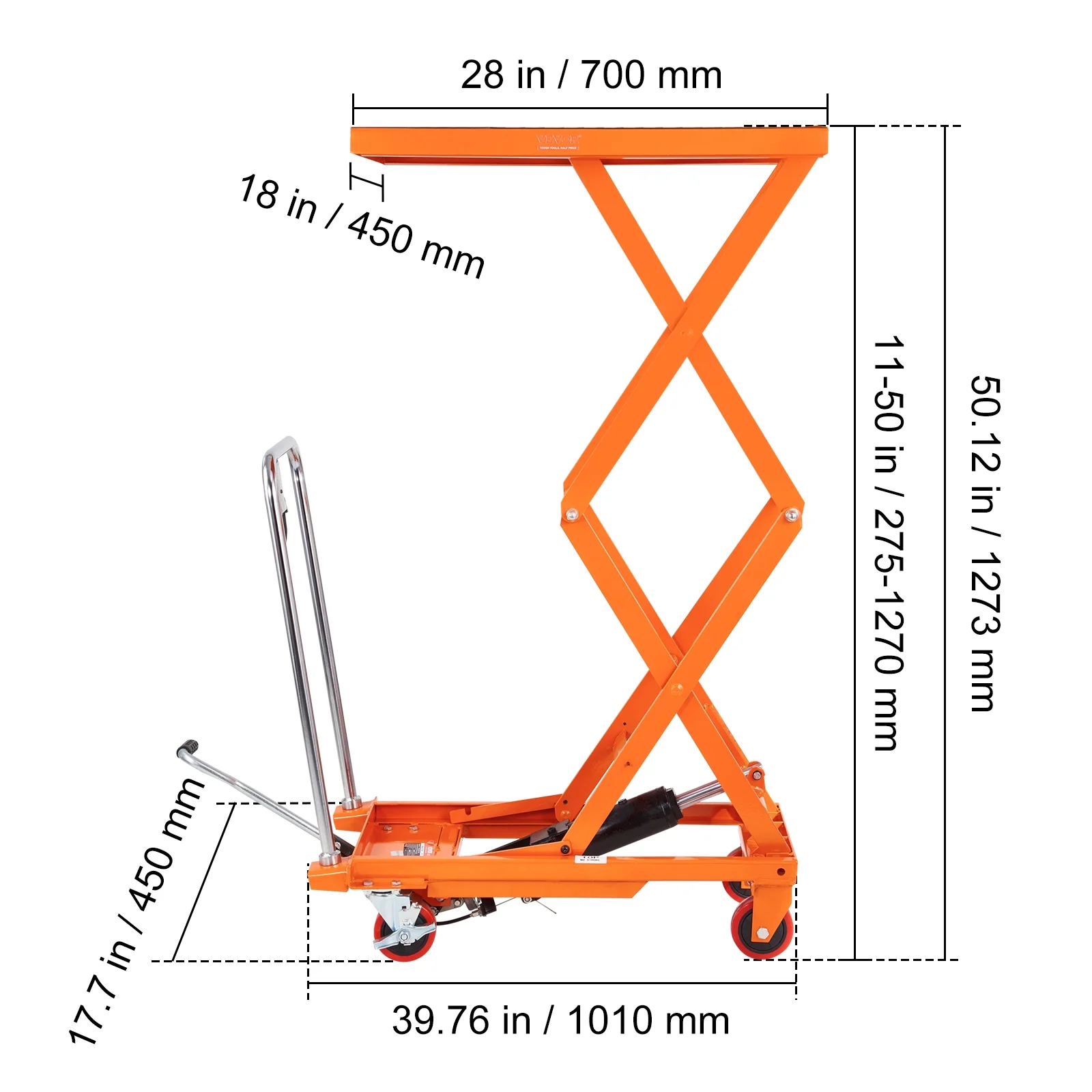 - Secure Design: Our hydraulic table cart incorporates thoughtful security features, including limiter protection to prevent over-lifting. It also features a maintenance/overload protection bar for easy maintenance. For added stability during transport, we provide a rubber non-slip pad that prevents movement and enhances overall stability.
