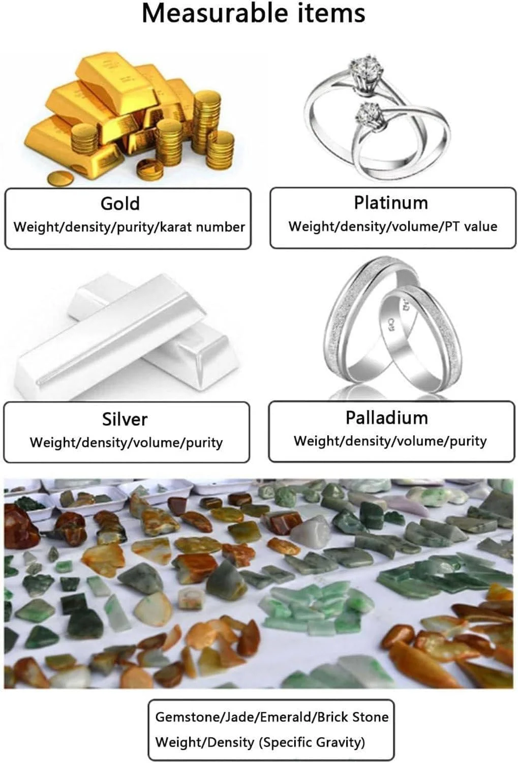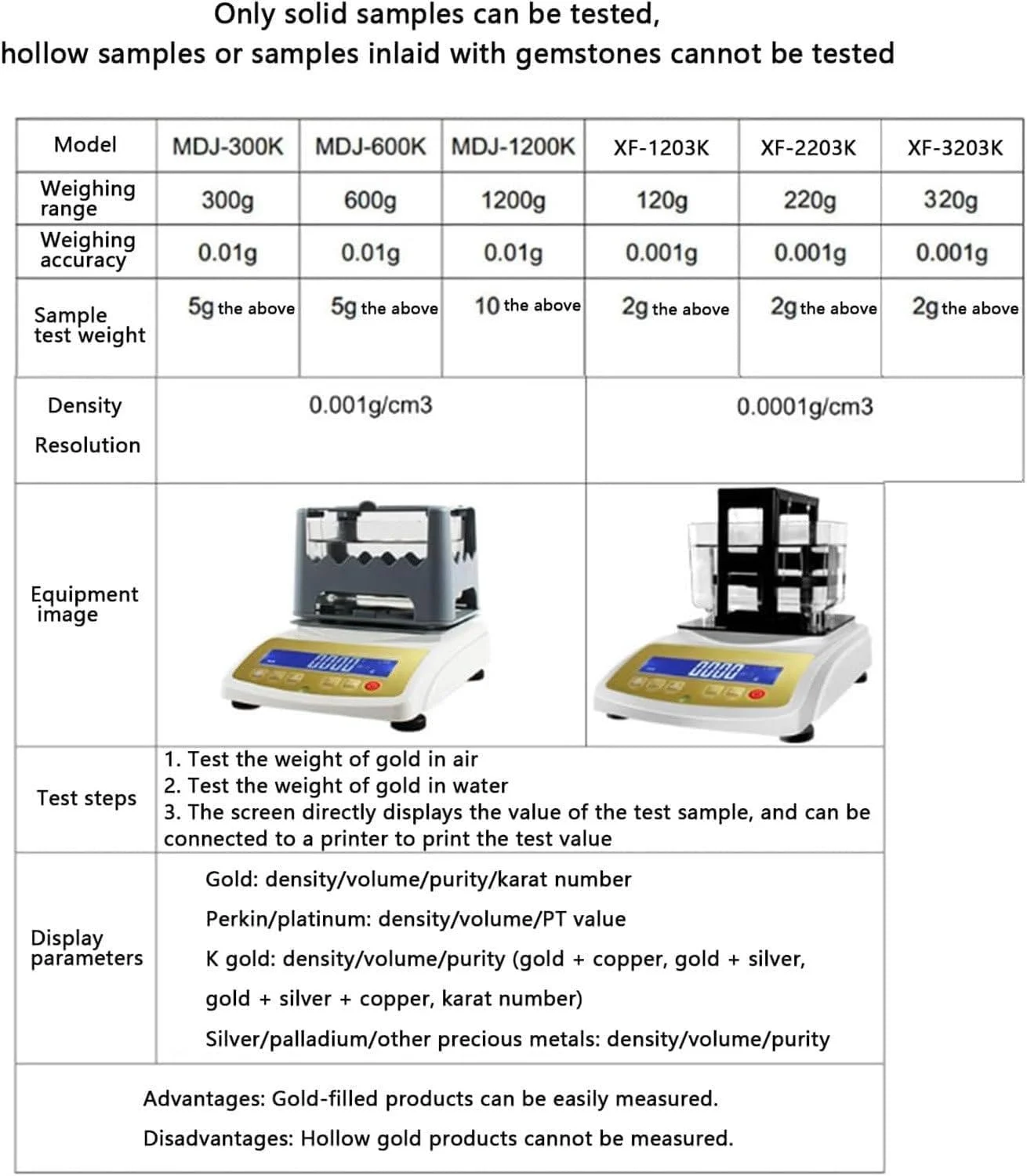 8. Can't test hollow samples and the samples with precious stones; it can be used as general balance.