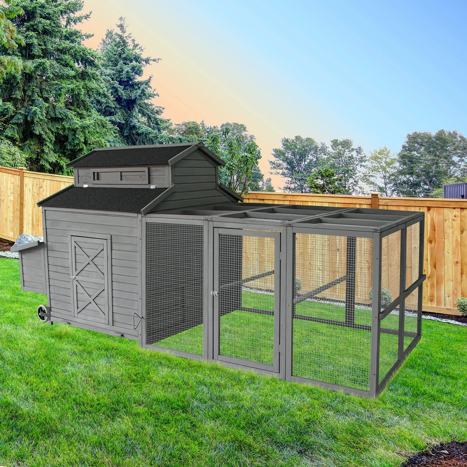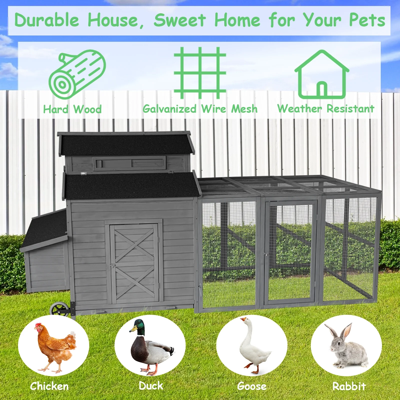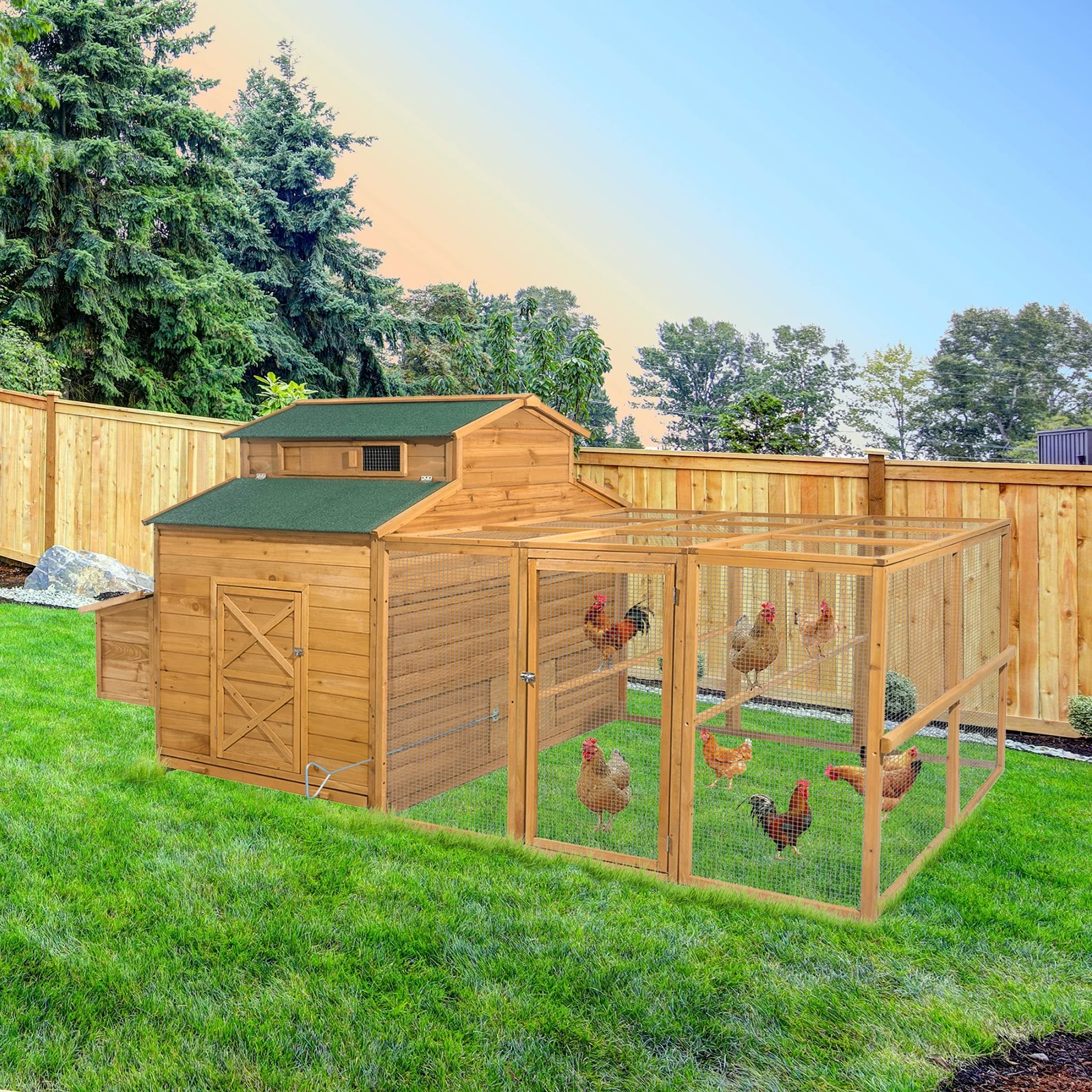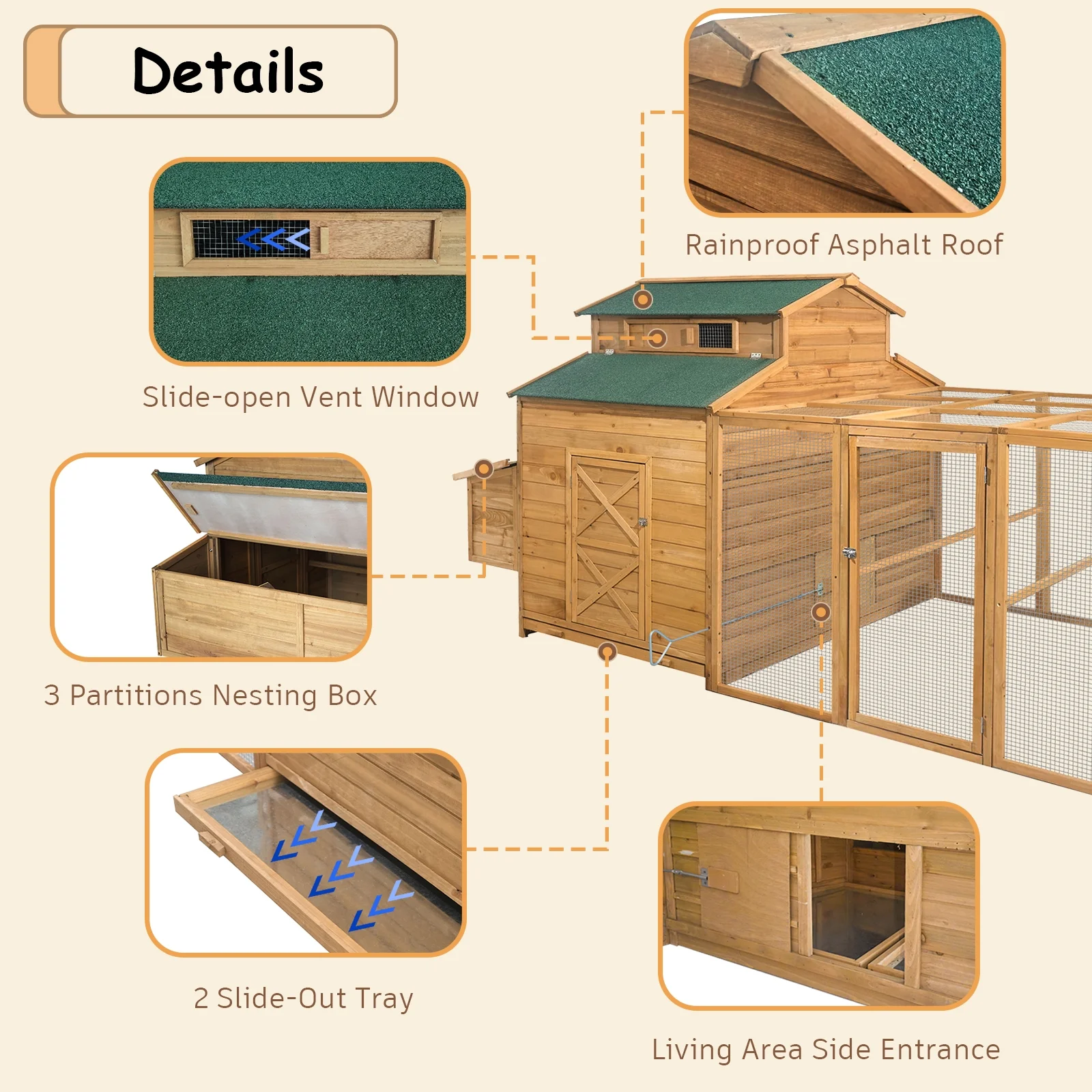 Chicken Coop for 6 - 10 Chickens, 112" Extal Large Chicken Coops, with Chicken Run & Nesting Box & Secure Enclosure, Outdoor Wooden Hen House Hutch for Rabbit, Poultry Pet, Duck