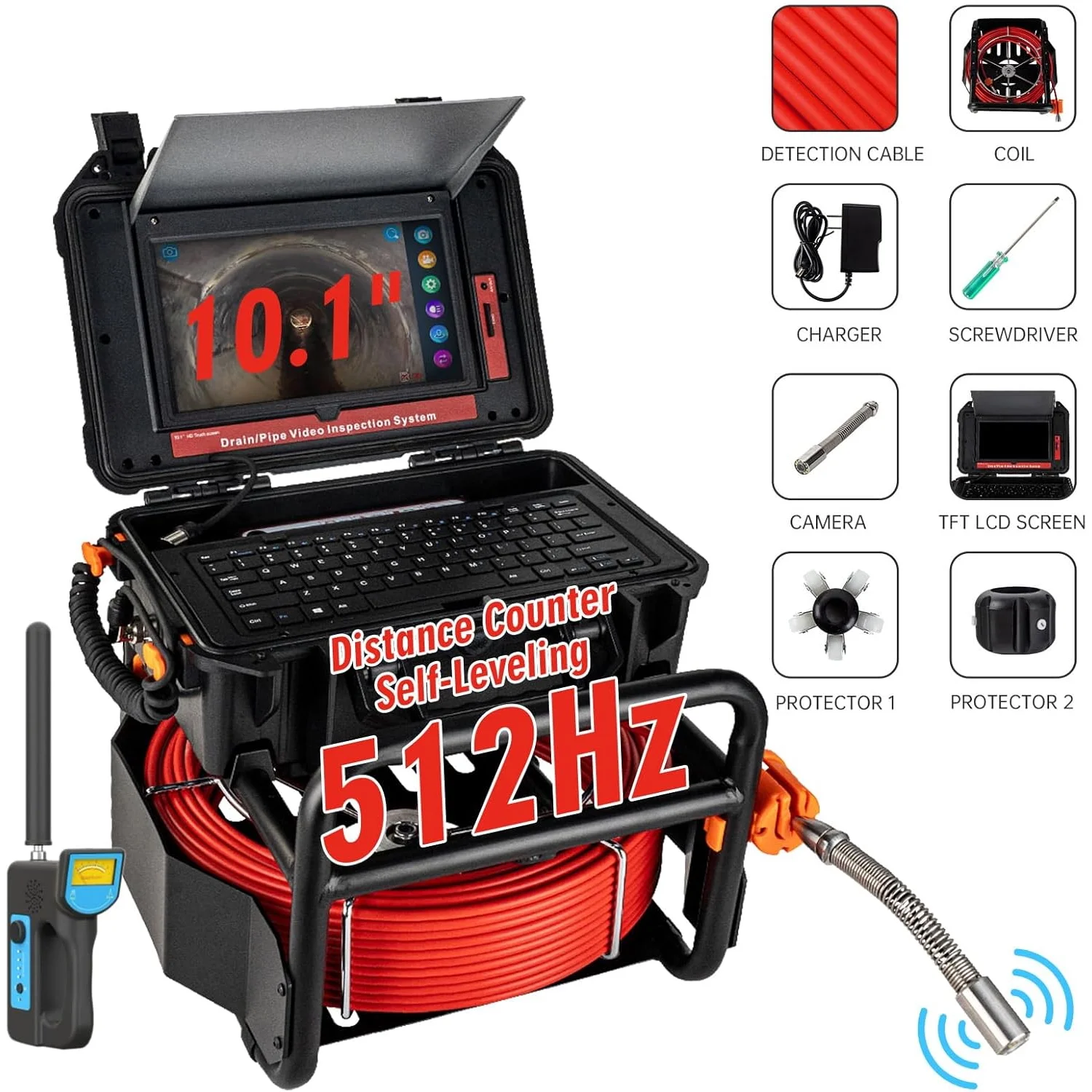 - Sewer Camera with Locator: This advanced sewer camera is equipped with a 512Hz transmitter and receiver for precise locating, making it ideal for pinpointing issues within pipes, sewers, and drains. Constructed with sturdy yet lightweight aluminum housing, it ensures both protection and portability for easy transport.