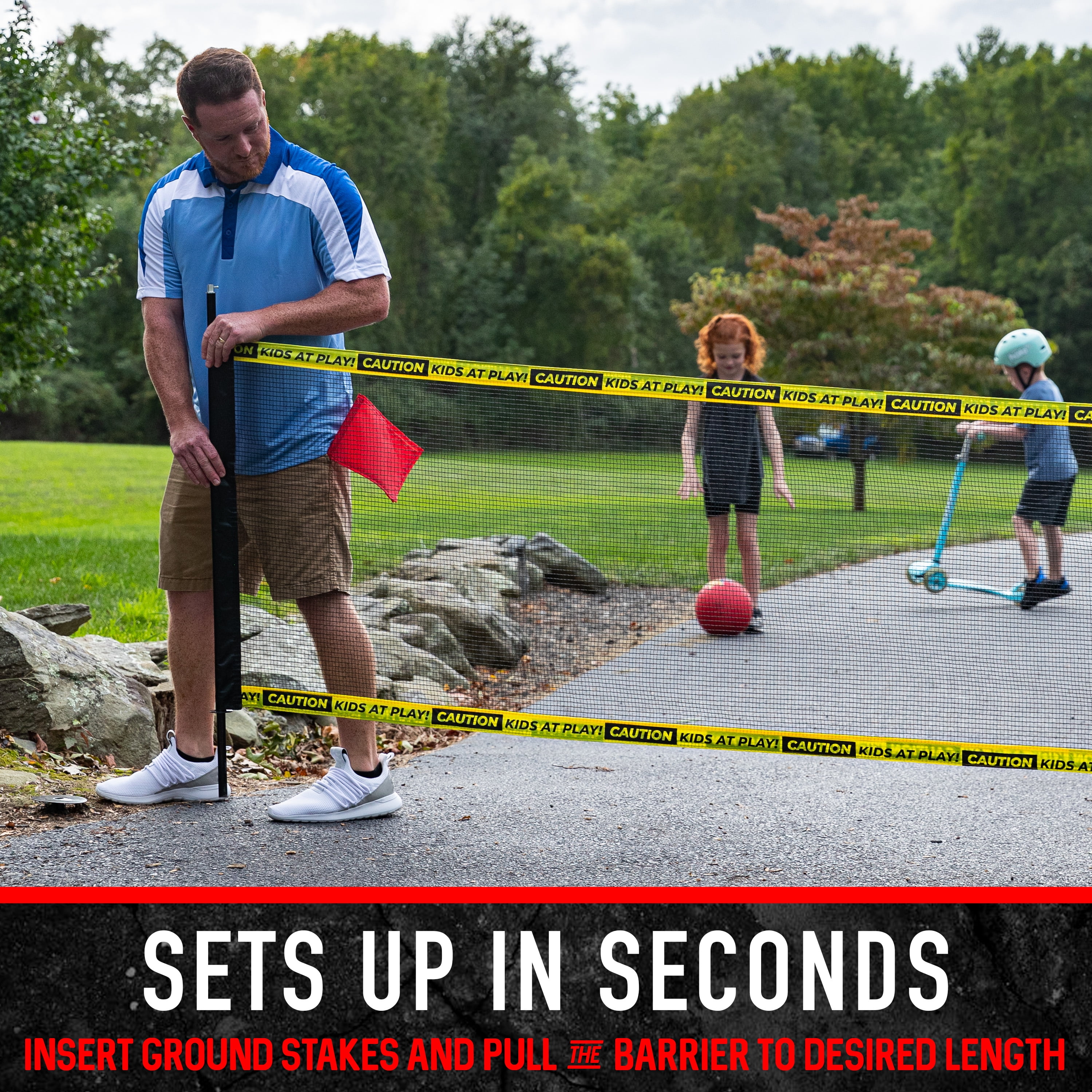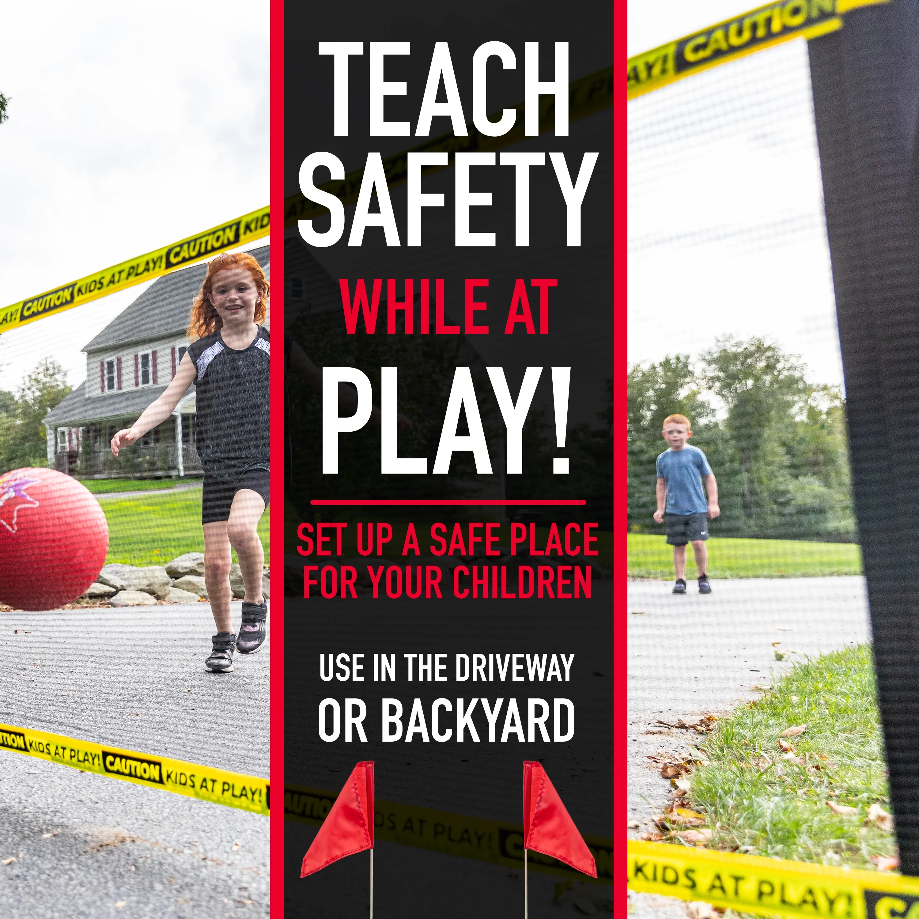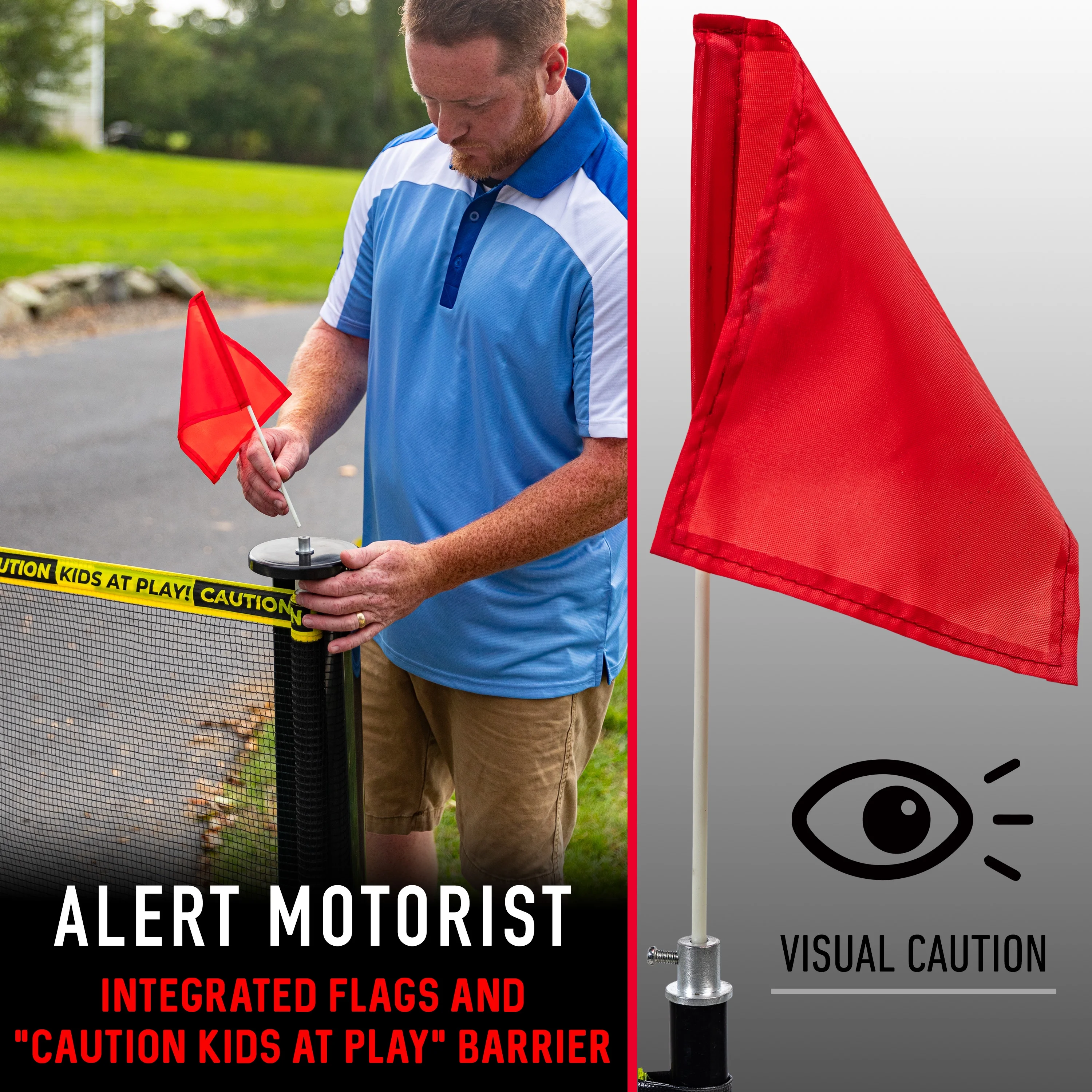 - VISUAL CAUTION: Integrated Flags and "Caution Kids at Play" to alert motorist. This is NOT a gate or a containment system-It is a VISUAL barrier