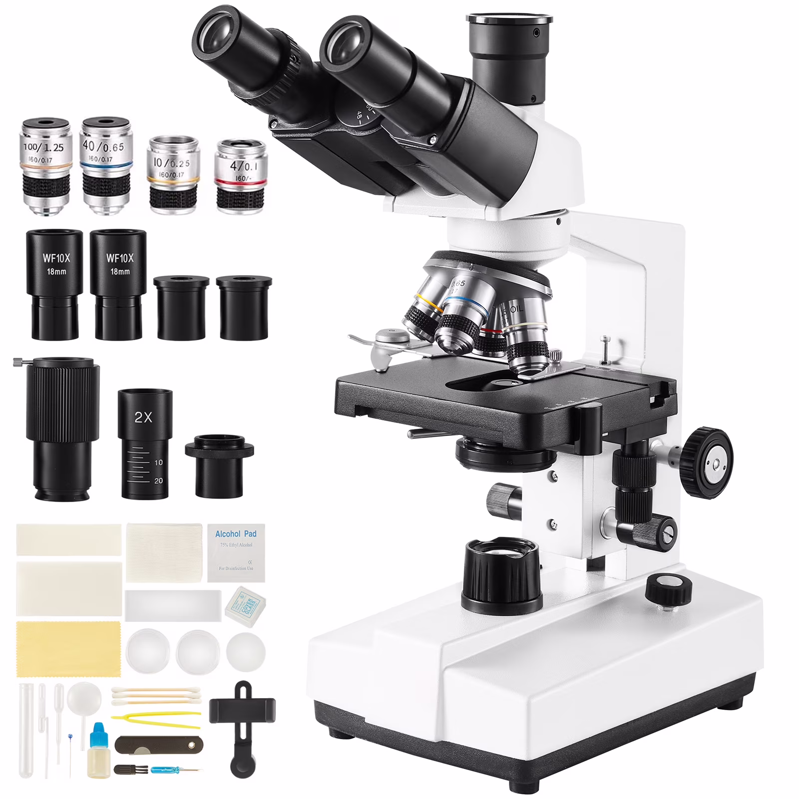 SKYSHALO Trinocular Compound Microscope, Magnification Range 40X - 5000X with Dual - Layer Mechanical Stage, Connectivity Options, LED Light Source, and Included Microscope Slides