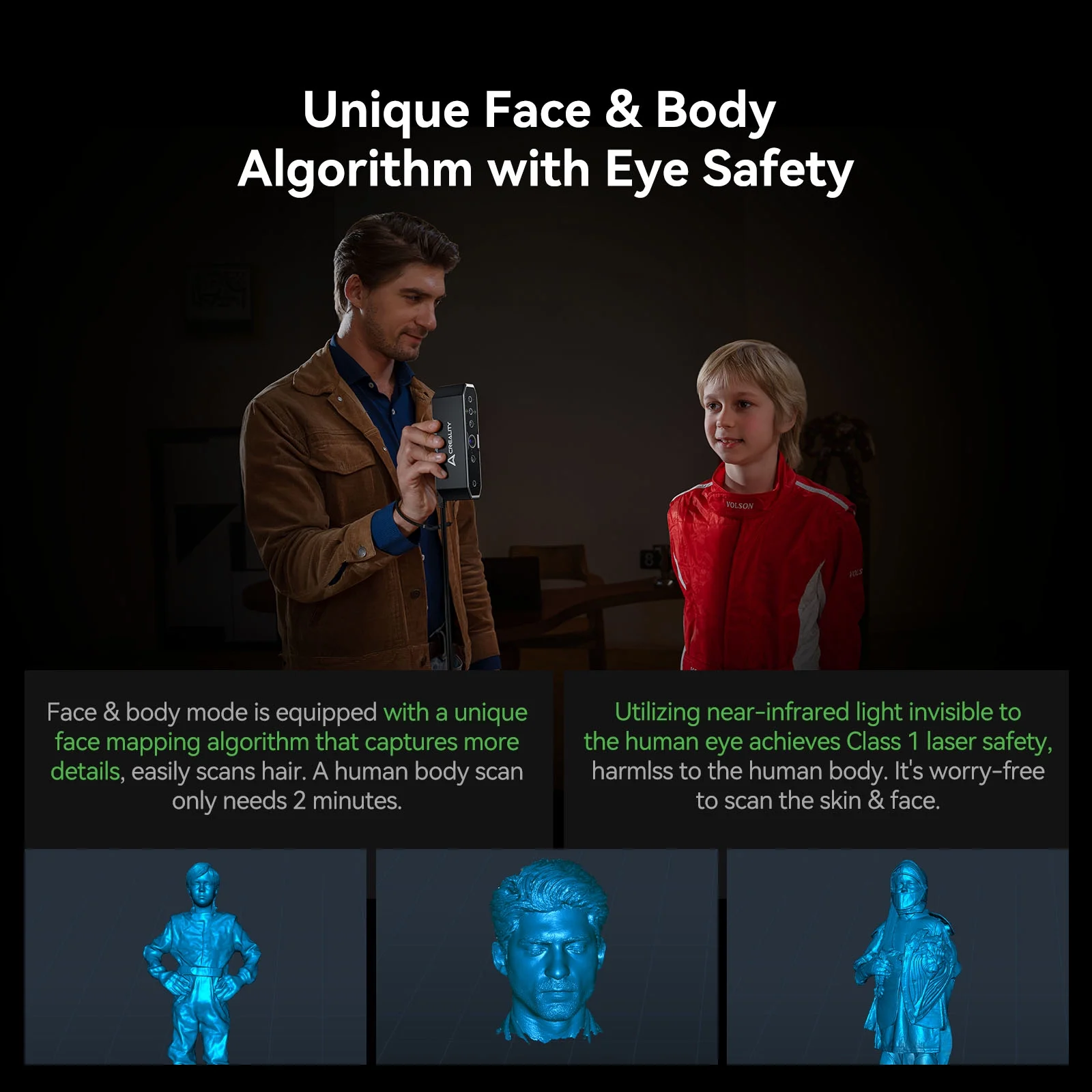 - Various Size OptionsInnovative Four-lens Stereo Vision. Proficient in handling both large and small scans. Two sets of dual lenses, catering to details and various sizes�� A set of long-focal dual lenses for scanning small objects, providing richer details; a set of short-focal dual lenses for scanning large objects, covering a wider range of sizes.