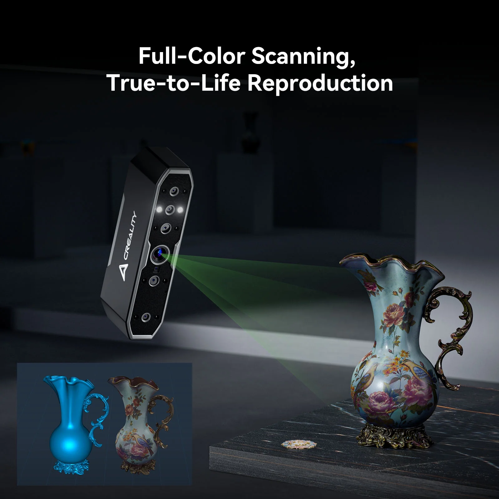 - Full-Color Scanning, True-to-Life Reproduction24-bit Full-Color ScanningEquipped with a million-pixel full-color RGB camera and an exclusive color mapping algorithm, ensuring exceptional capture of model details and colors.
