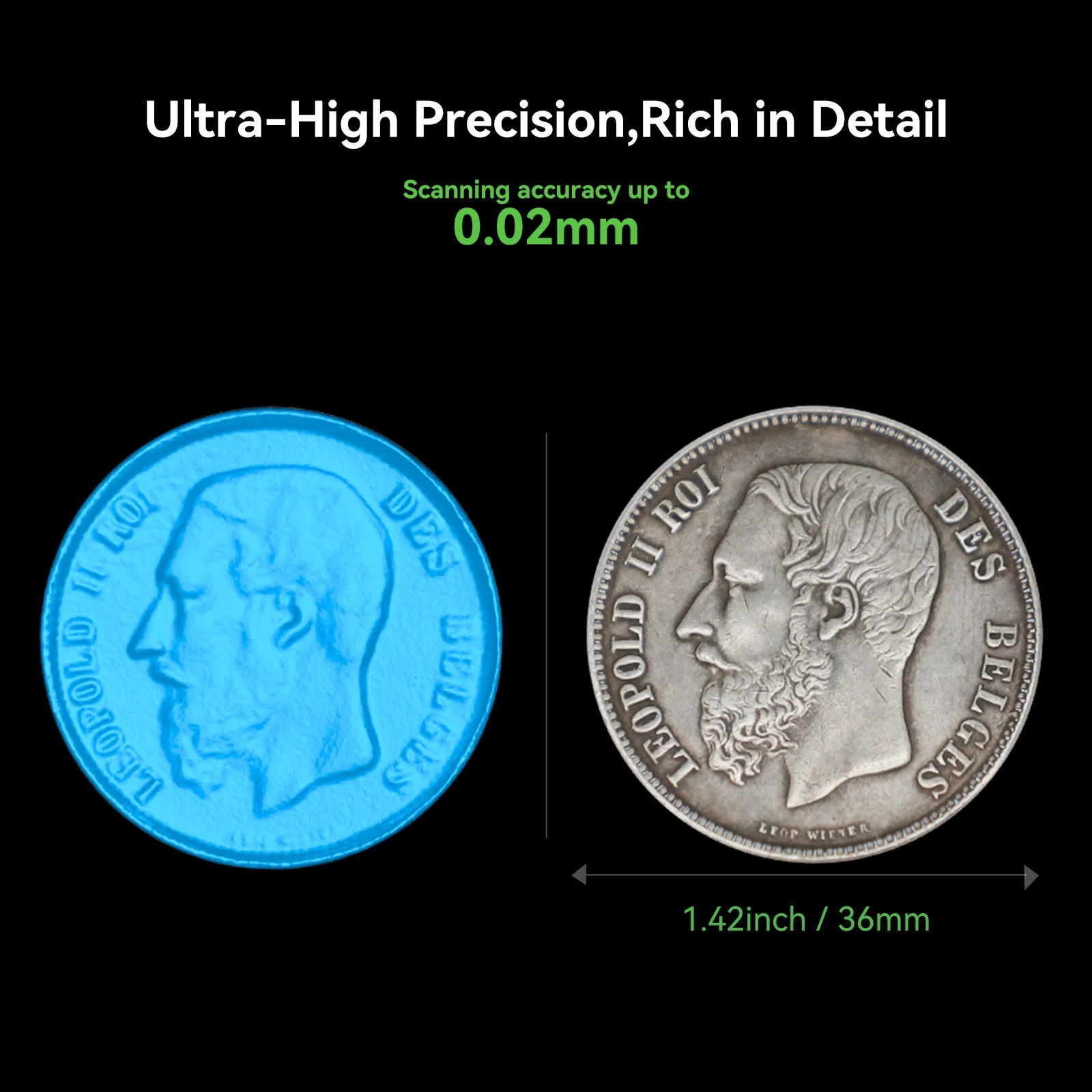 - Ultra-High Precision, Rich in DetailOtter adopts the state-of-the-art structure-light stereo-matching algorithm and optical design to faithfully reproduce the authentic texture and contours of objects. The scanning precision up to 0.02mm ensures every detail is sharp and clear.