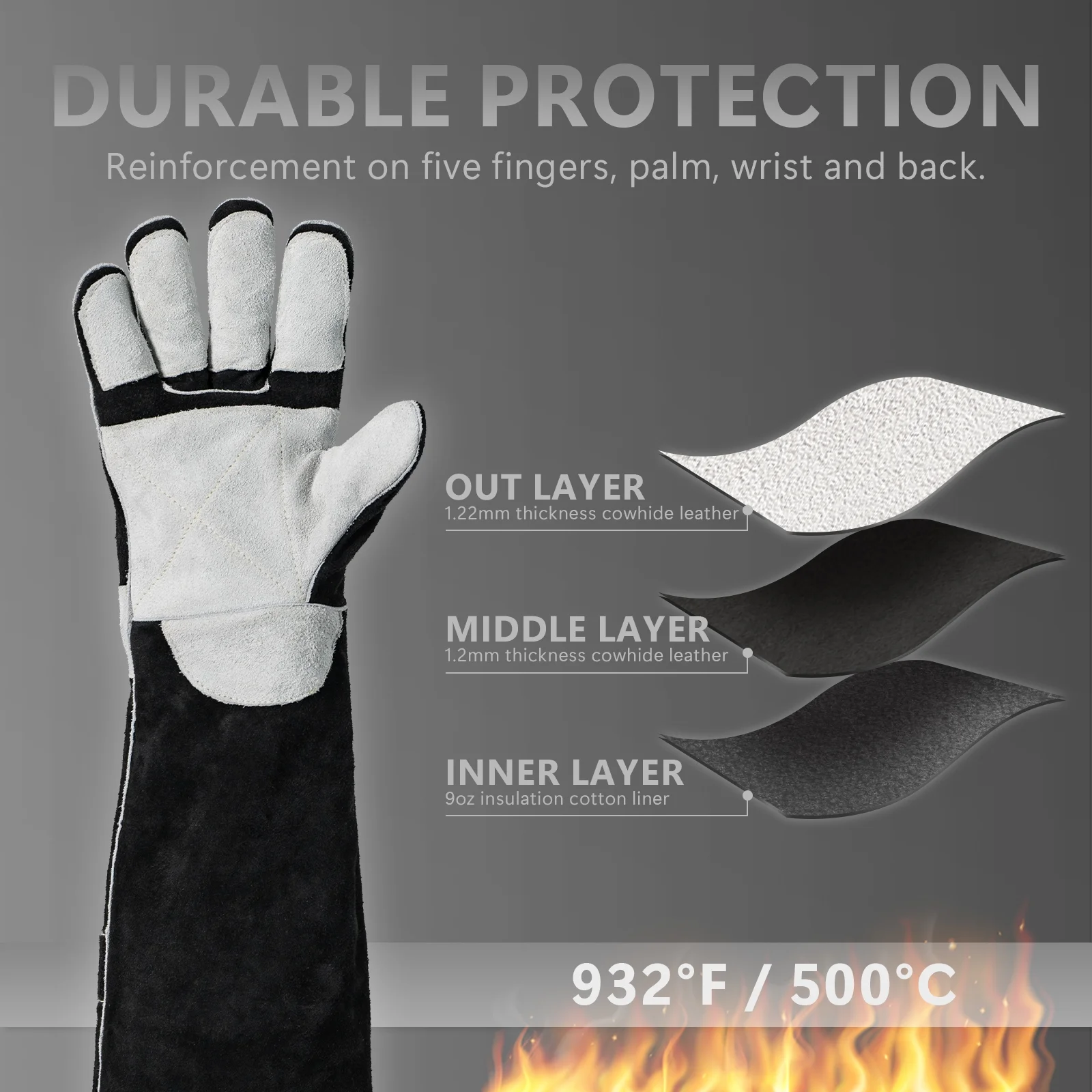 - Includes a pair of welding gloves with double-layer construction and reinforcement for added protection