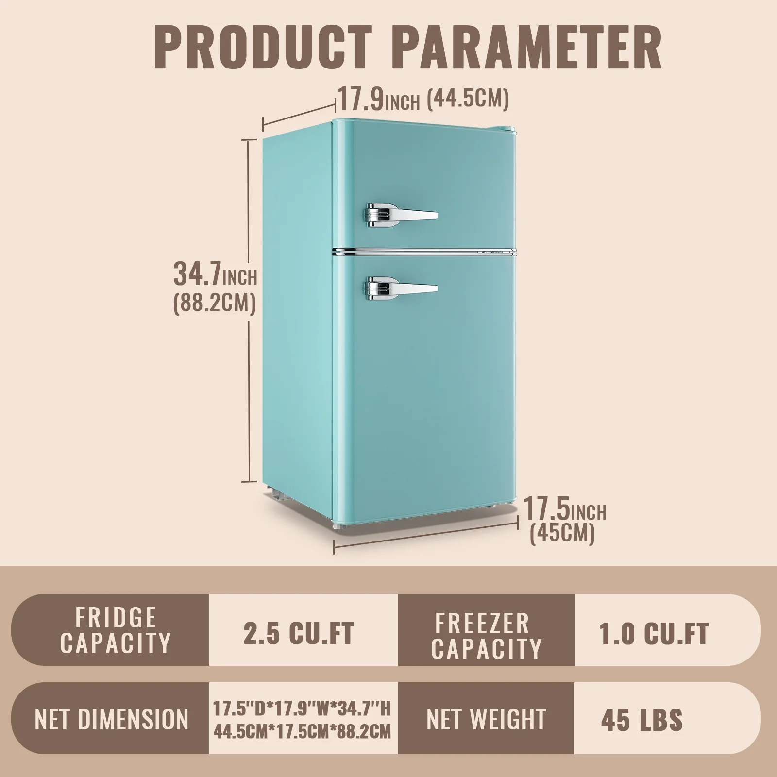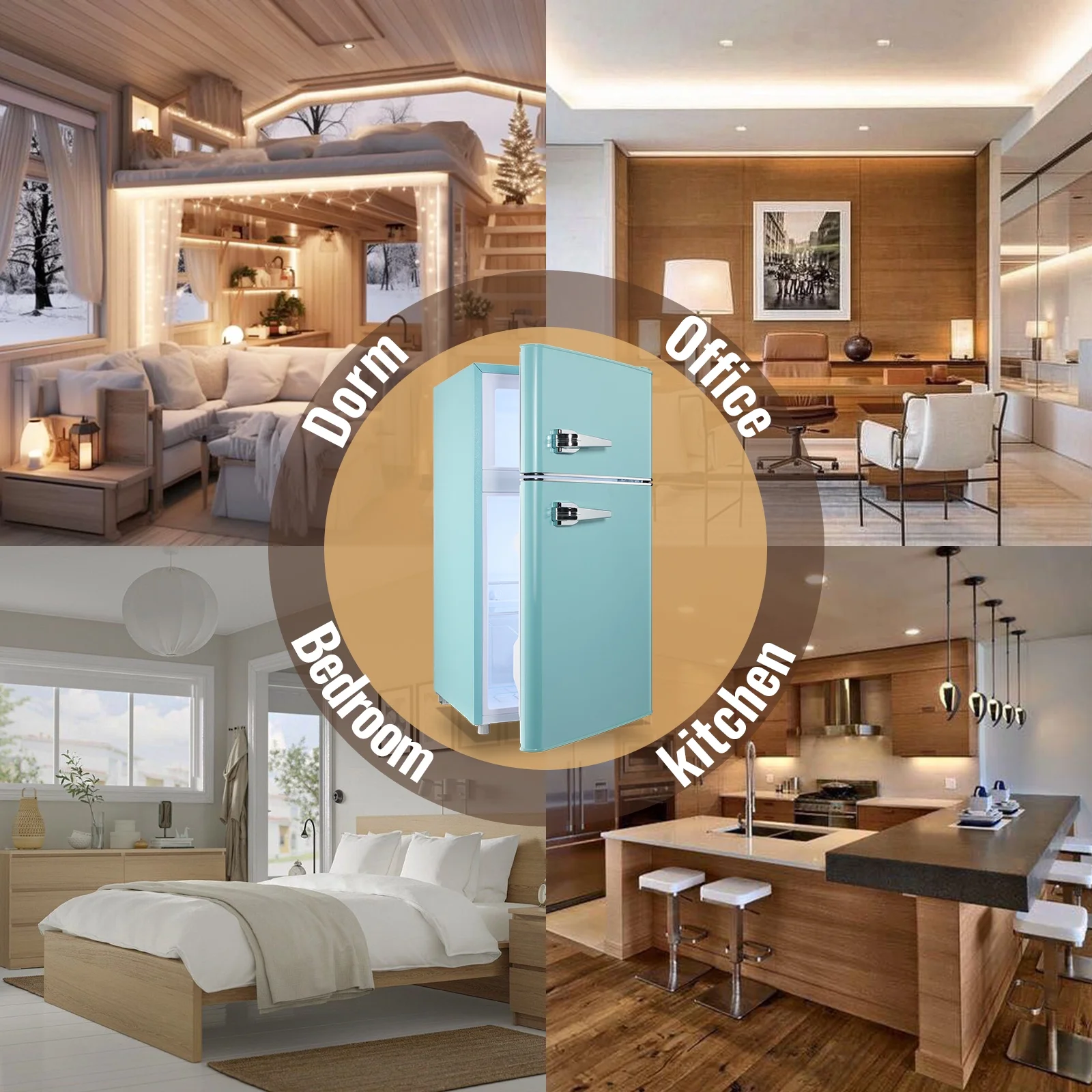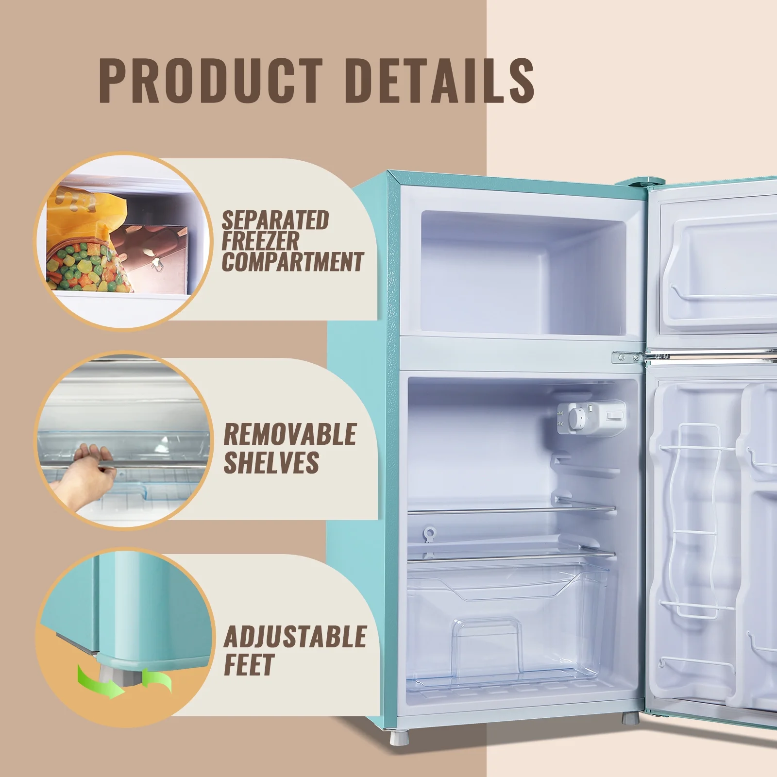 - Elegant Appearance & Thoughtful Little Designs: Retro classic styling that never goes out of style, multiple colors for you to choose from. Our new refrigerator has small wheels, making it easier to move. Internal LED light, open the refrigerator door and the light will immediately light up.