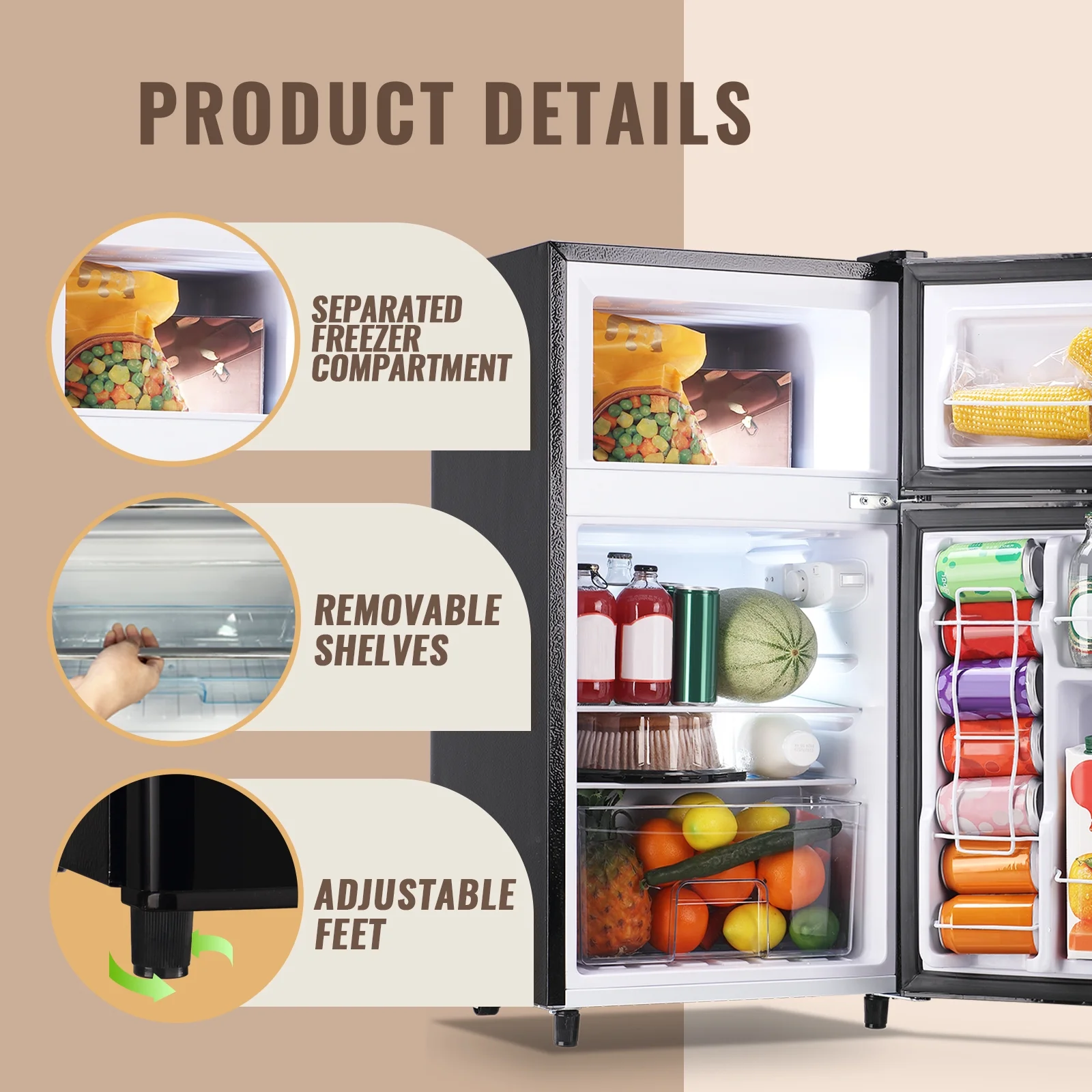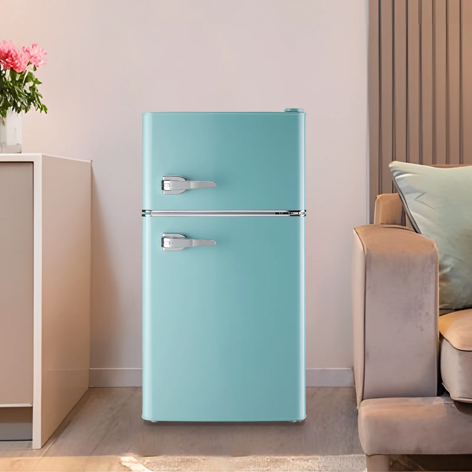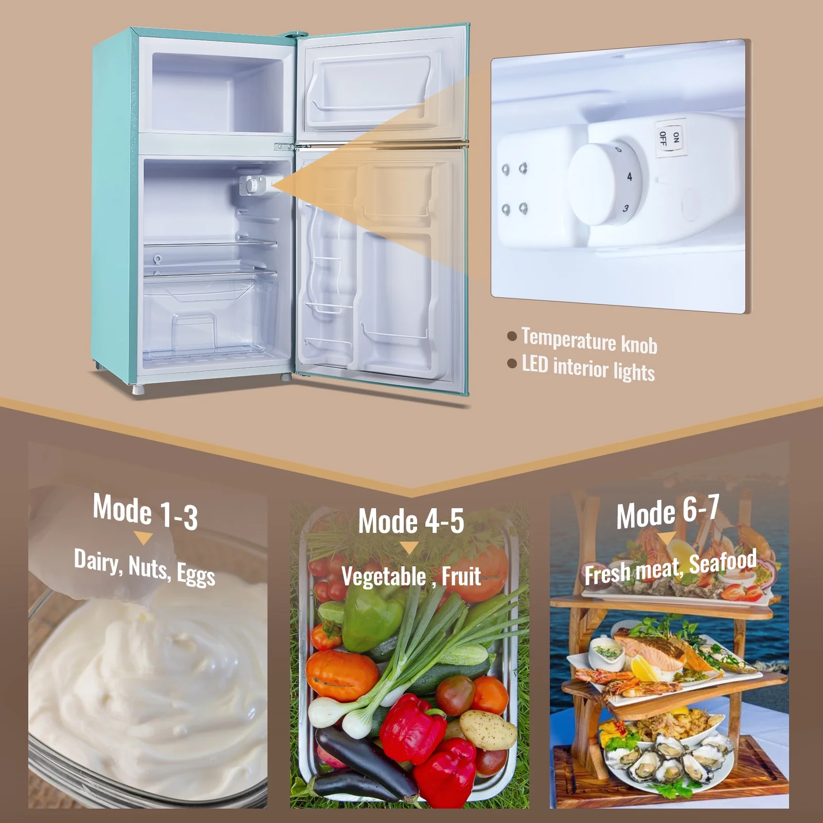 - Elegant Appearance & Thoughtful Little Designs: Retro classic styling that never goes out of style, multiple colors for you to choose from. Our new refrigerator has small wheels, making it easier to move. Internal LED light, open the refrigerator door and the light will immediately light up.