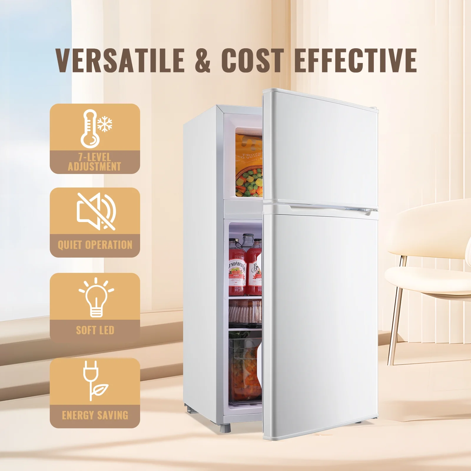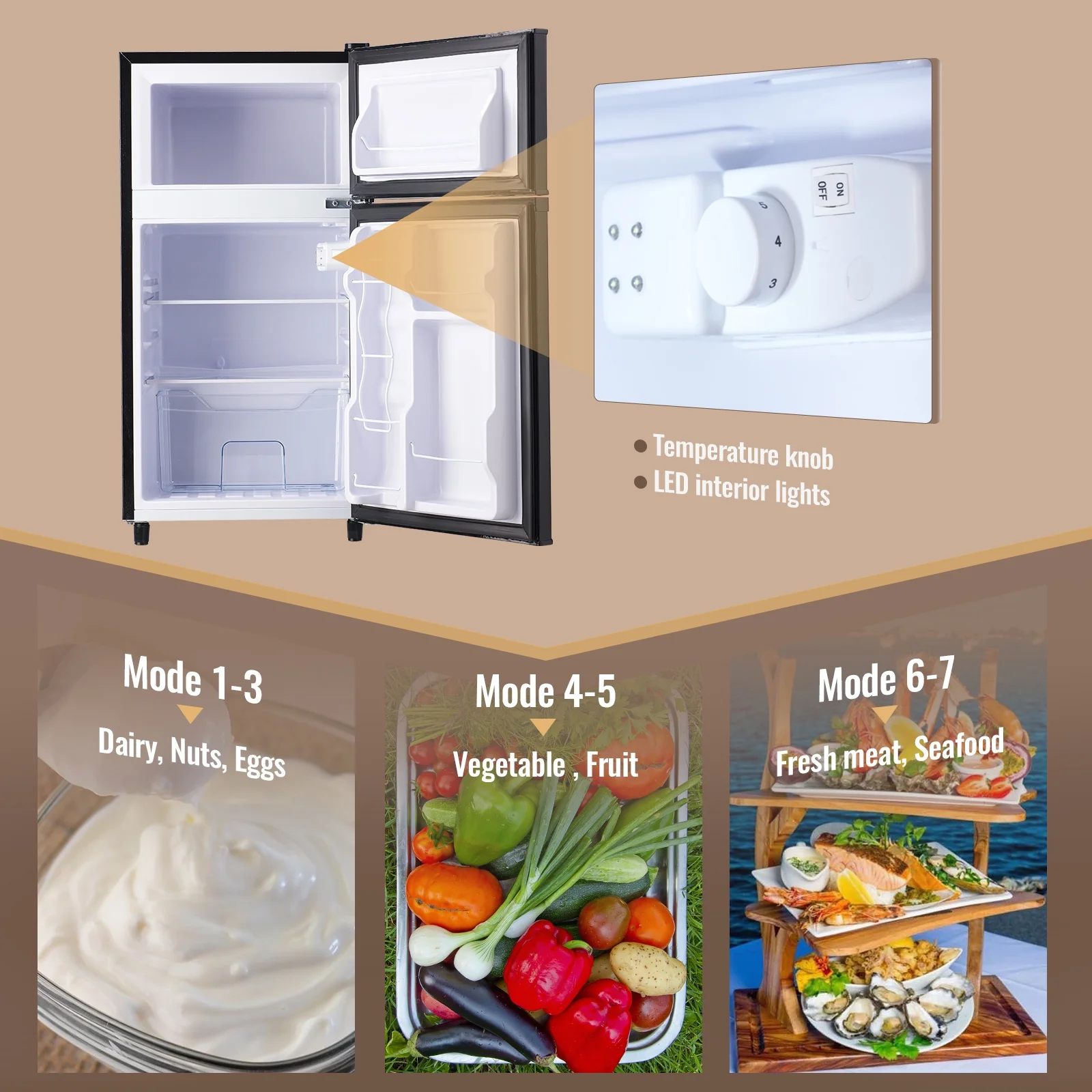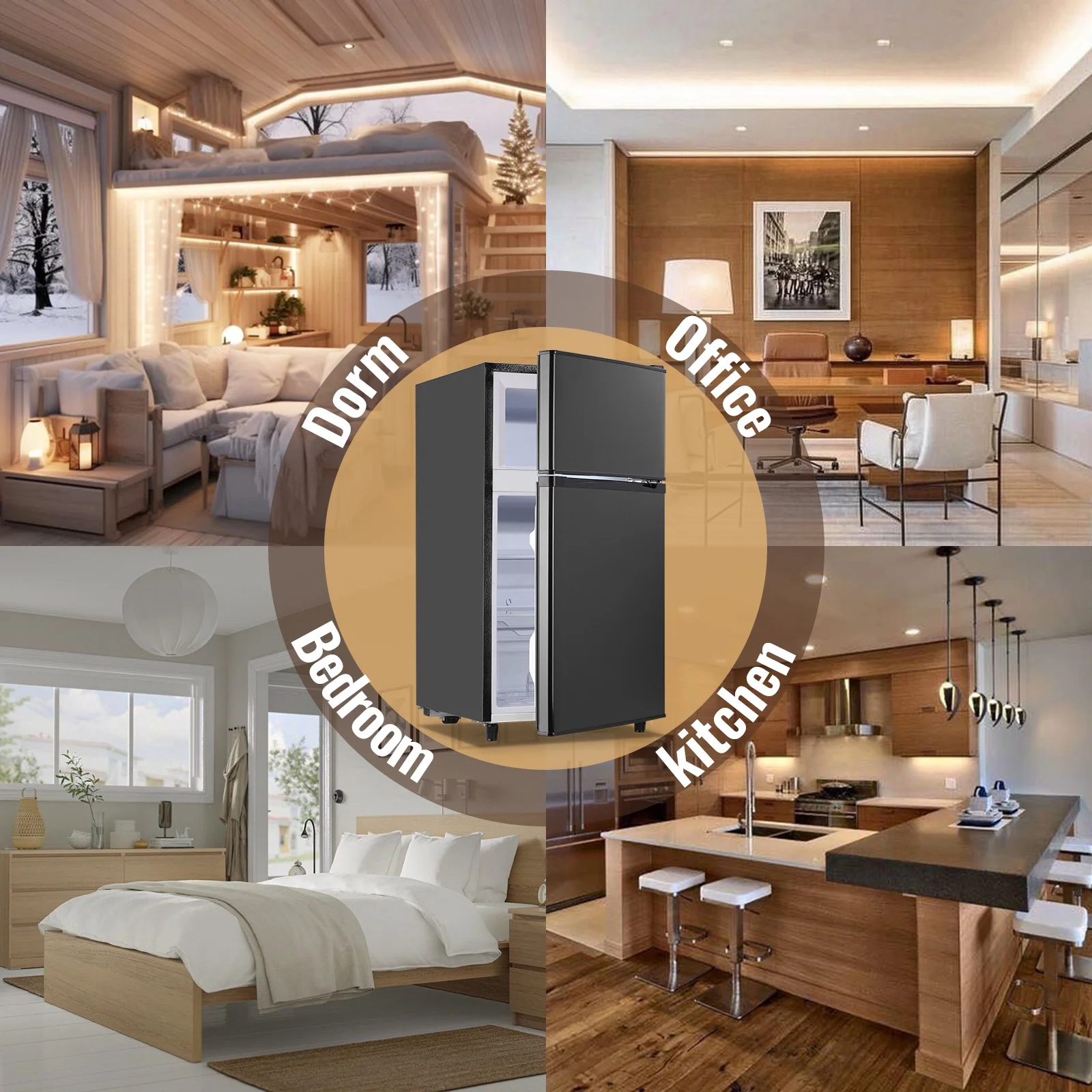 - 2 Independent Space & Easily Adjustable Temperature: Two spaces are more convenient, top freezer temperature range -0.4 to 32�H, Keeping food is very reassuring, the temperature range of the refrigerator at the bottom is 32 to 50�H, keeping vegetables and fruits fresh is reassuring.