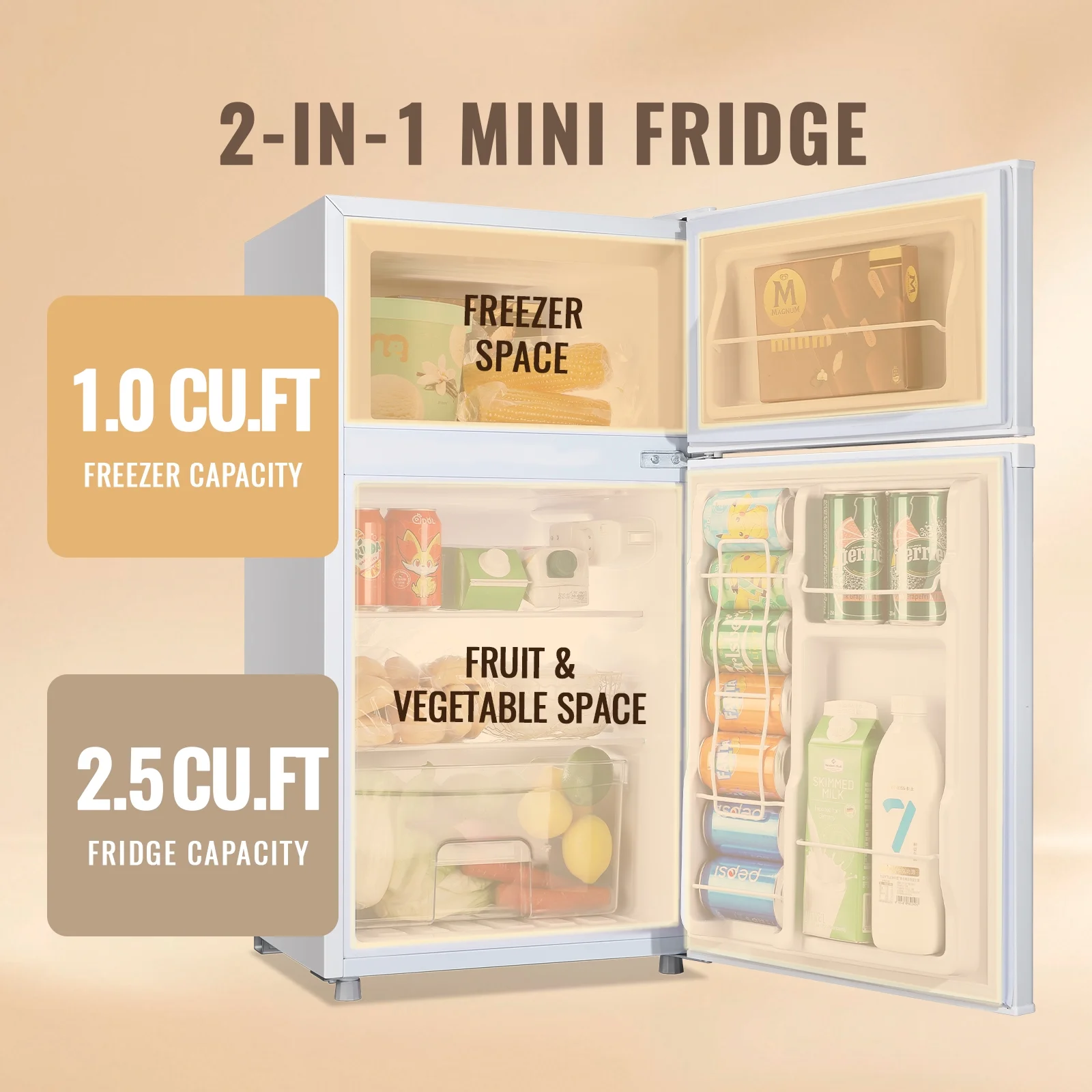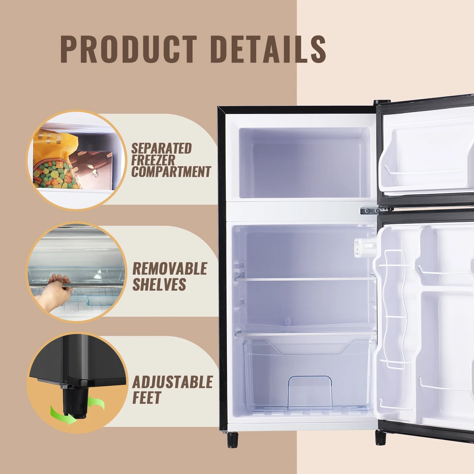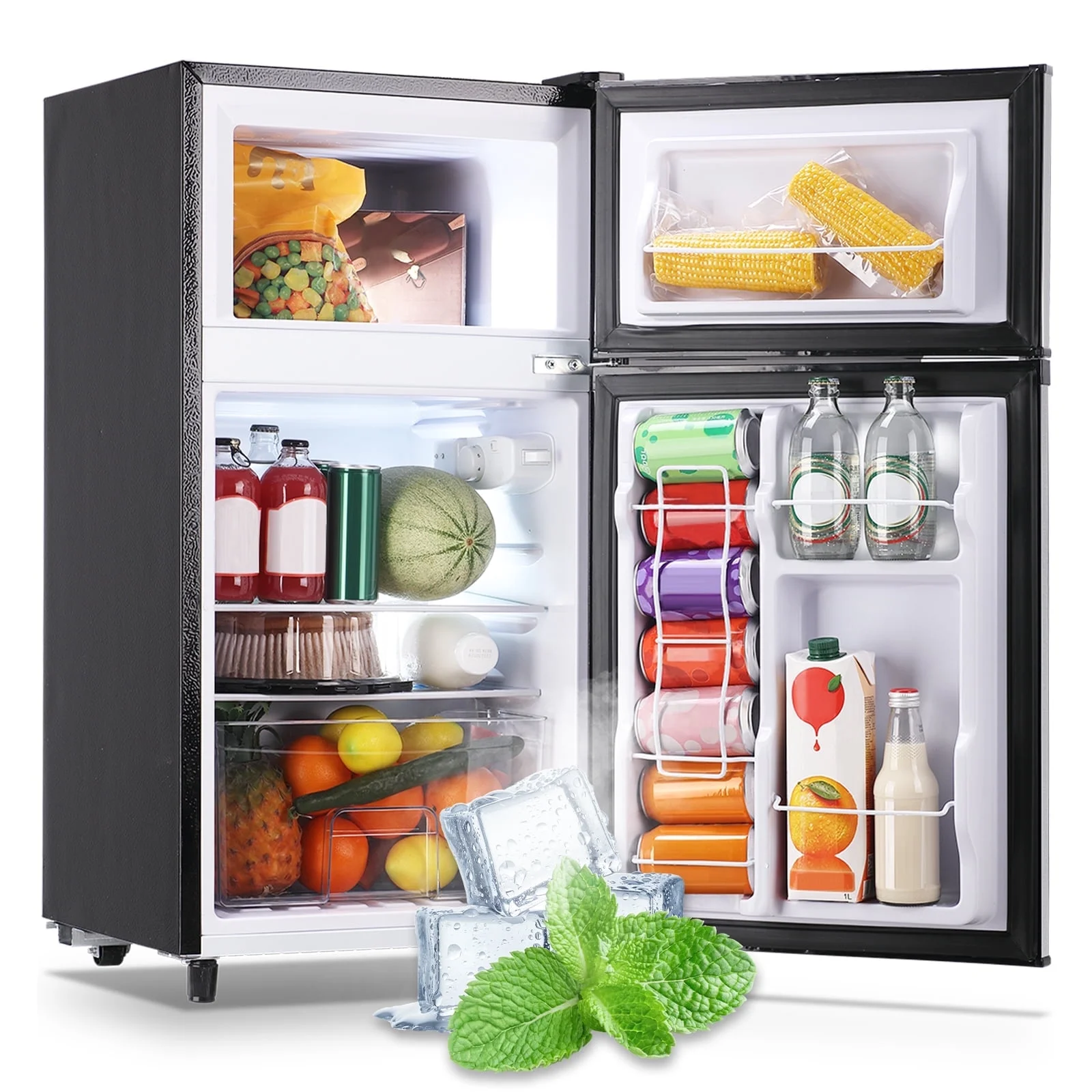 - 2 Independent Space & Easily Adjustable Temperature: Two spaces are more convenient, top freezer temperature range -0.4 to 32�H, Keeping food is very reassuring, the temperature range of the refrigerator at the bottom is 32 to 50�H, keeping vegetables and fruits fresh is reassuring.