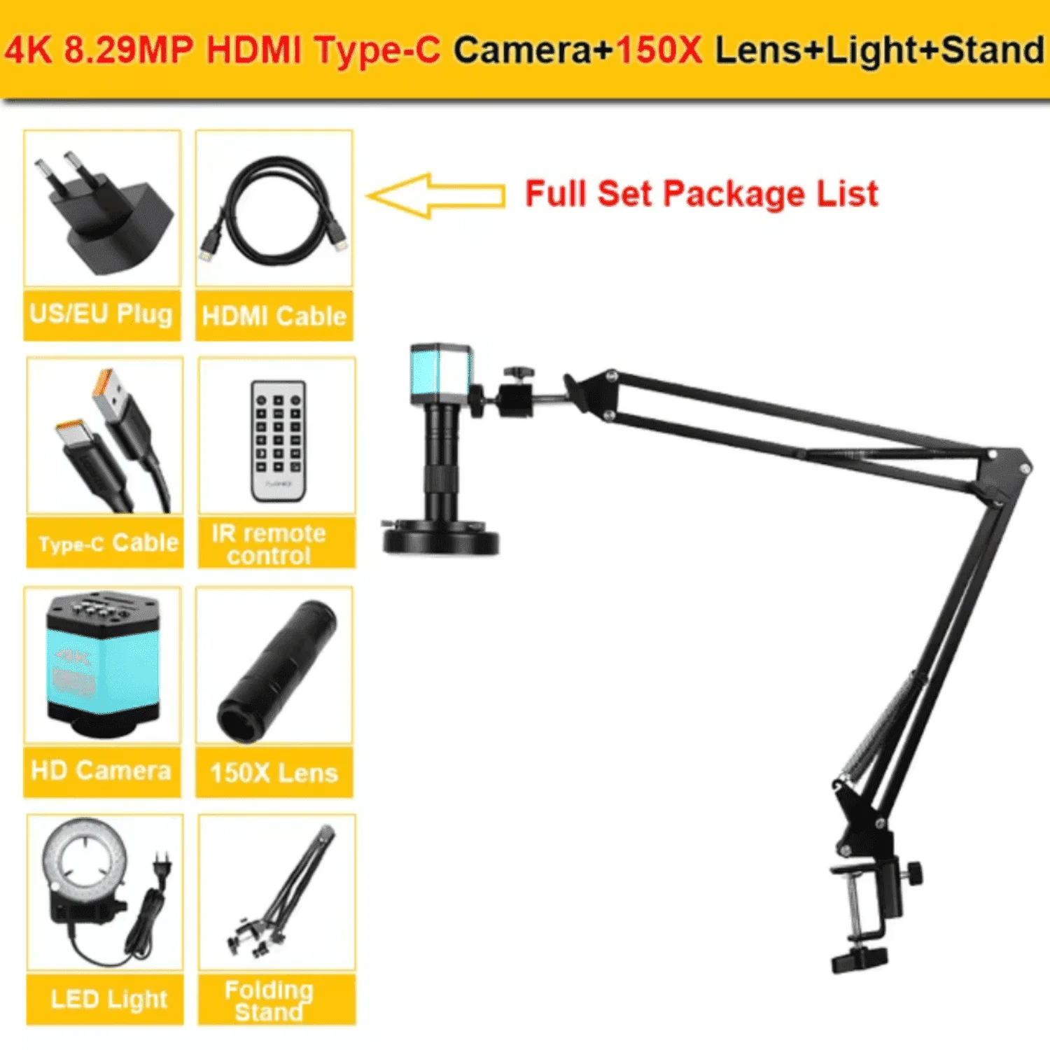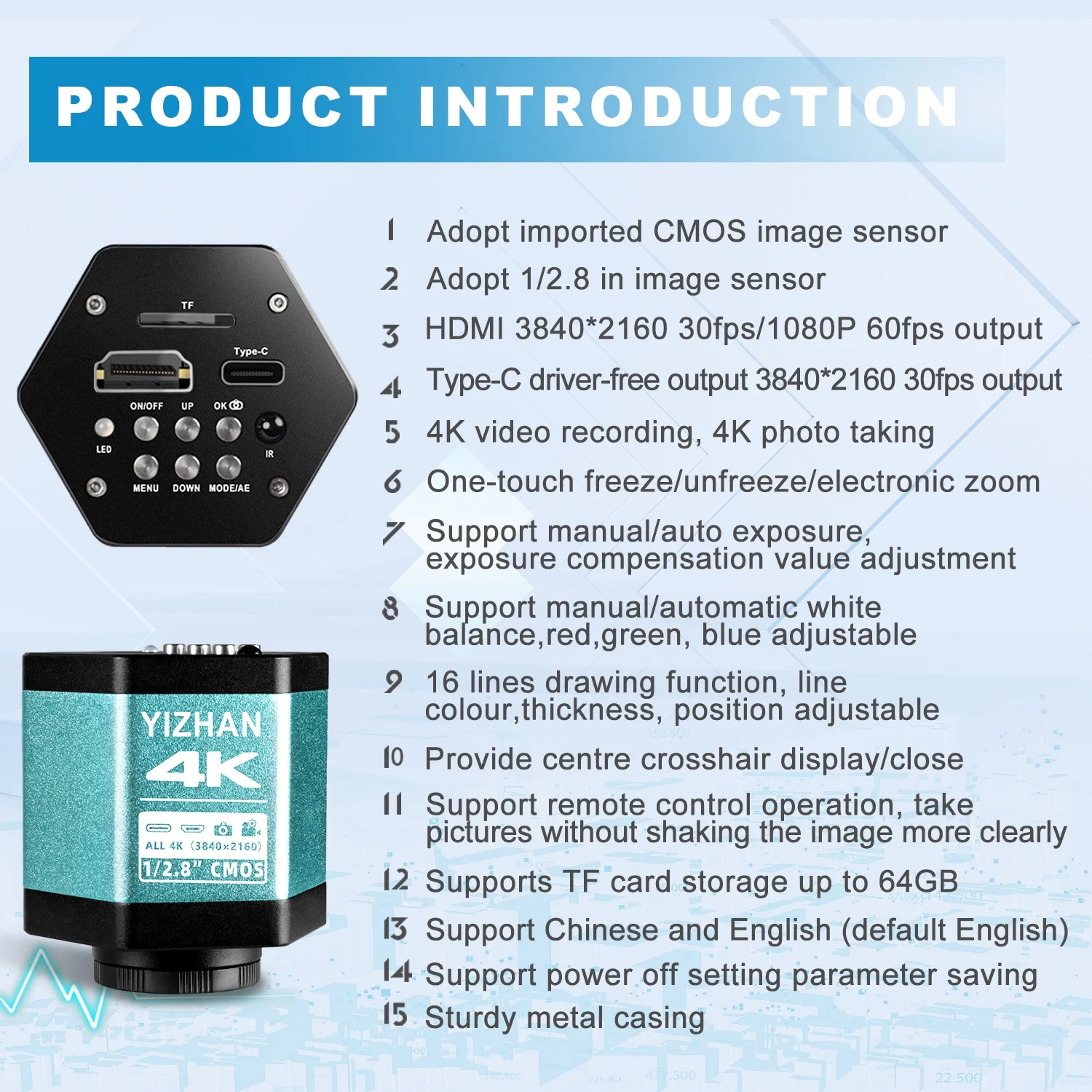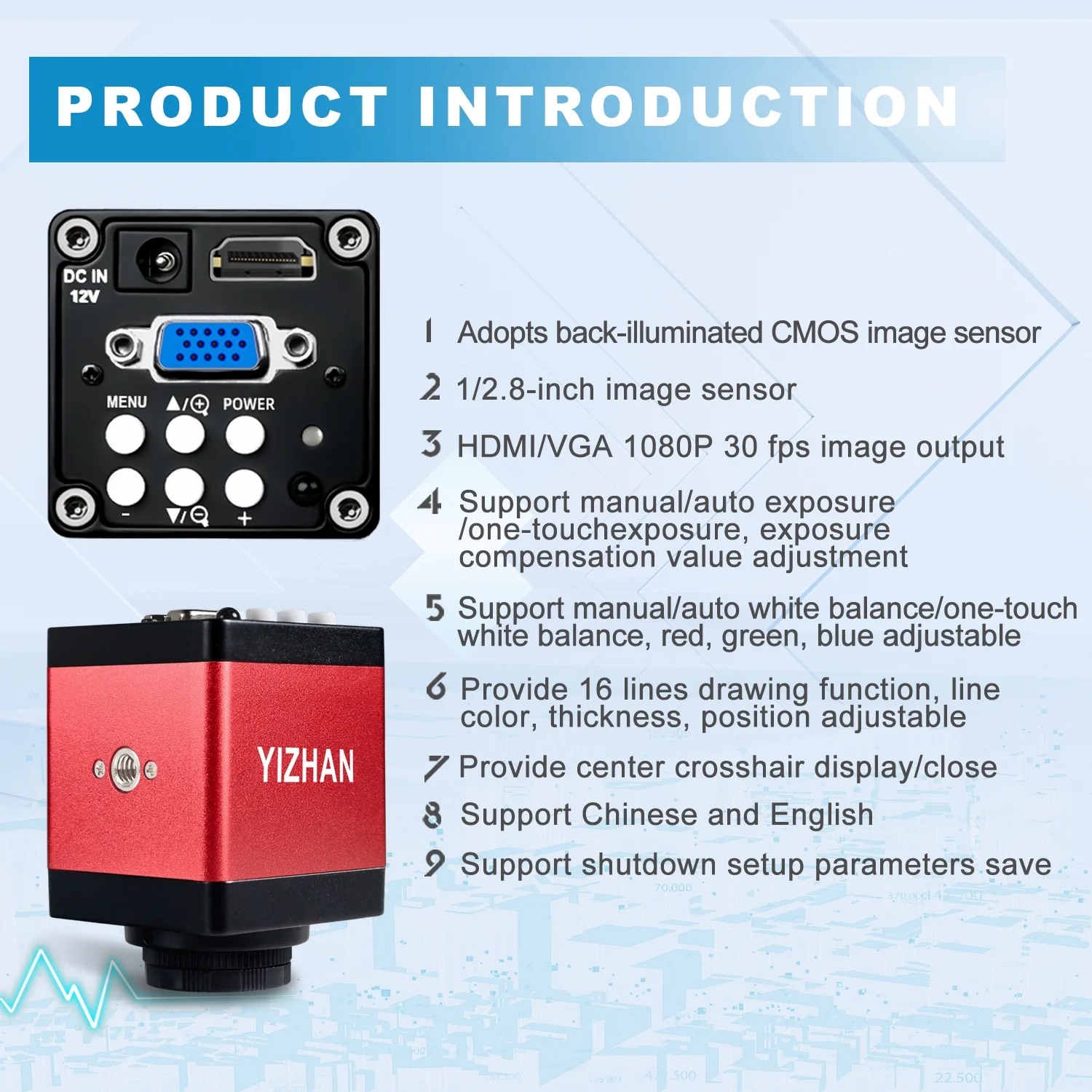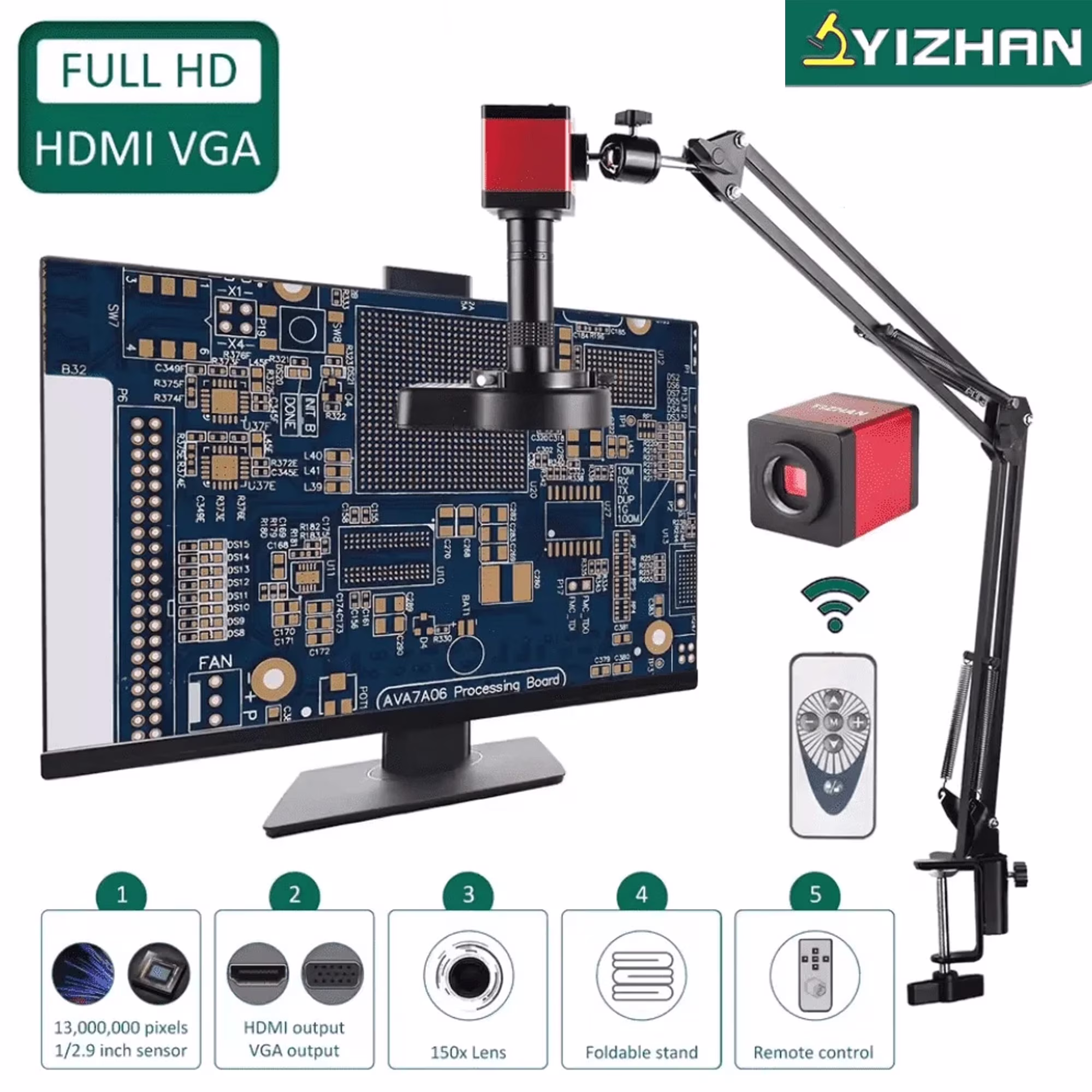 YIZHAN HD Digital Microscope with 1080P resolution and 150X zoom is perfect for adults in industrial inspection, PCB repair, jewelry identification, and precision tasks. Featuring HDMI & VGA outputs, adjustable bracket, and 56 LED lights, it��s easy to use and widely applied in electronics repair, textile inspection, biology, and more. A reliable tool for professionals and hobbyists.