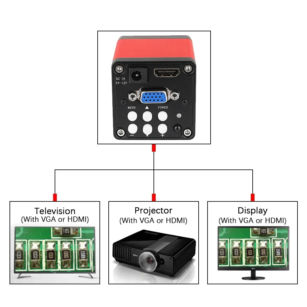 - ?��13 Megapixel 1080P Microscope Camera��: The camera of digital microscope system adopts imported sensor. The industrial microscope can output 1080P HD images via HDMI and VGA.