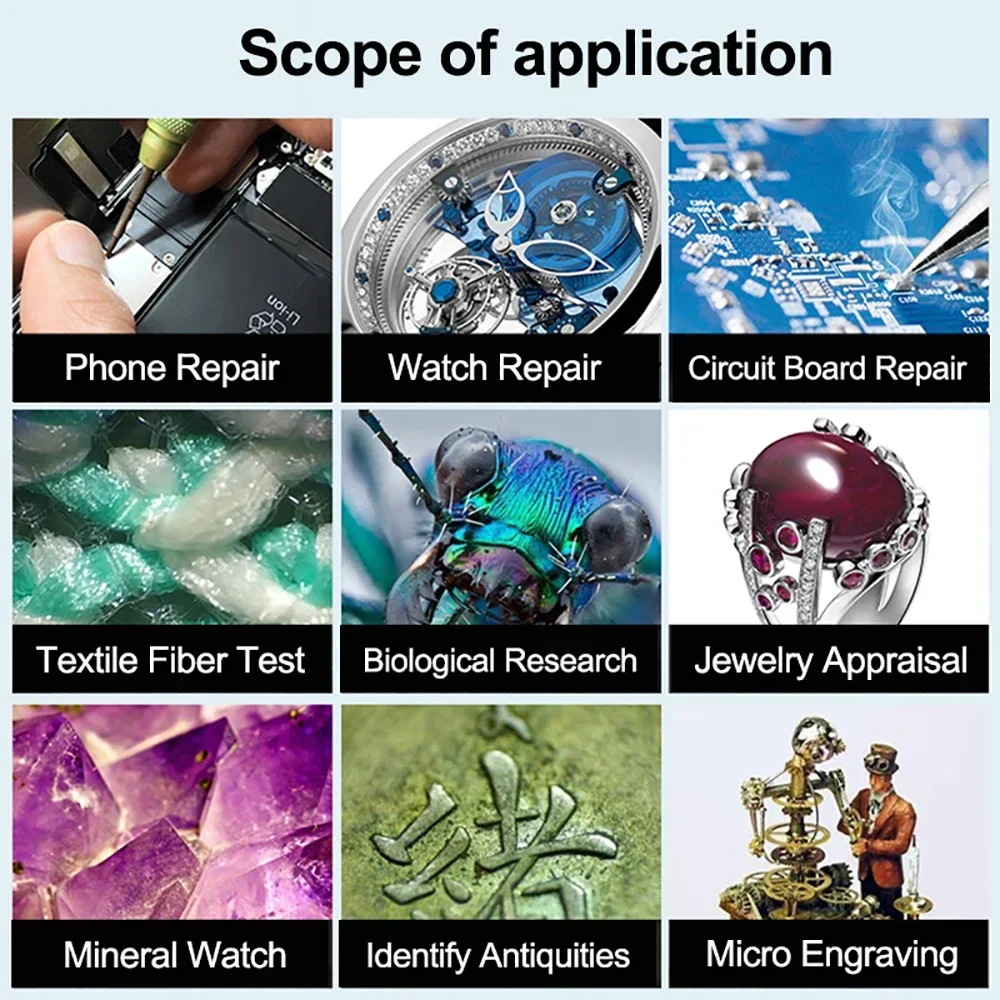 Bracket: Adjustable, rotatable, and liftableApplications: Industrial inspection, PCB repair, jewelry identification, electronics repair, biology, textile inspection