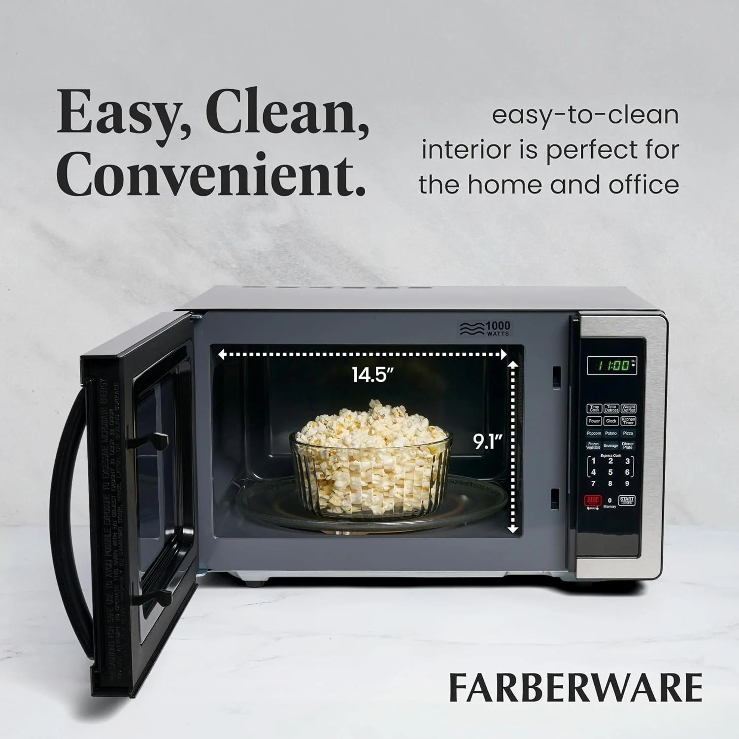 - 1.1 cu. ft. countertop microwave